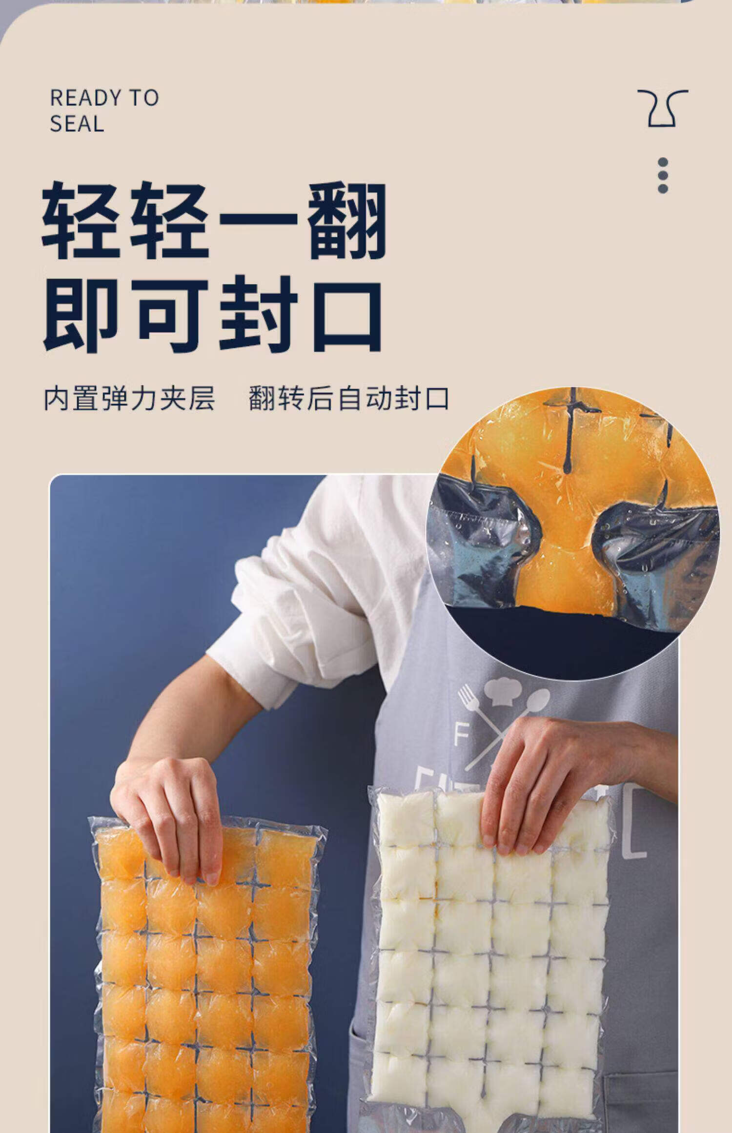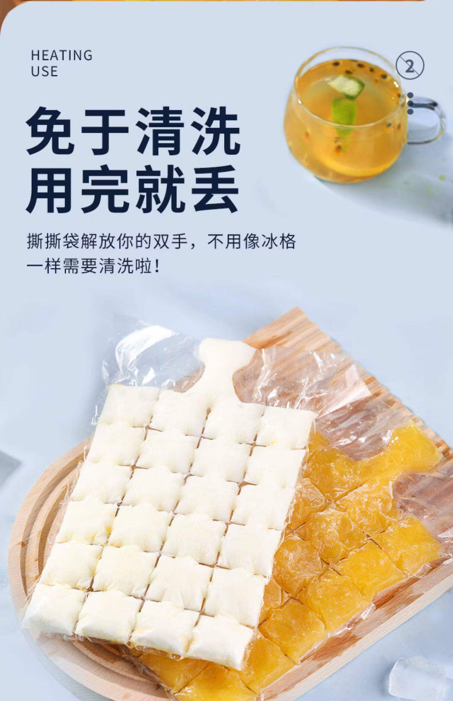 茶花(CHAHUA)一次性冰袋自封口冰格家用密封制冰袋百香果冻冰块模具冰格袋 1200格【1包50片】