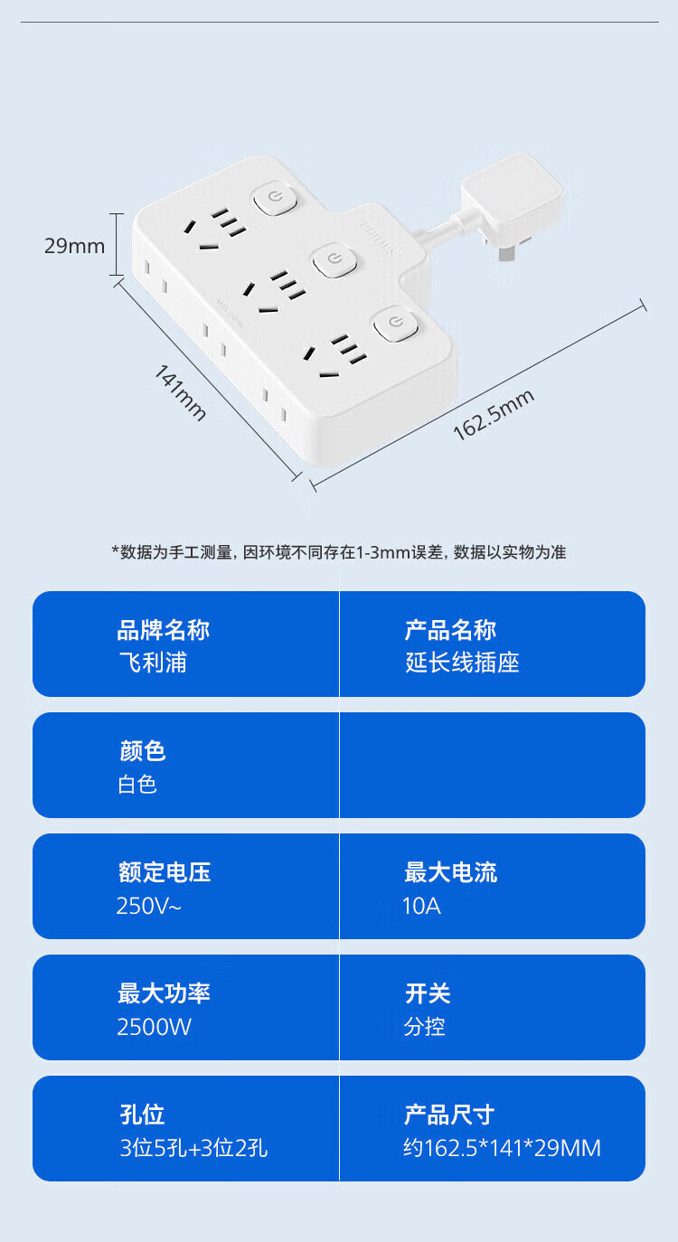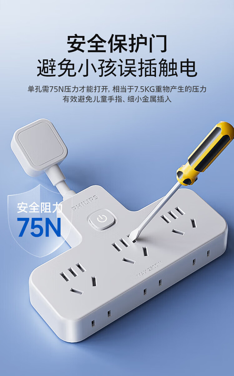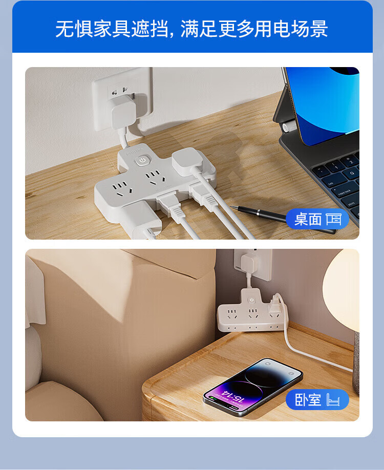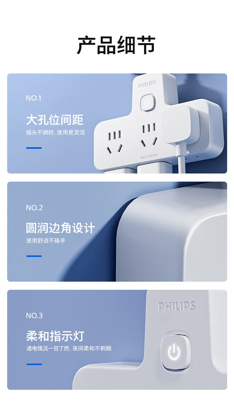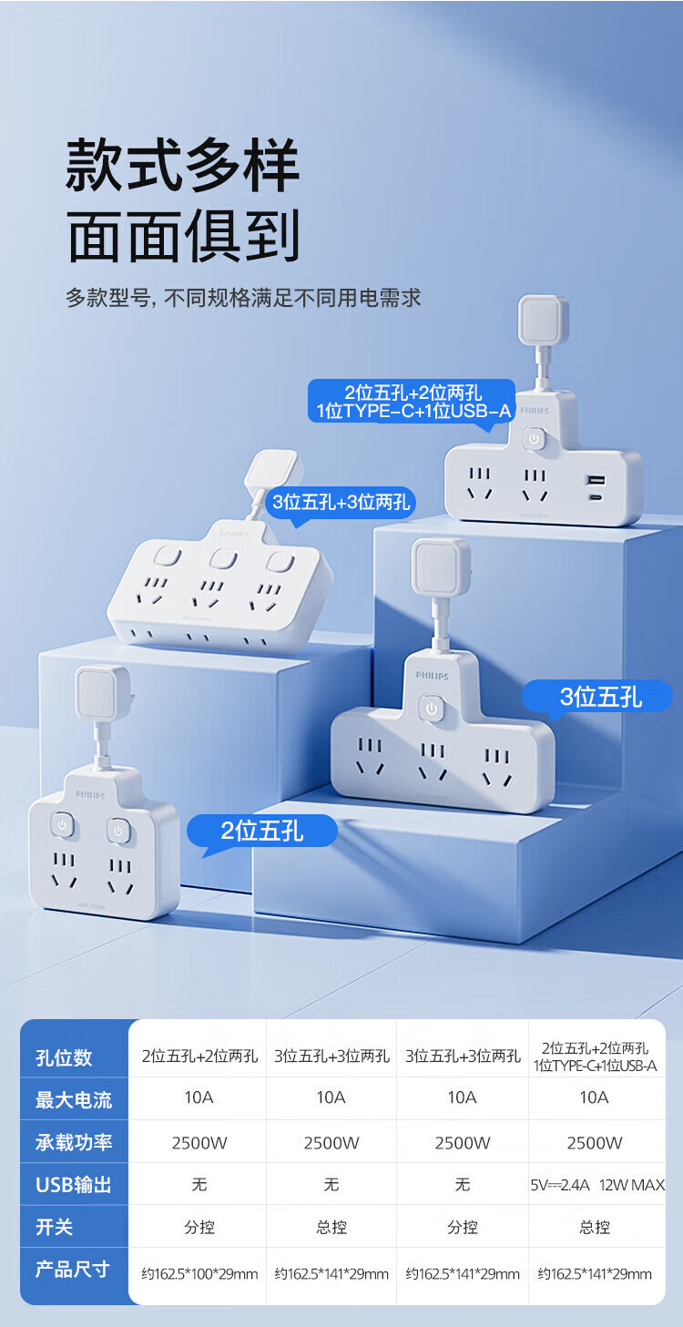 飞利浦飞利浦插座转换器一转多扩展插头分控多功能家用电源转换头一转二插座一转三排插插线板多用一拖二 分控一转3插位