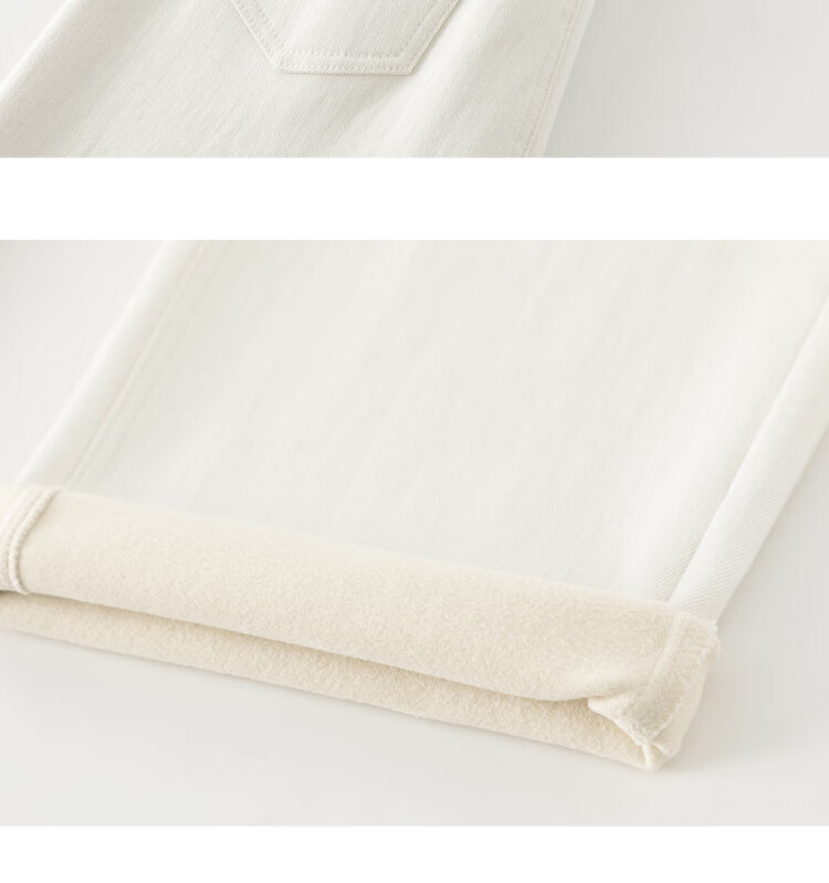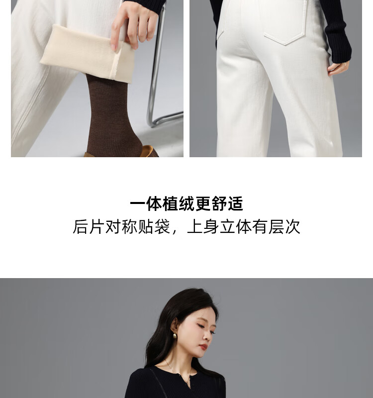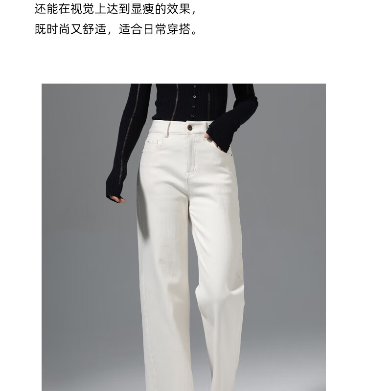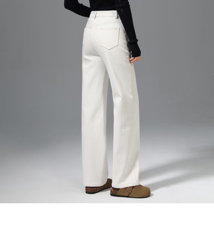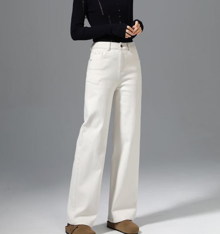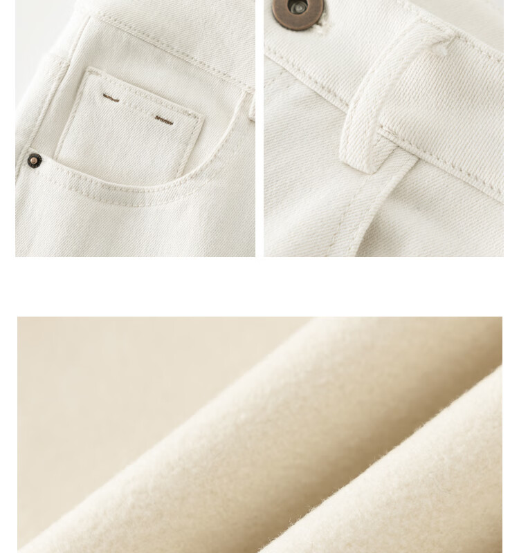 凌丹娜米白色加绒直筒牛仔裤女秋冬新款高腰显瘦裤子小个子九分裤阔腿裤 米白色 33