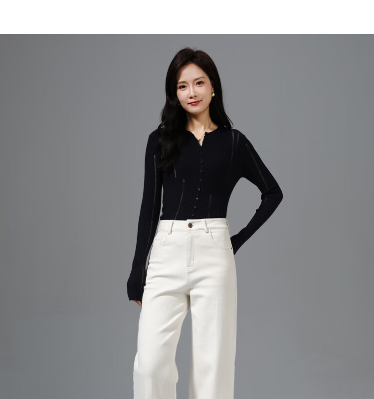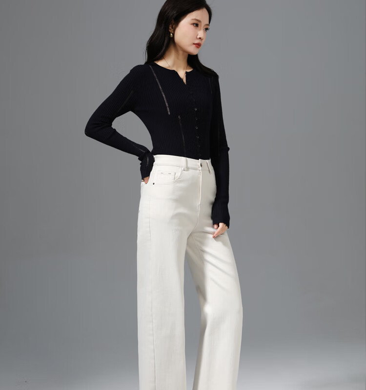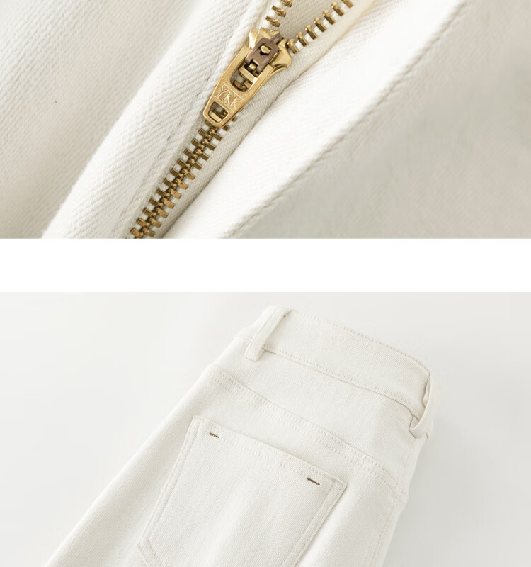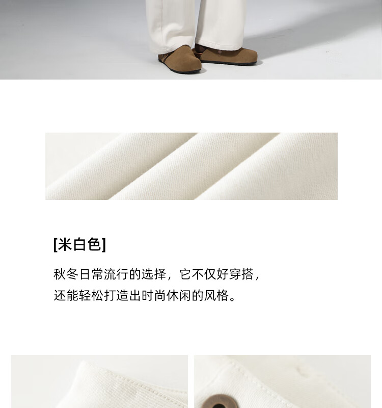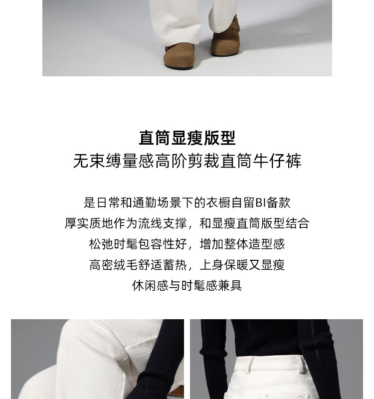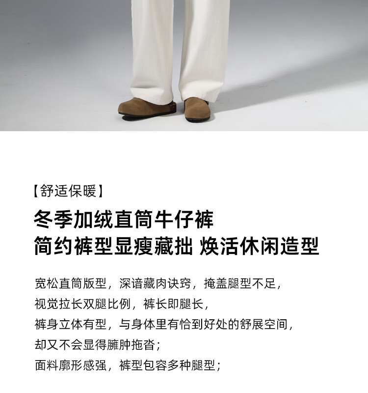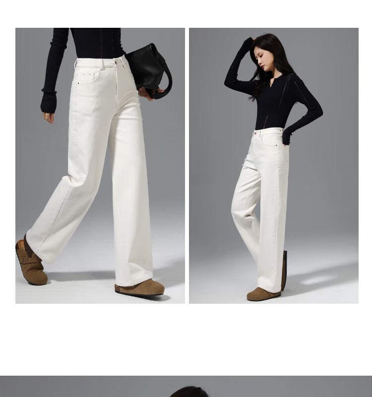 凌丹娜米白色加绒直筒牛仔裤女秋冬新款高腰显瘦裤子小个子九分裤阔腿裤 米白色 33