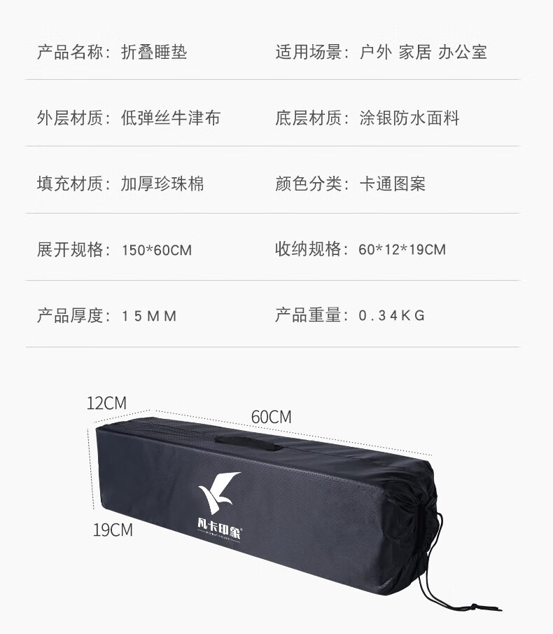 凡卡印象 儿童学校学生睡觉睡垫单人便携打地铺午休折叠垫子户外家用防潮 加厚3CM【小白狗】配三件套