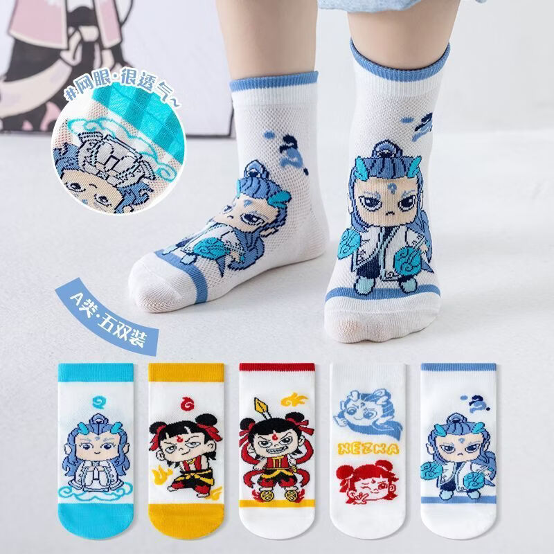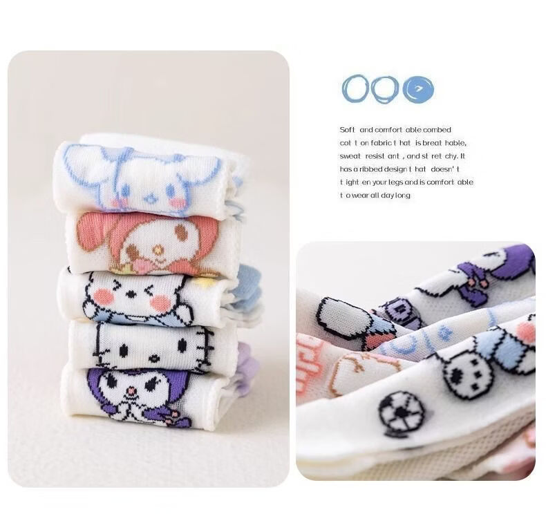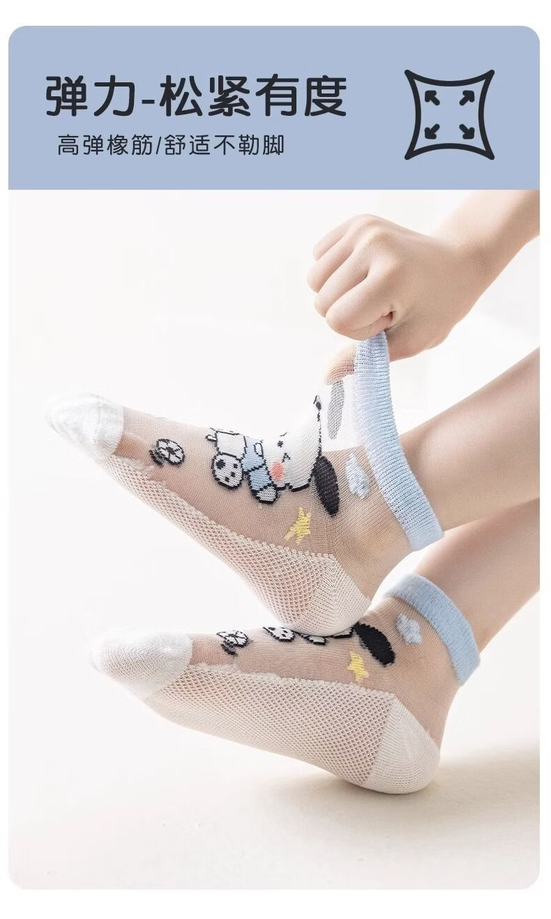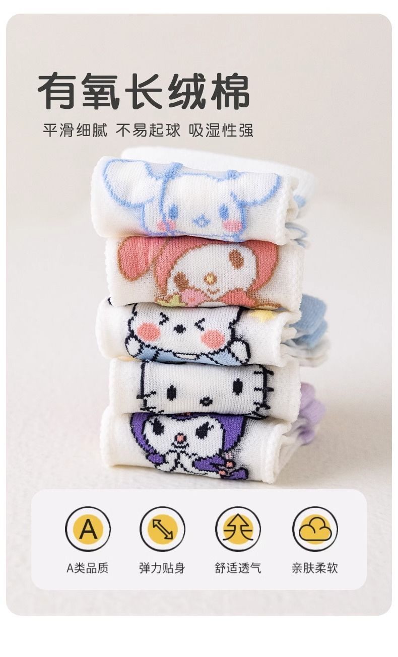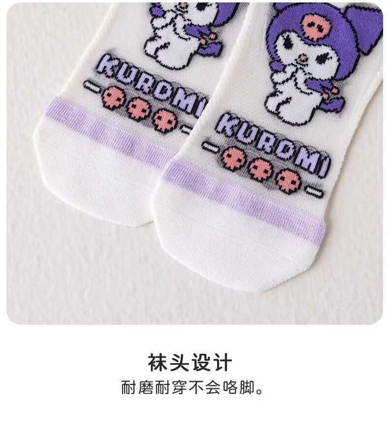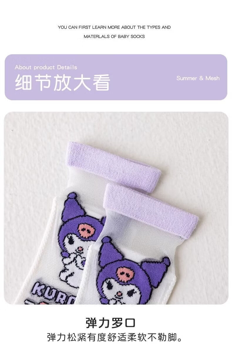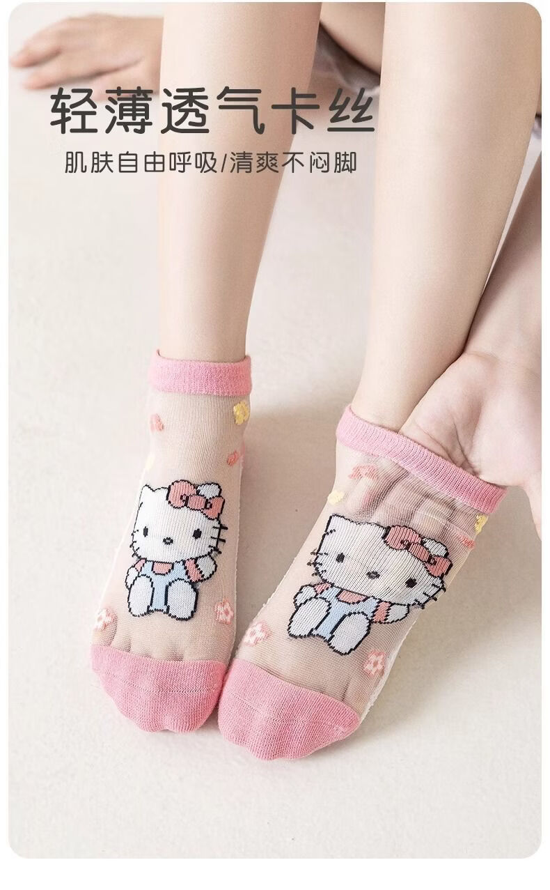 小红书同款夏天透气AA 三丽鸥冰丝5双装6-8岁 男女童袜子夏薄款短款透网