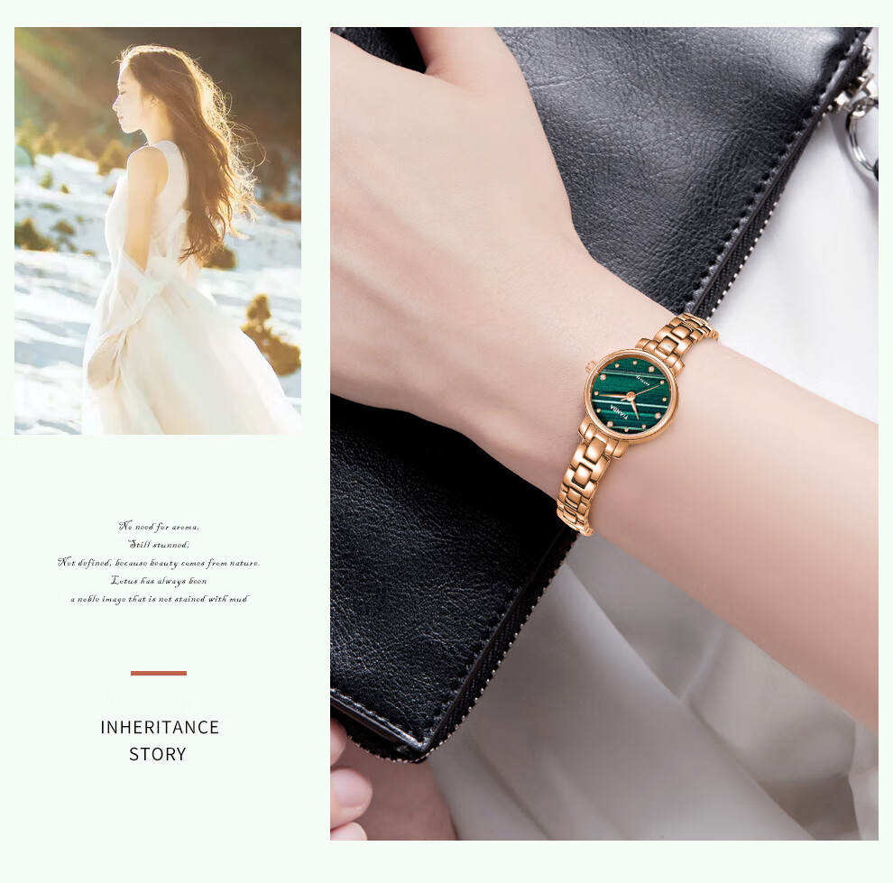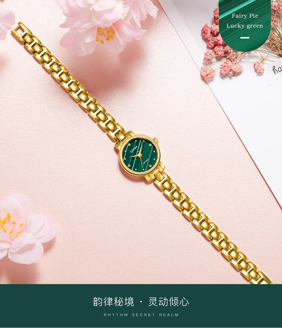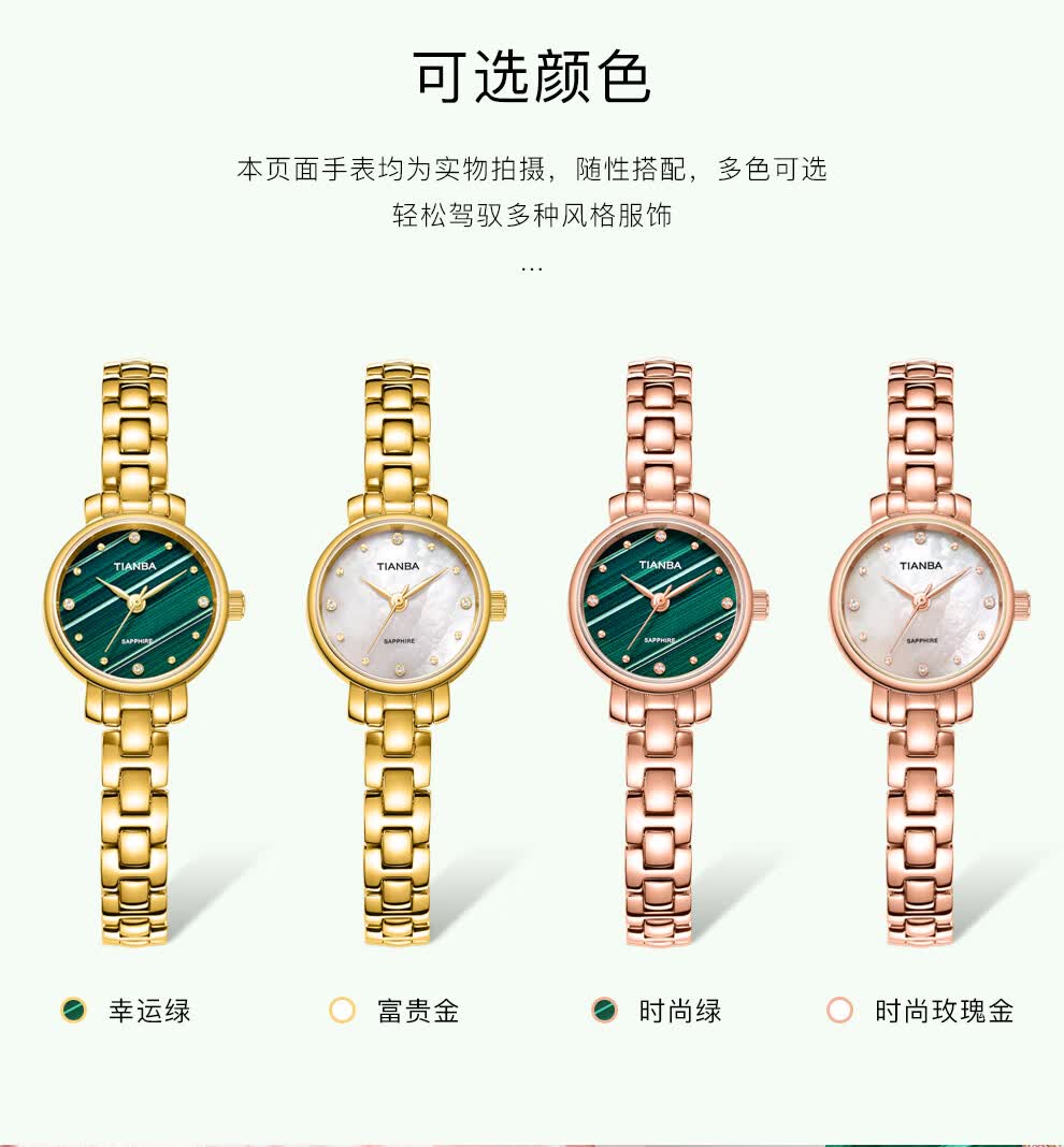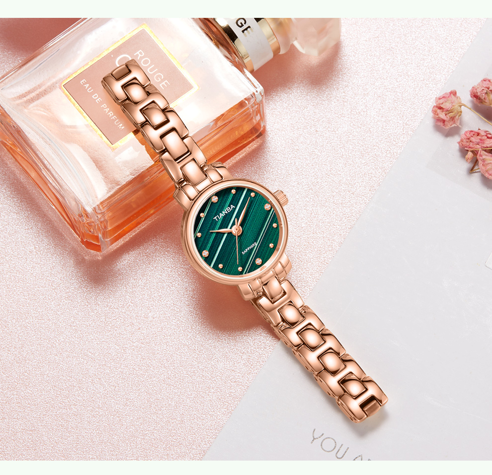 天霸石英手表女ins风小绿表轻奢时尚手链表防水女表7023 玫瑰金绿色