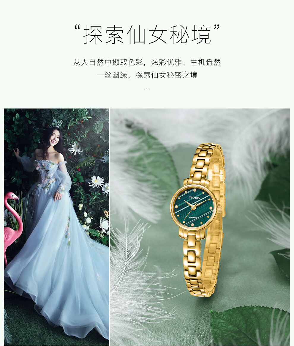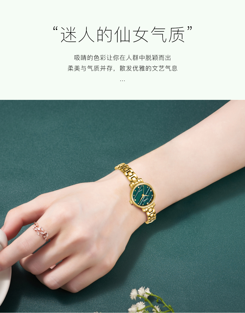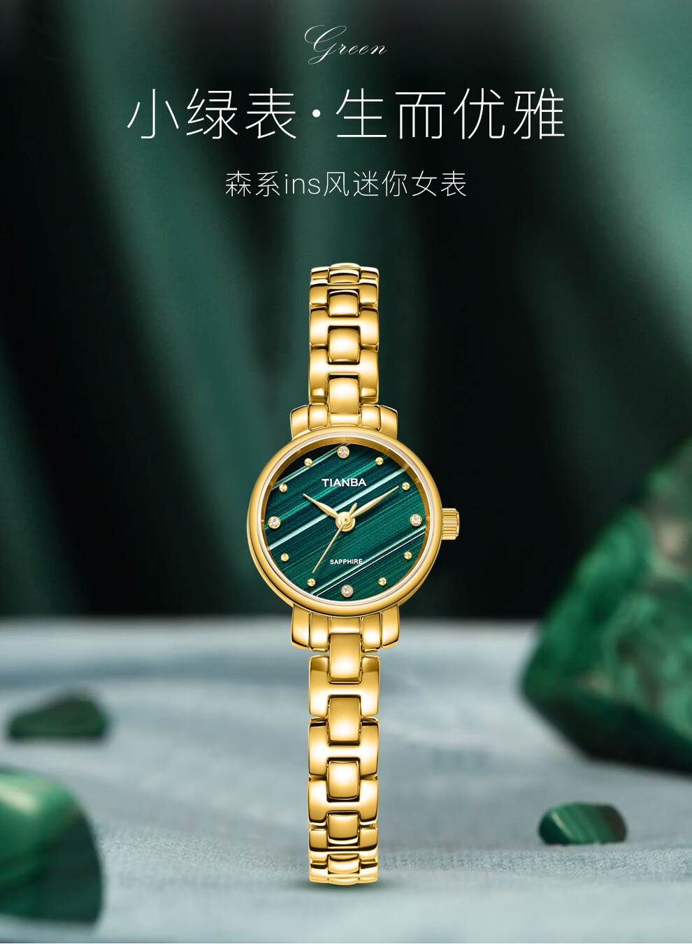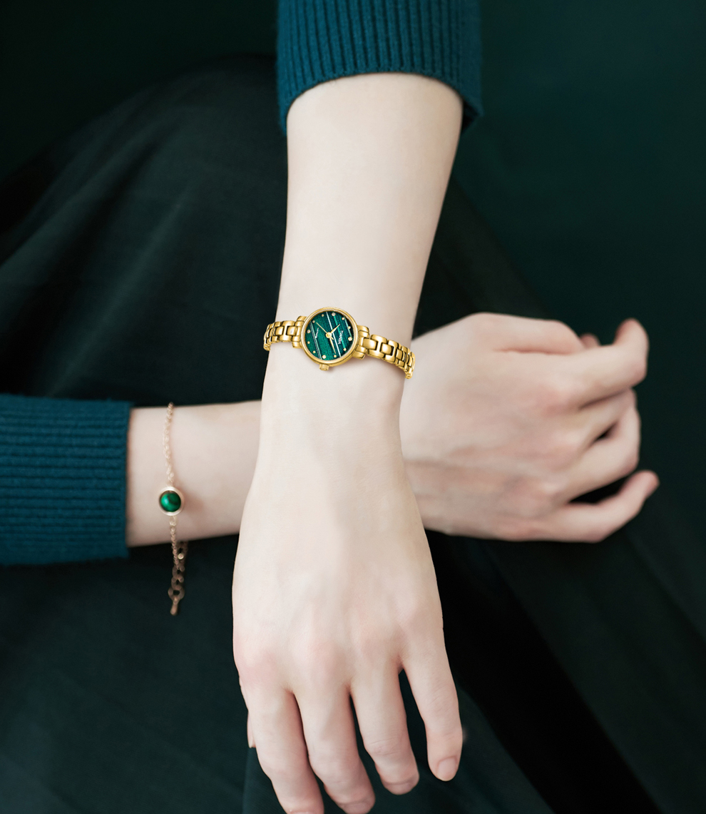 天霸石英手表女ins风小绿表轻奢时尚手链表防水女表7023 玫瑰金绿色