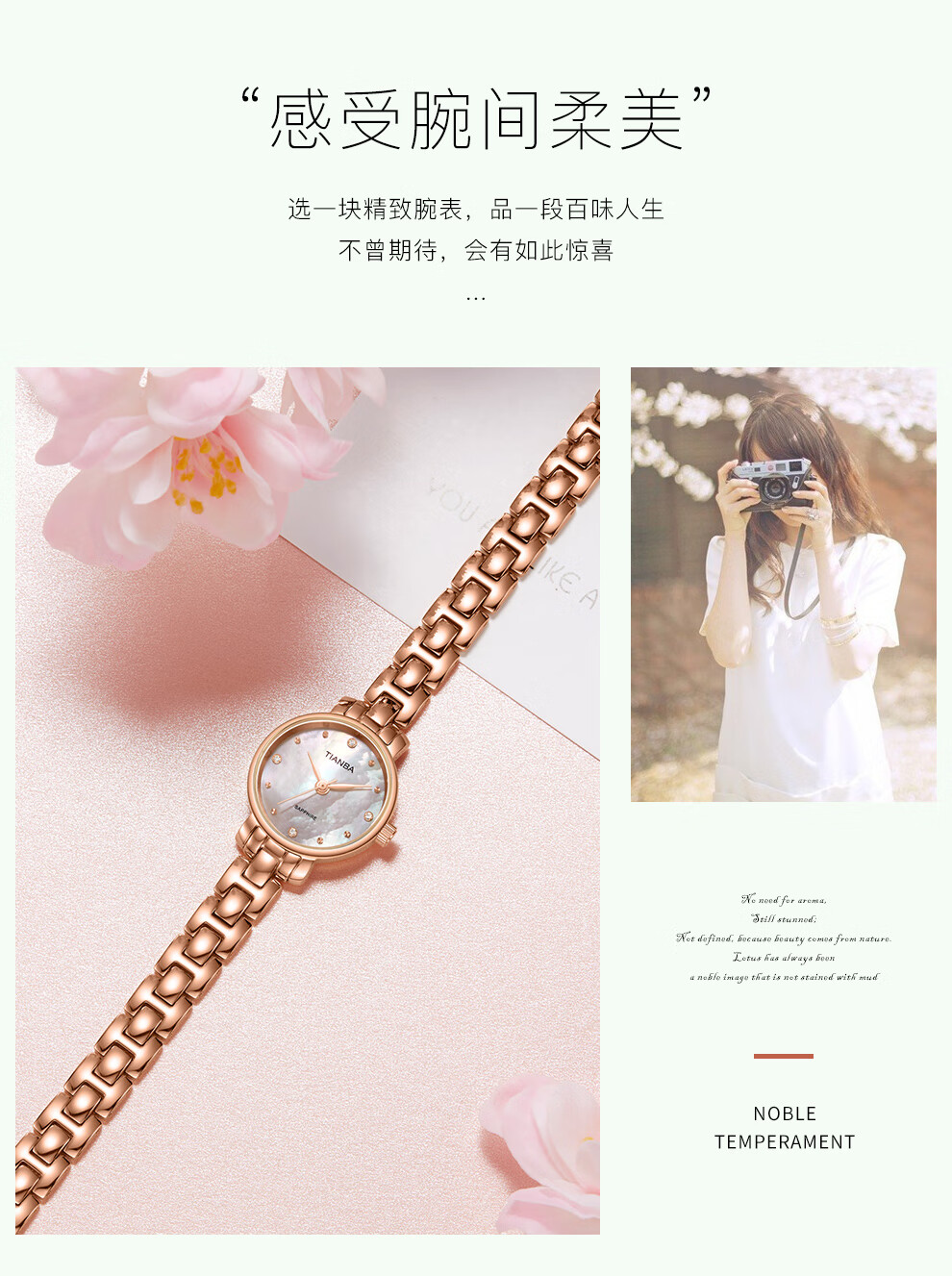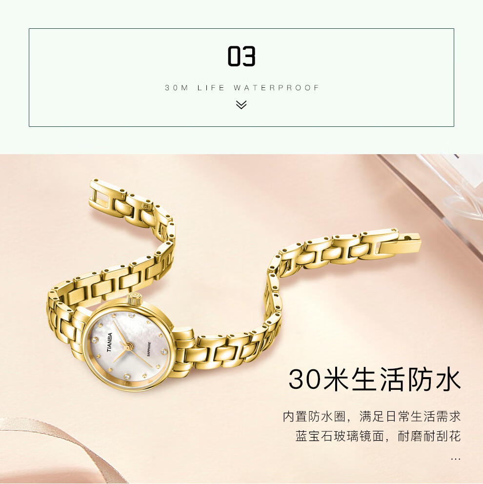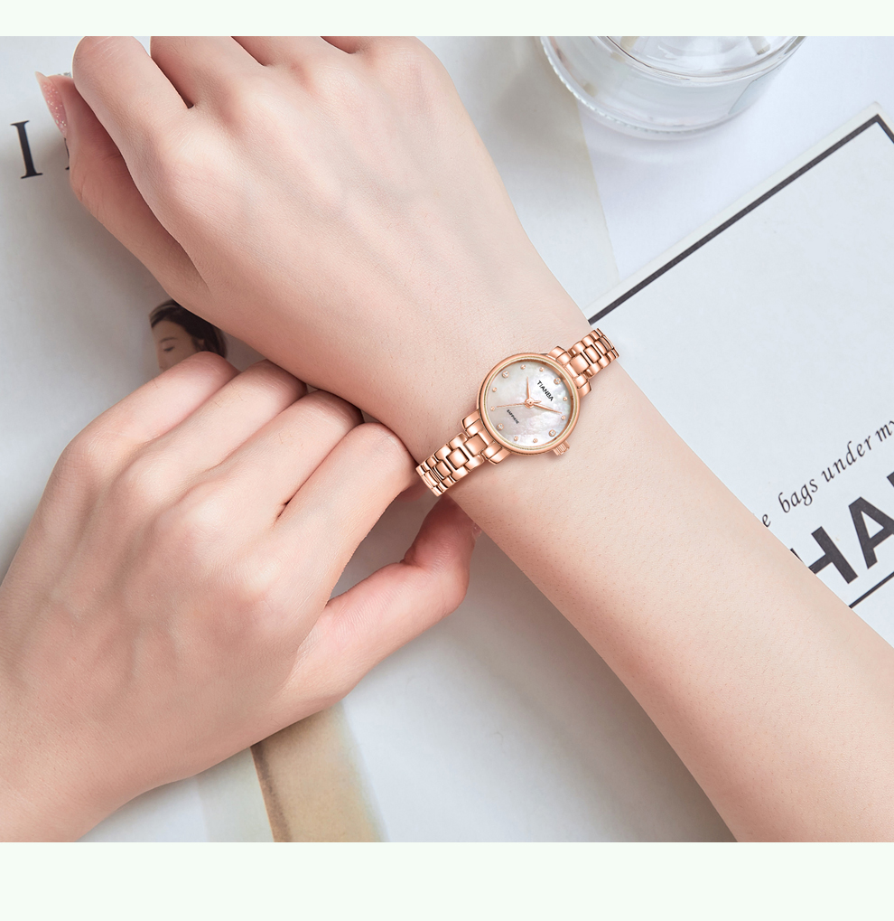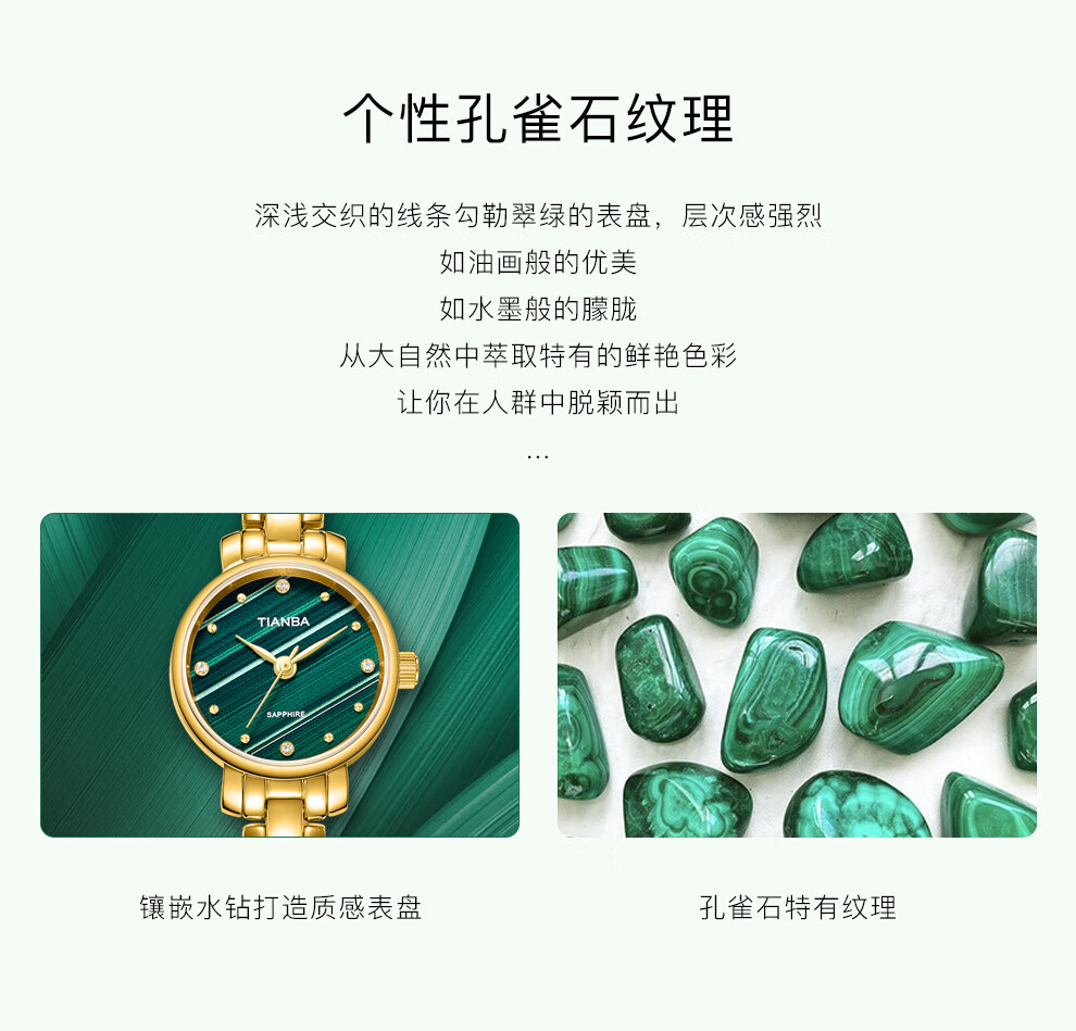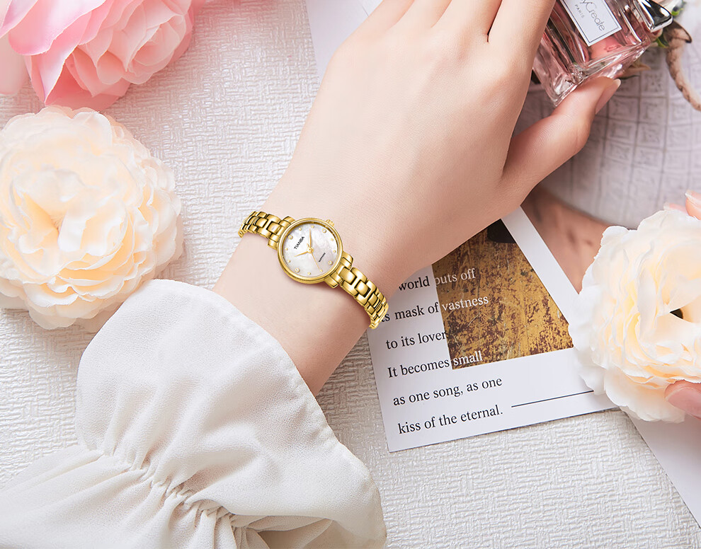 天霸石英手表女ins风小绿表轻奢时尚手链表防水女表7023 玫瑰金绿色
