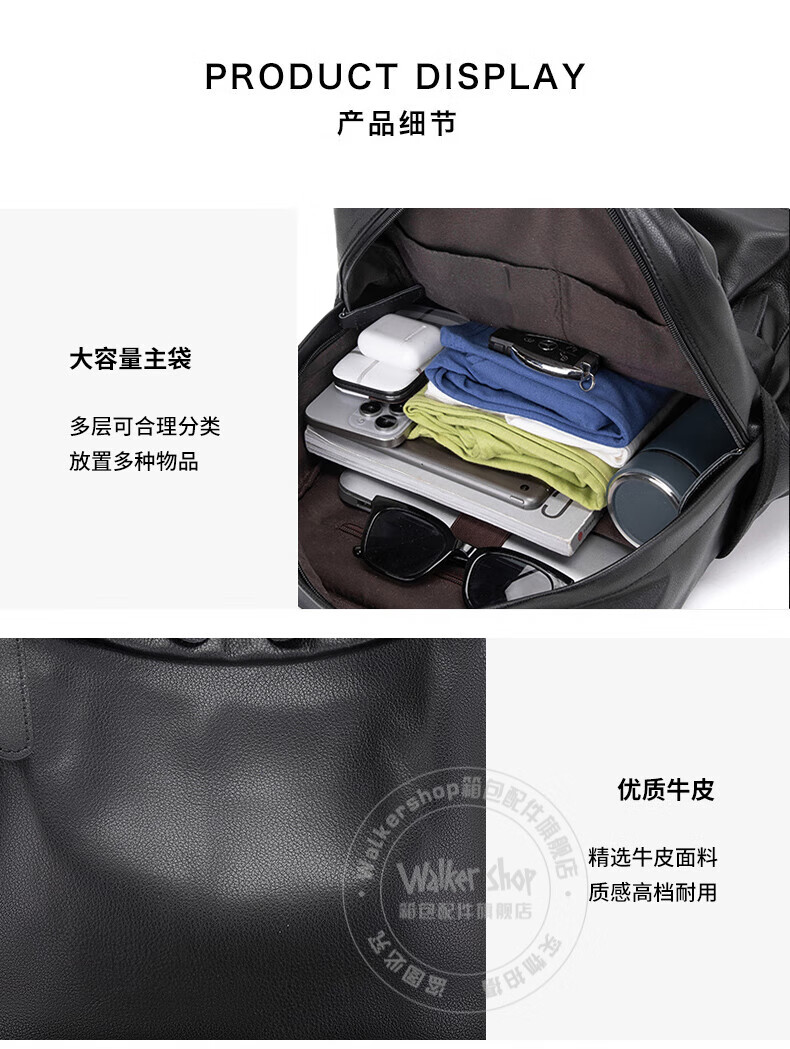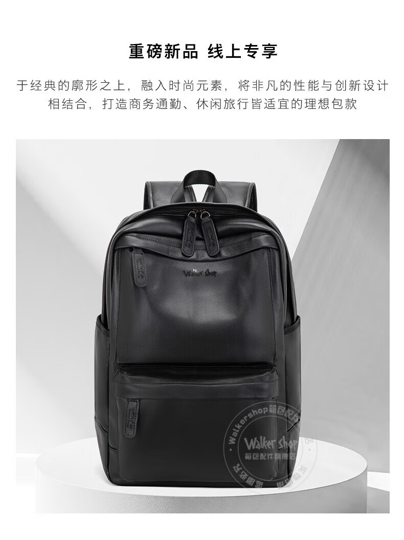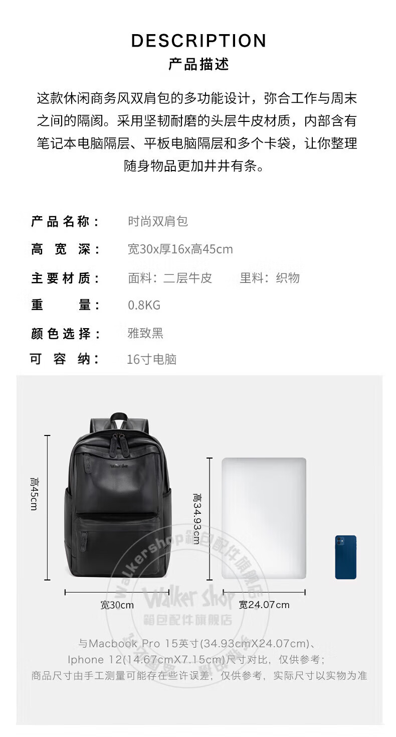 Walker Shop【品牌精选】男士双肩包男商务牛皮旅行包大容量书包电脑包背包男 雅致黑【京仓发货/礼盒包装】 30*16*45