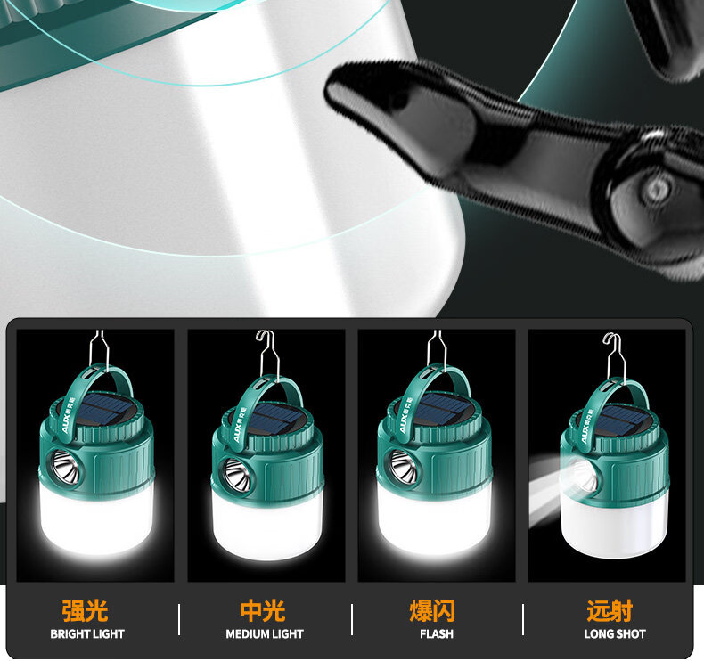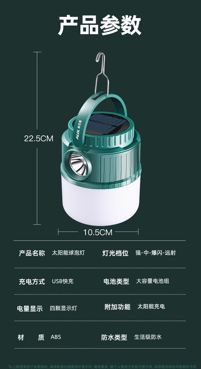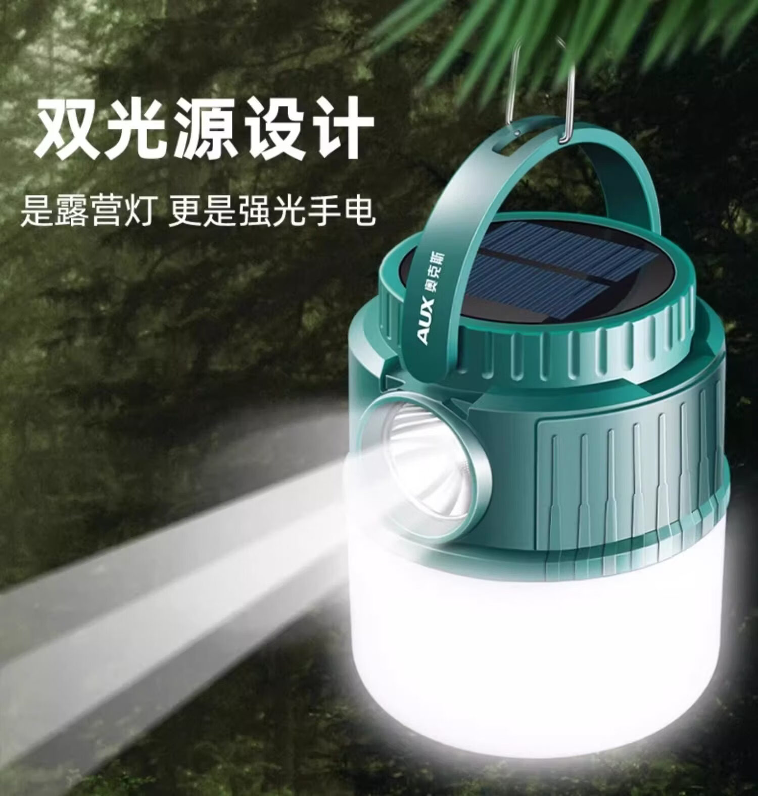 奥克斯(AUX)露营灯超亮长续航太阳能充电户外野营摆摊防水双光源应急照明马灯 【顶配款】双锂电/太阳能充电/双光源/电显