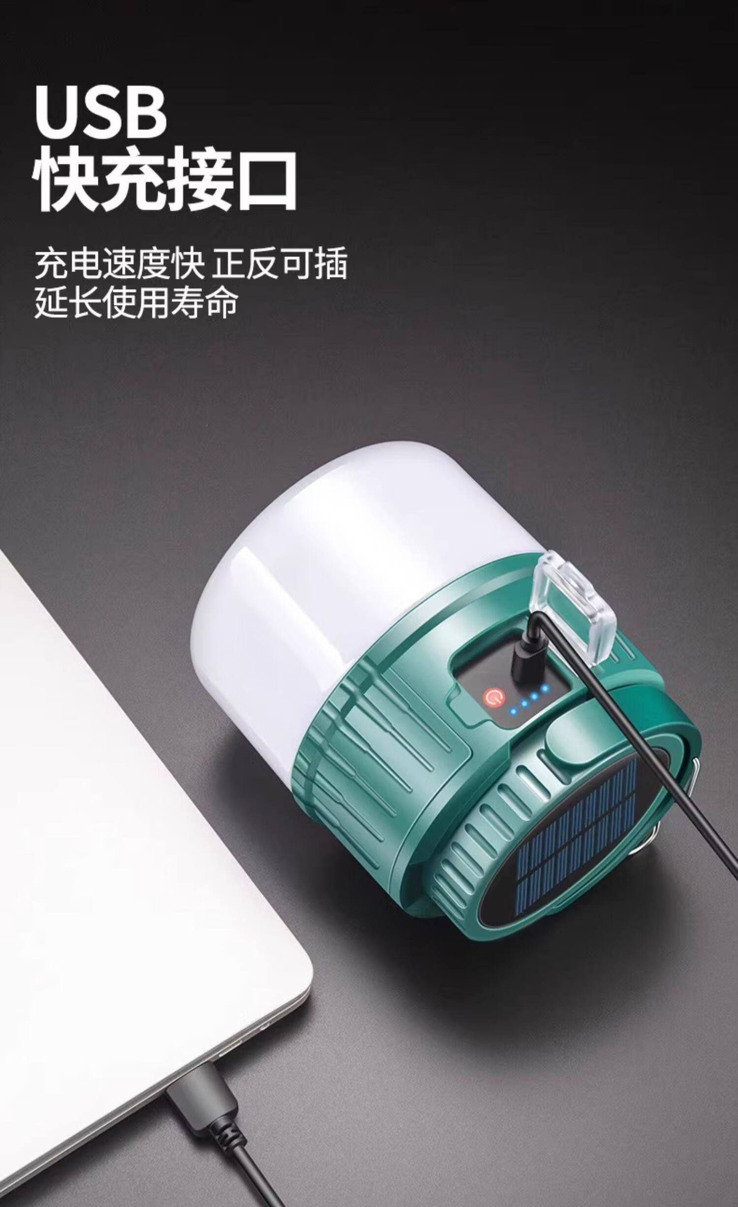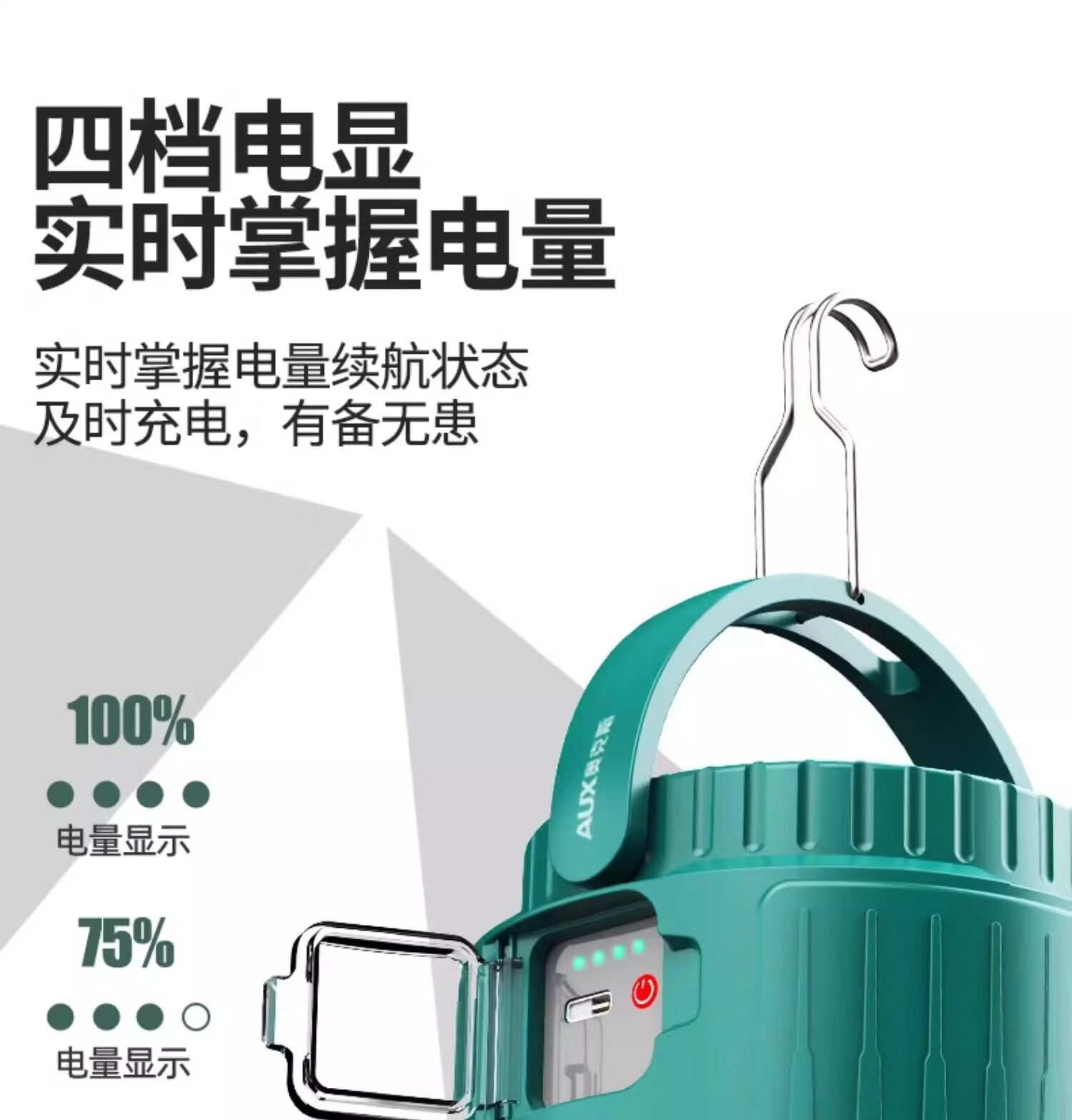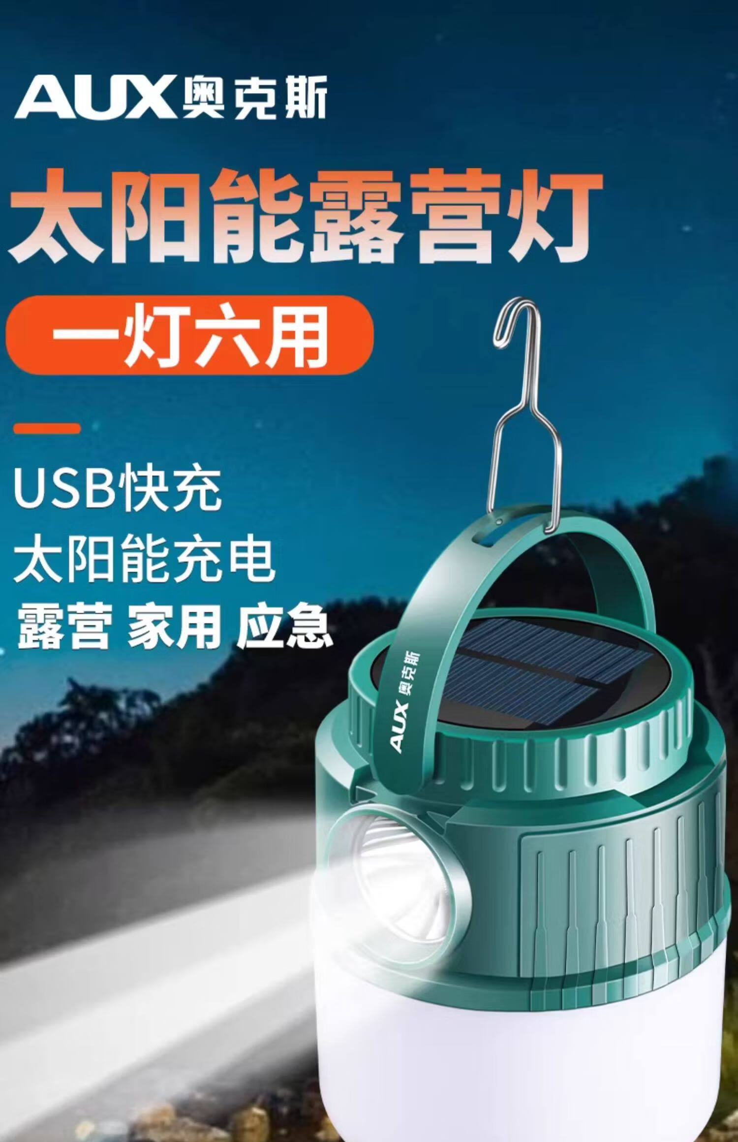 奥克斯(AUX)露营灯超亮长续航太阳能充电户外野营摆摊防水双光源应急照明马灯 【顶配款】双锂电/太阳能充电/双光源/电显