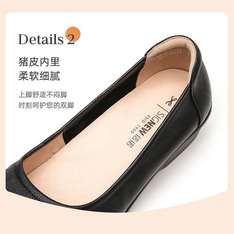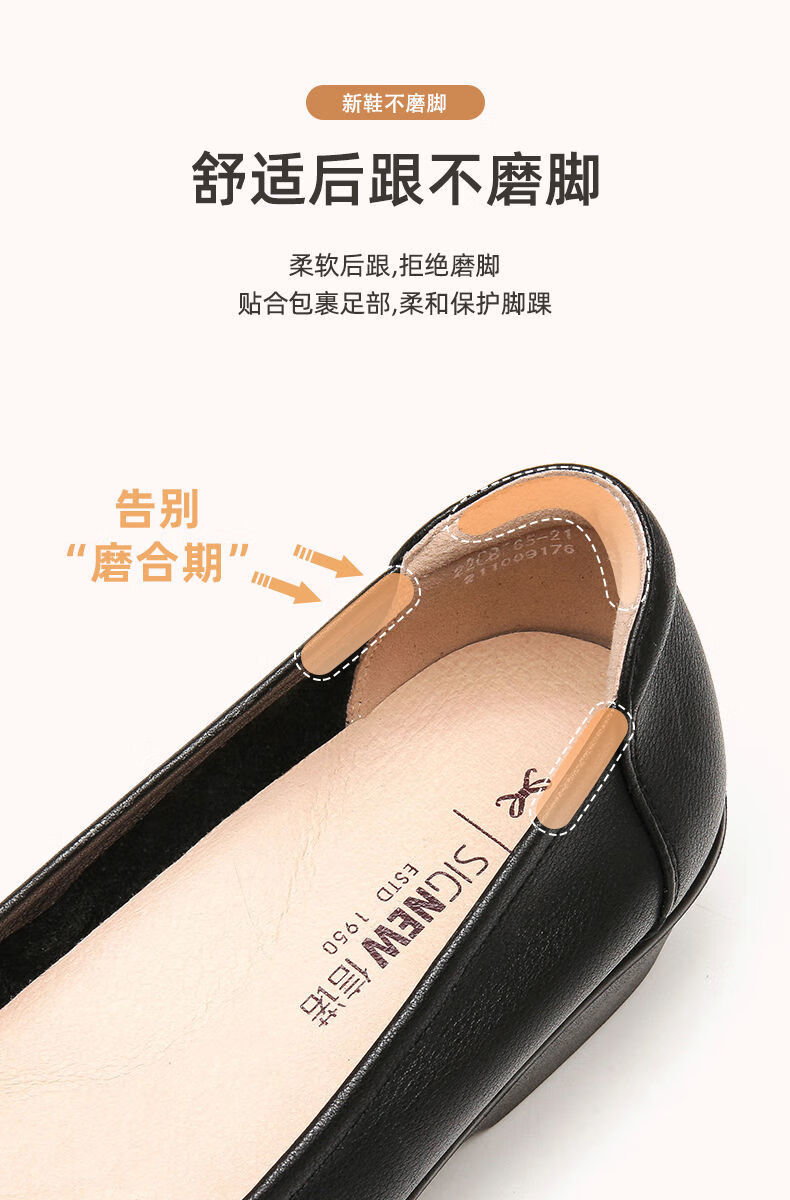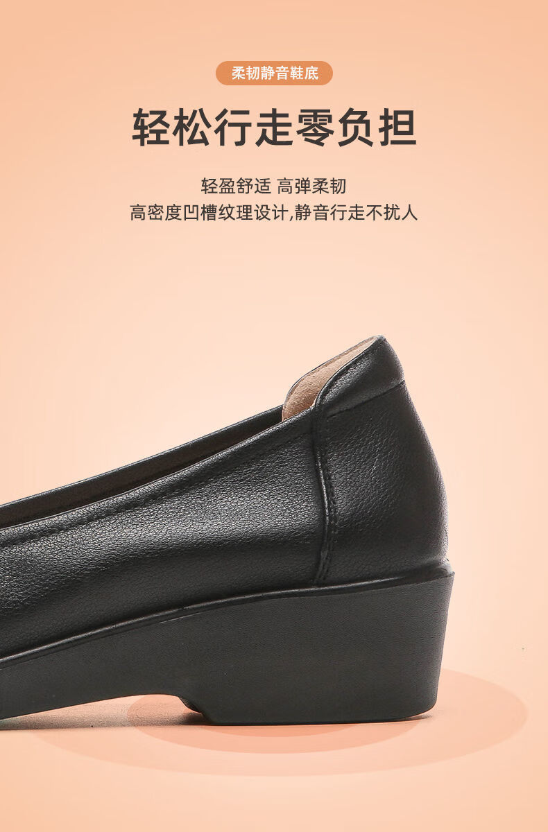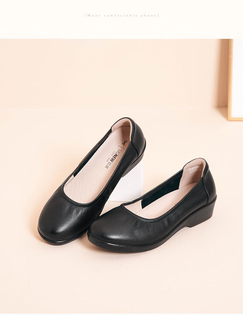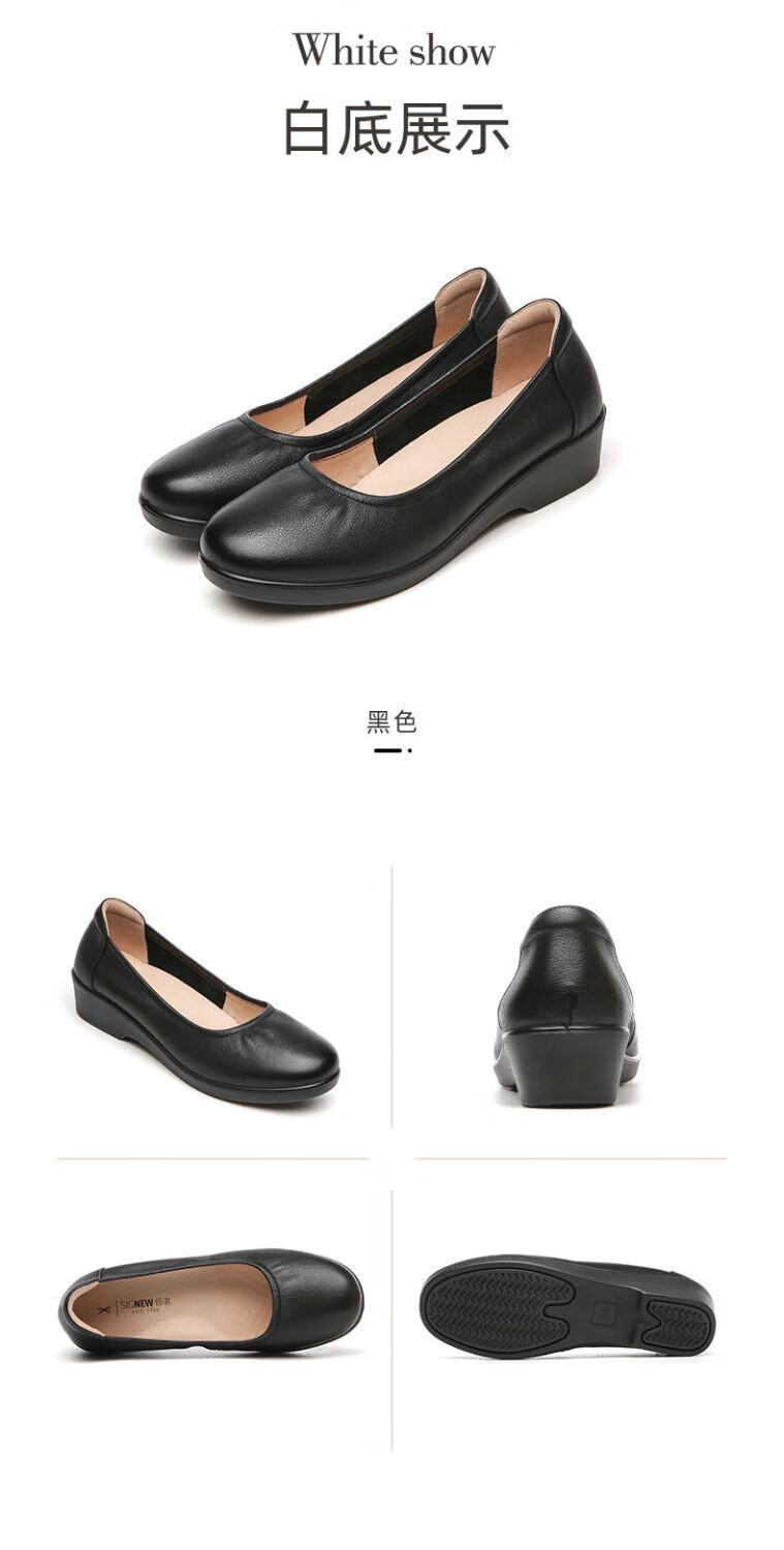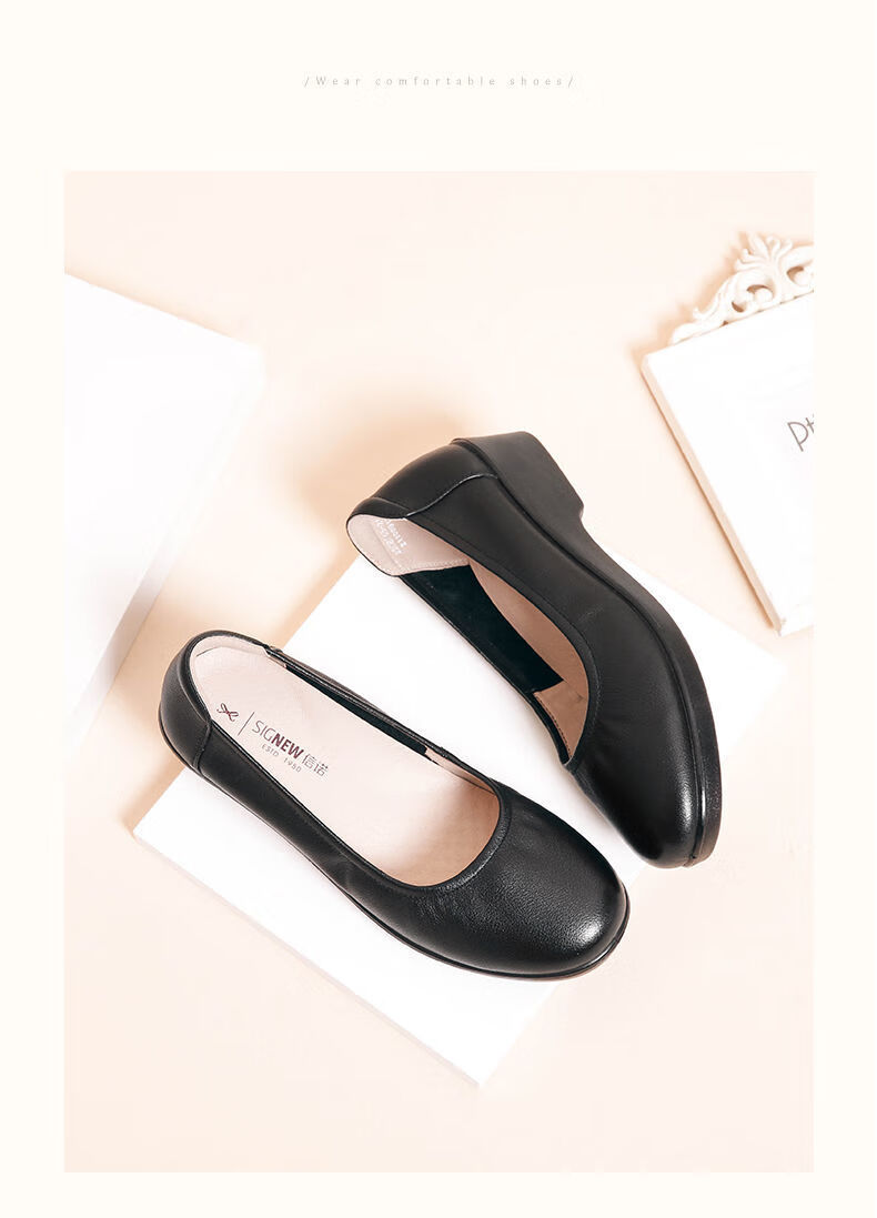 信诺(SiGNEW)舒适工作鞋女黑色职业坡跟真皮工装鞋空姐软底工鞋中跟软皮鞋 黑色 37