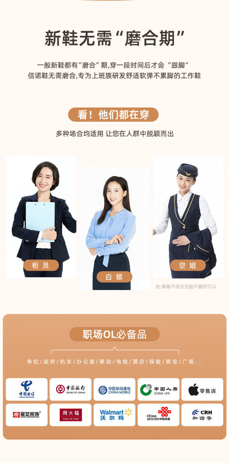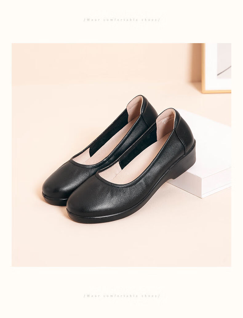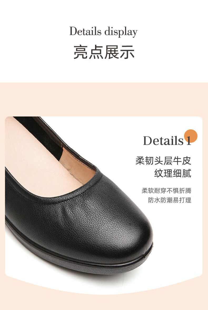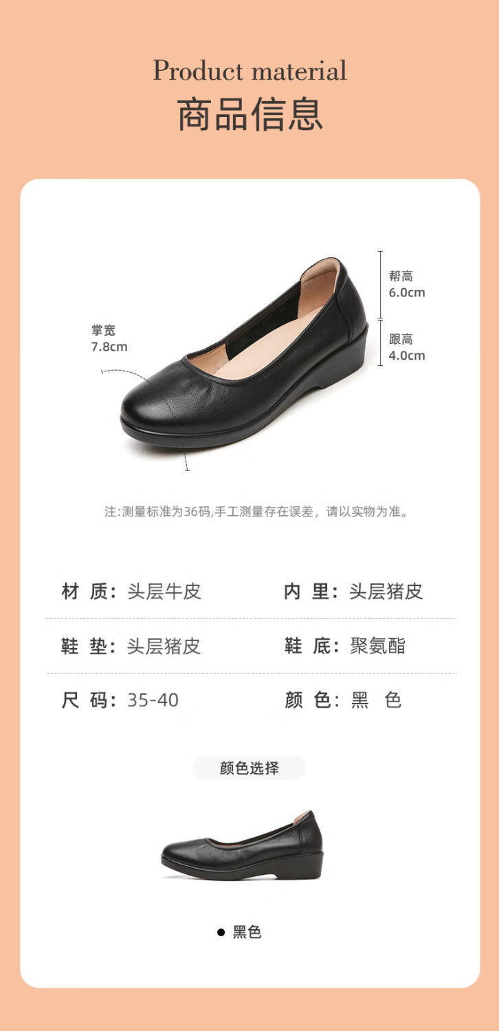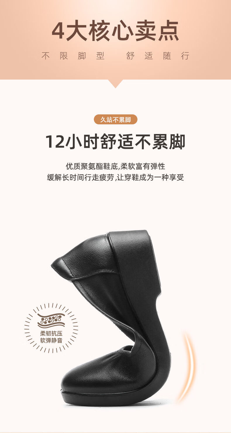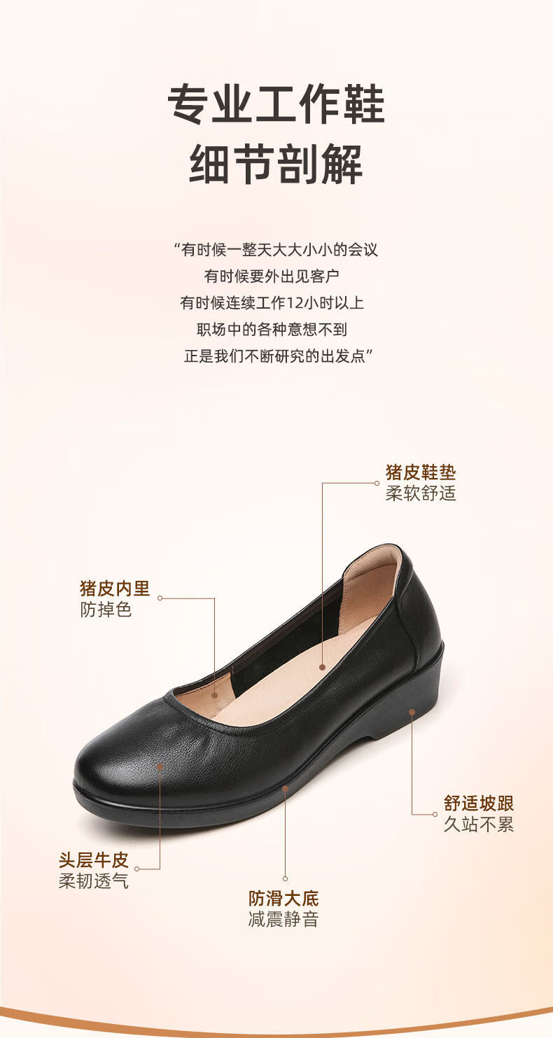 信诺(SiGNEW)舒适工作鞋女黑色职业坡跟真皮工装鞋空姐软底工鞋中跟软皮鞋 黑色 37