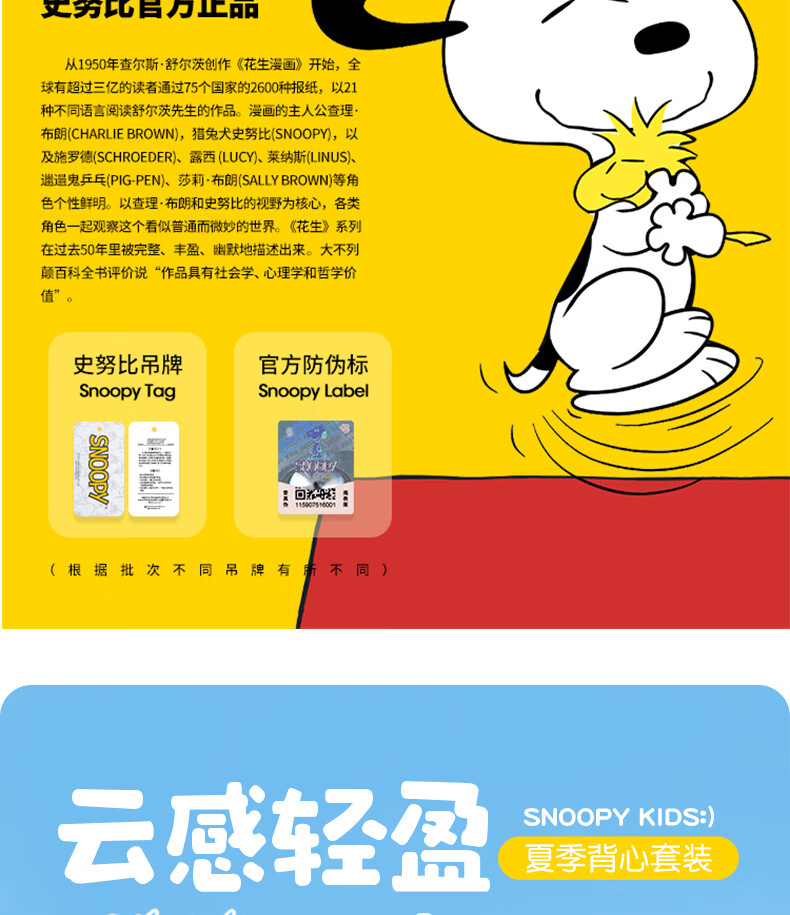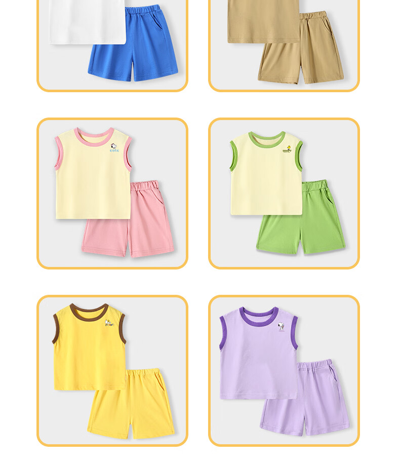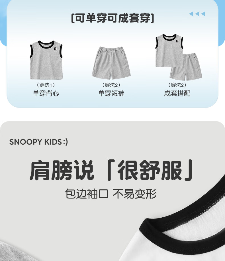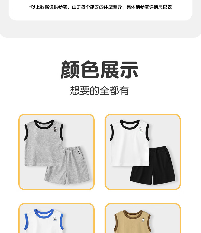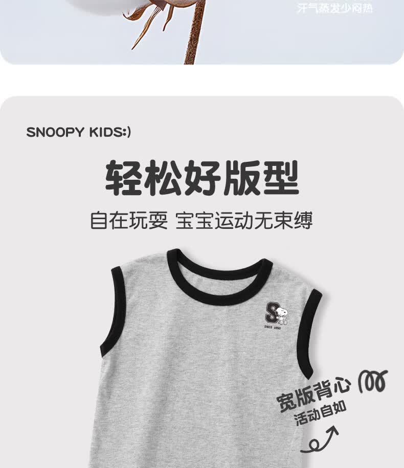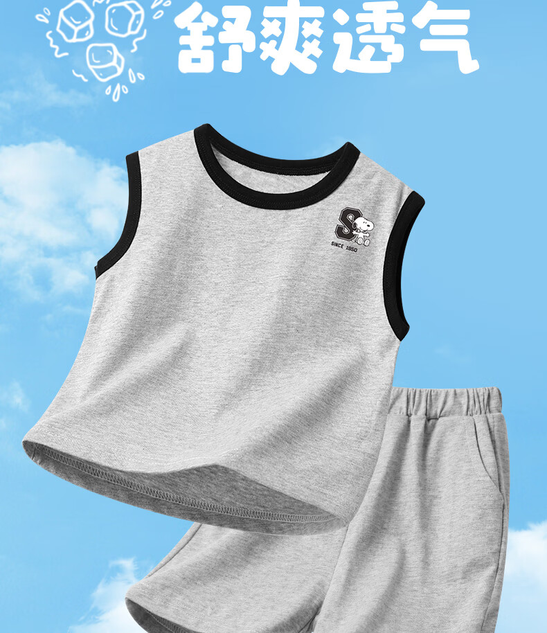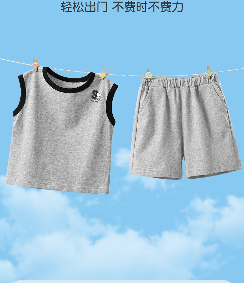 史努比(SNOOPY)儿童背心套装纯棉背心短裤运动风休闲款夏季2026新款 杏/粉色 复古努比 140