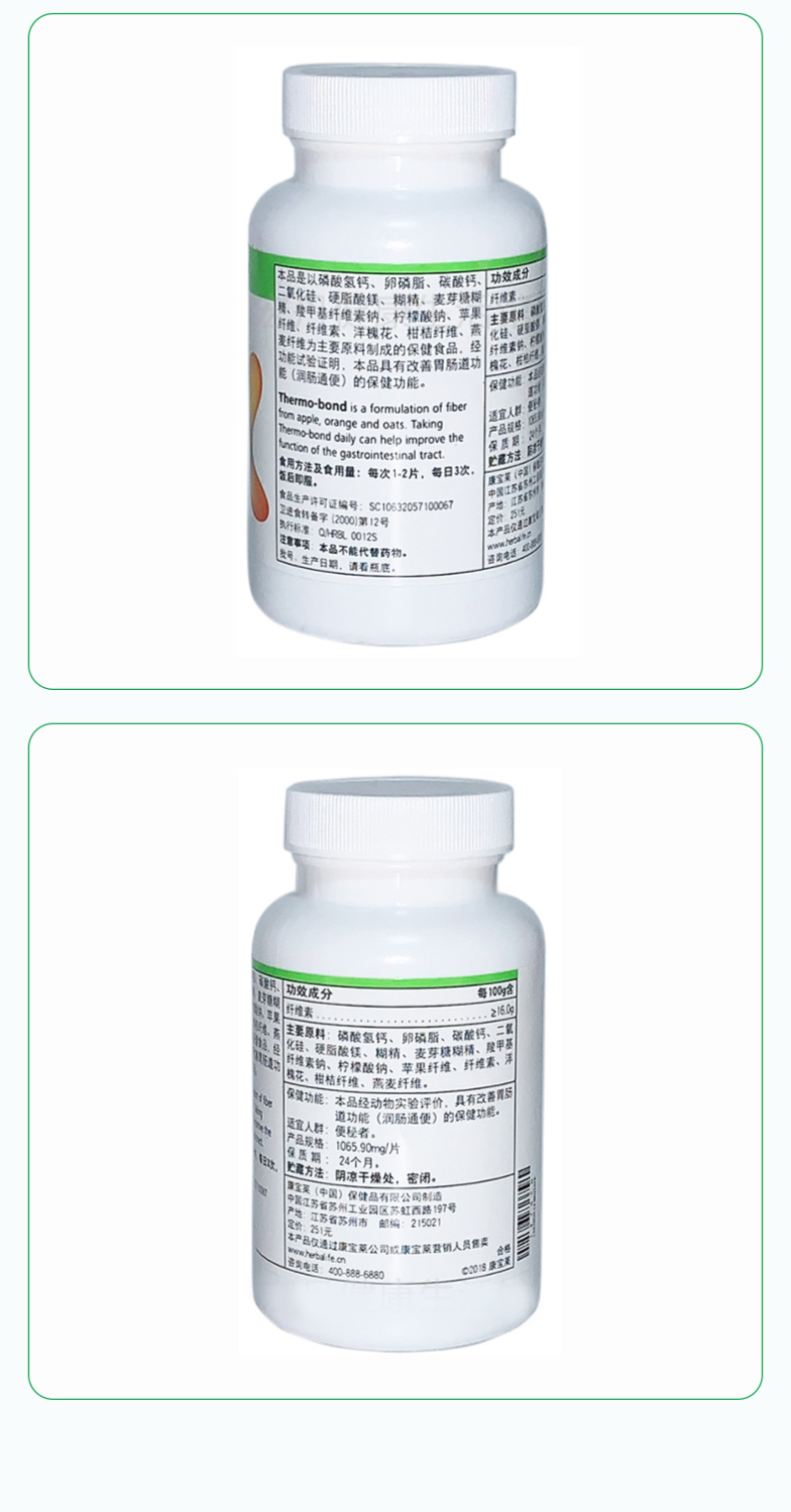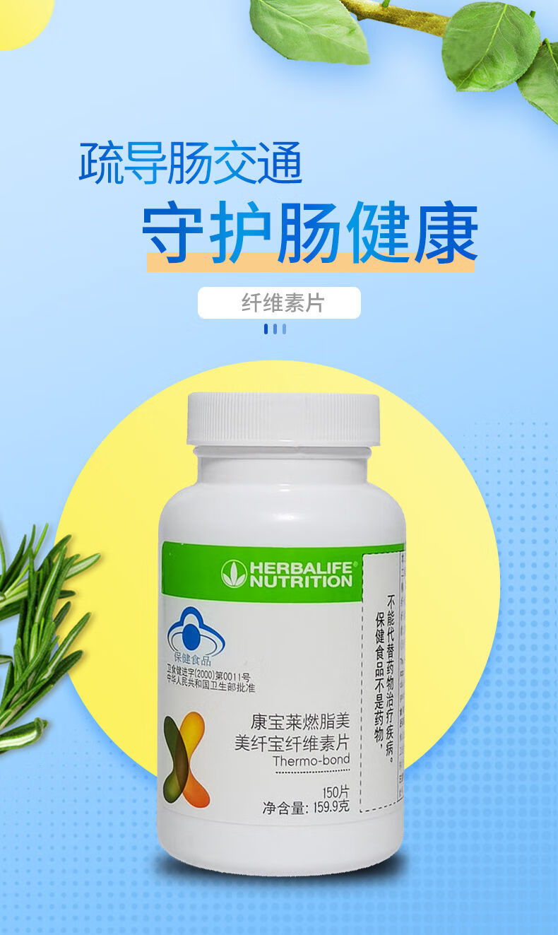 康宝莱(HERBALIFE)【药房直售】康宝莱牌美纤宝纤维素片改善肠胃功能(润肠)膳食 康宝莱纤维素片 150片*3瓶