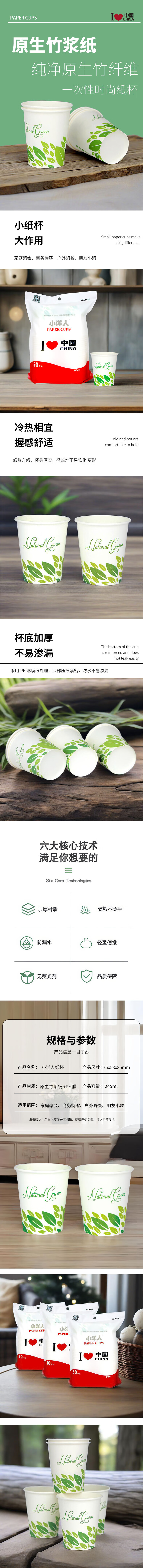 【京喜定制】加厚一次性纸杯245ML大容量水杯超市家用杯子新 纯白色 245ML50只