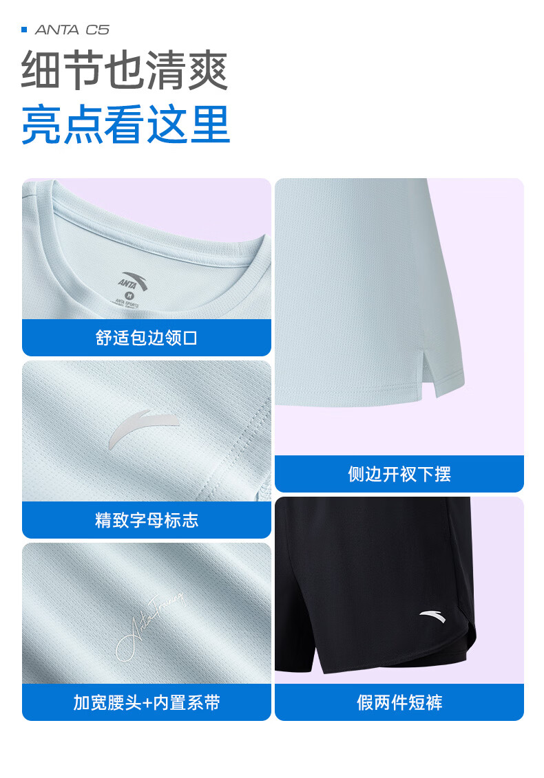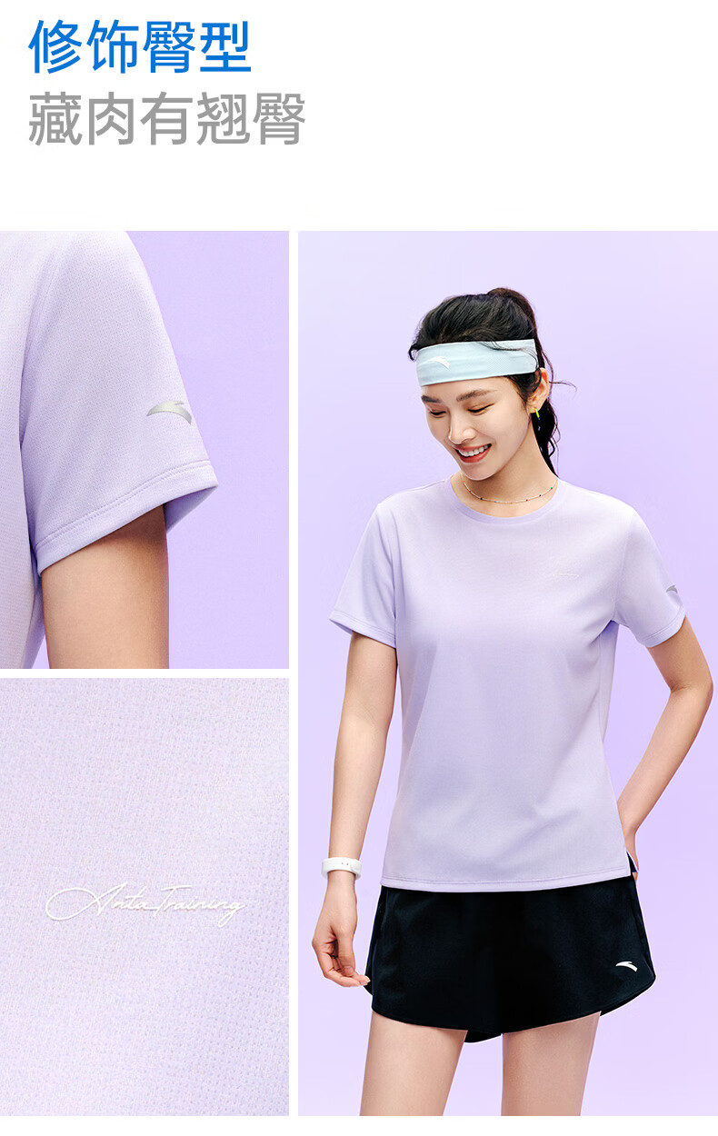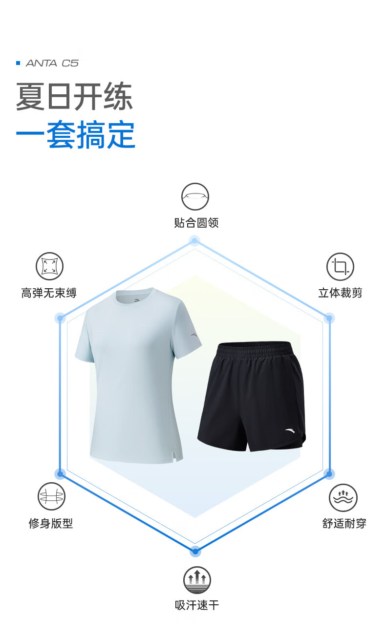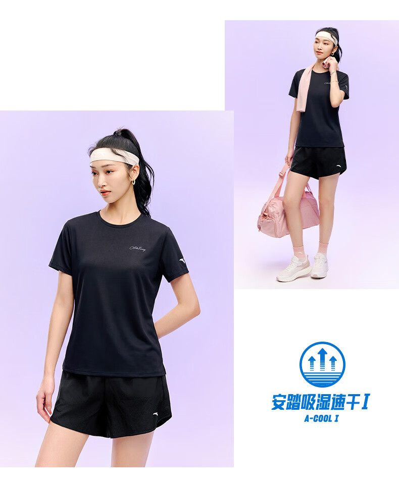 安踏速干套装丨运动套装女夏季新款体测透气短袖T恤跑步短裤