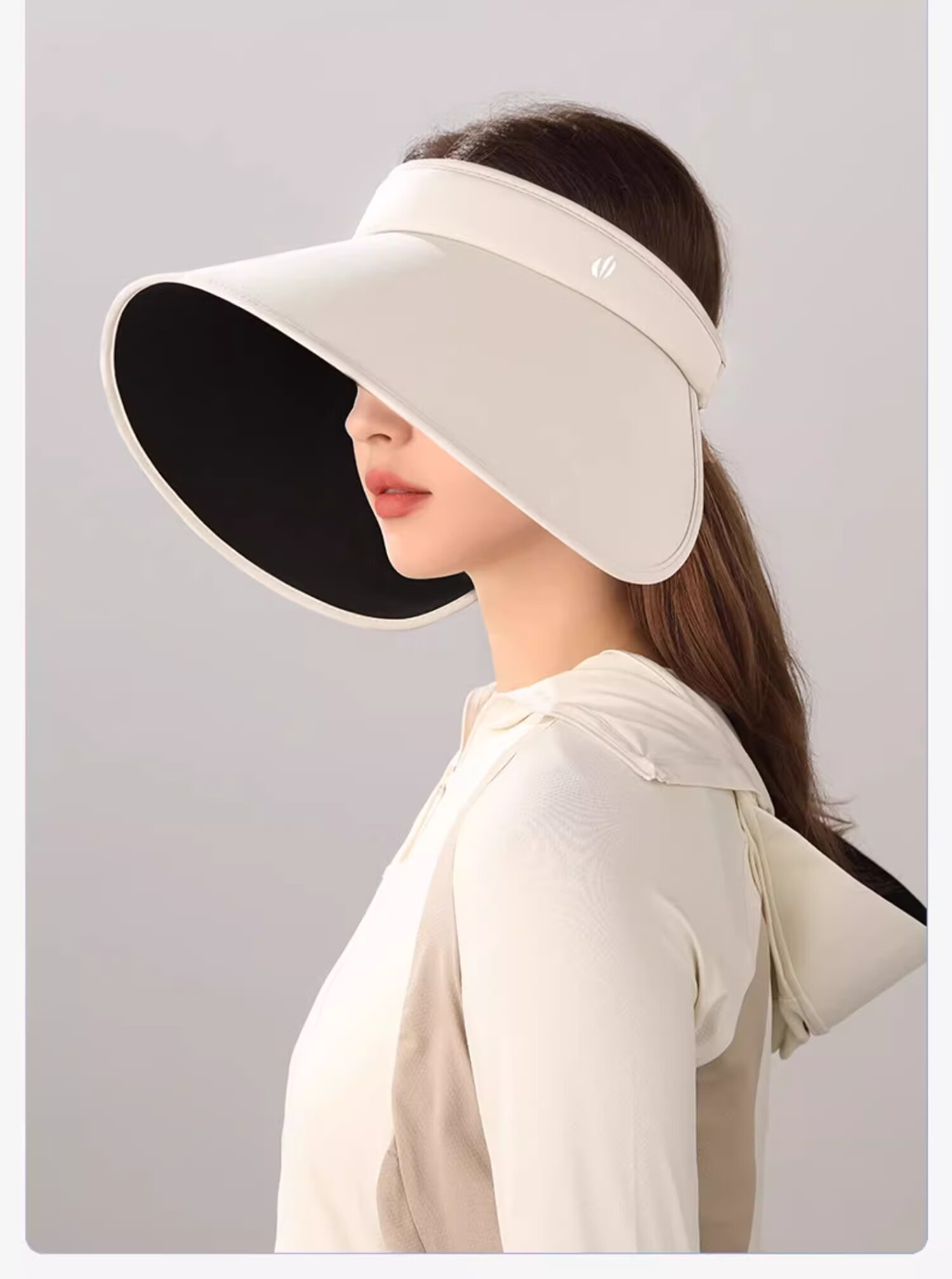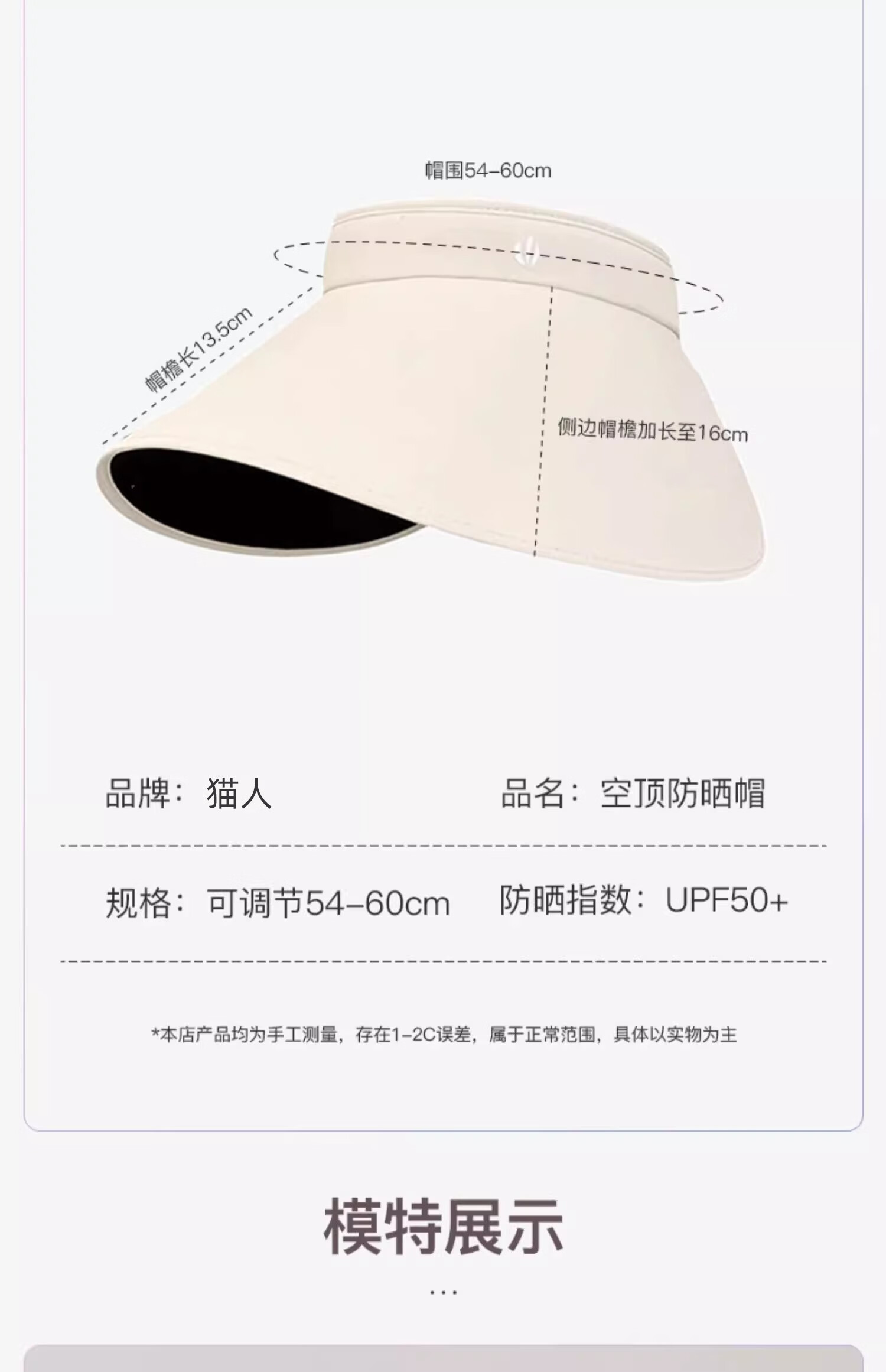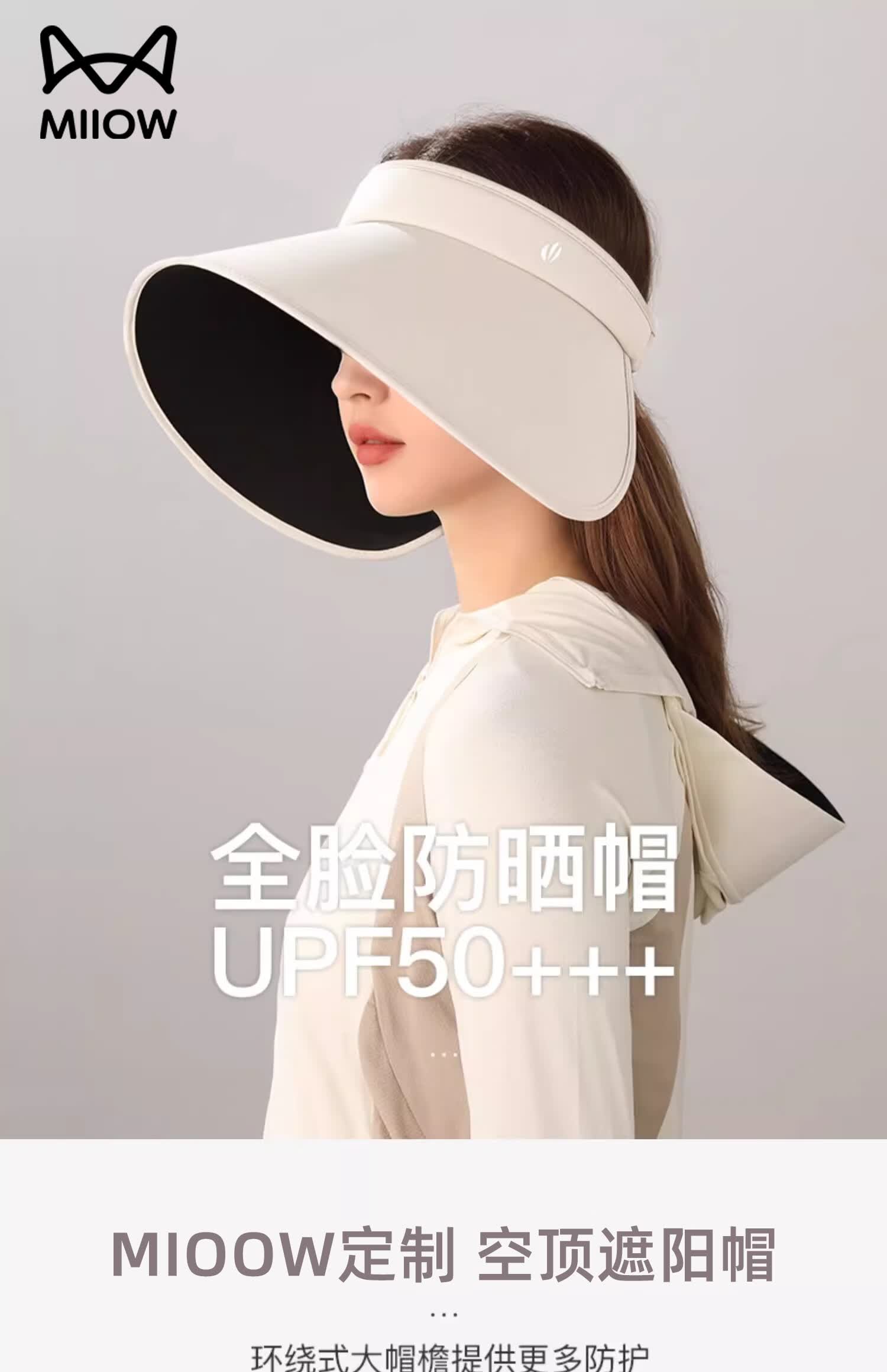 猫人帽子女夏季超大帽檐防晒帽太阳帽黑胶空顶帽防紫外线遮阳帽子 米色【显白无压力】