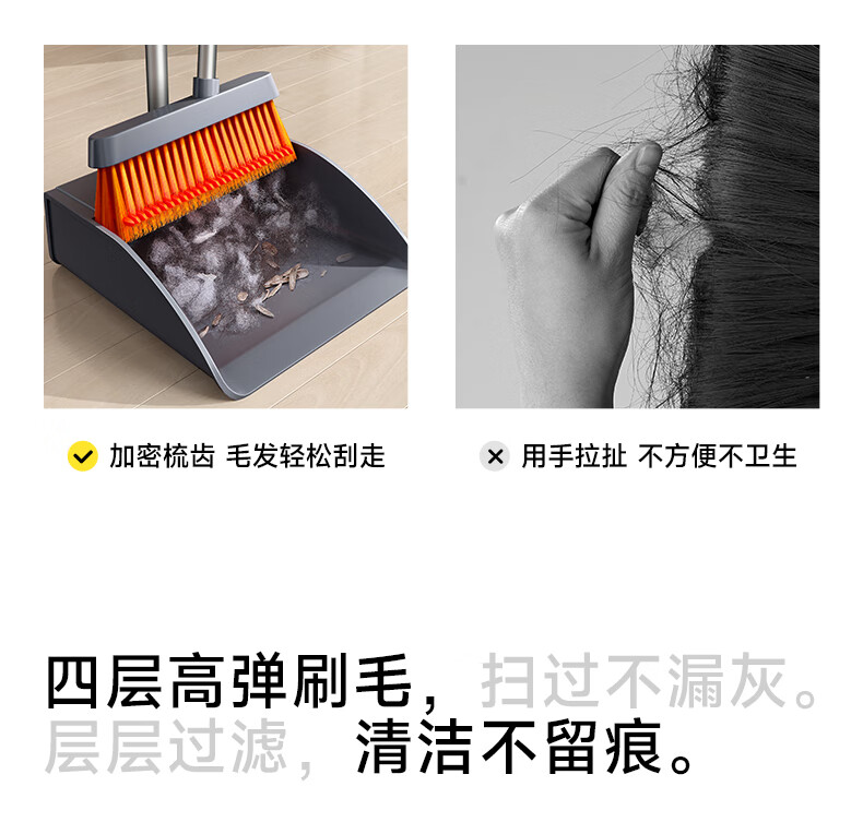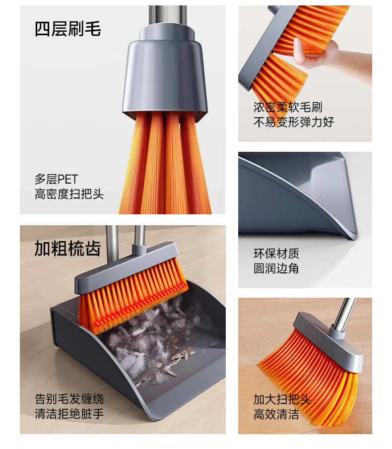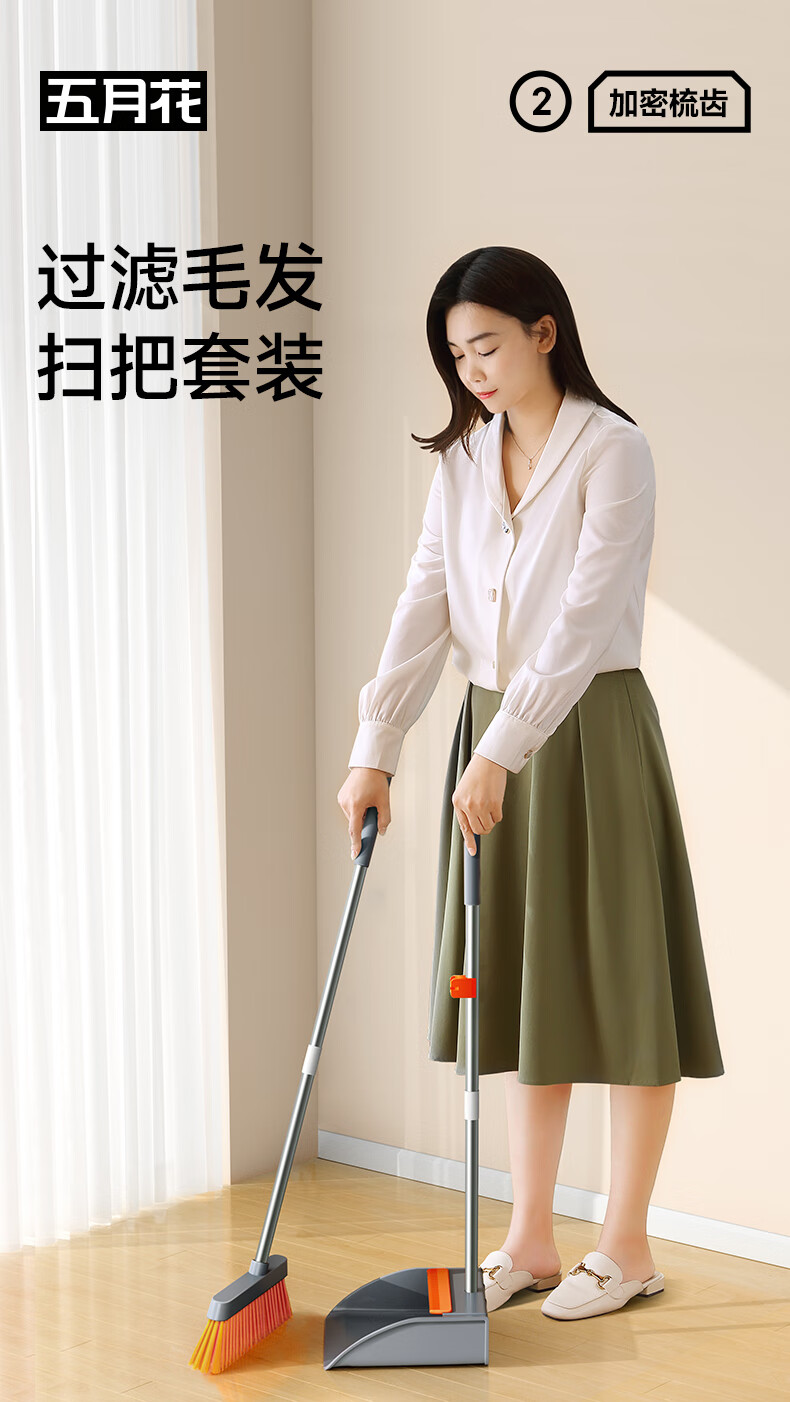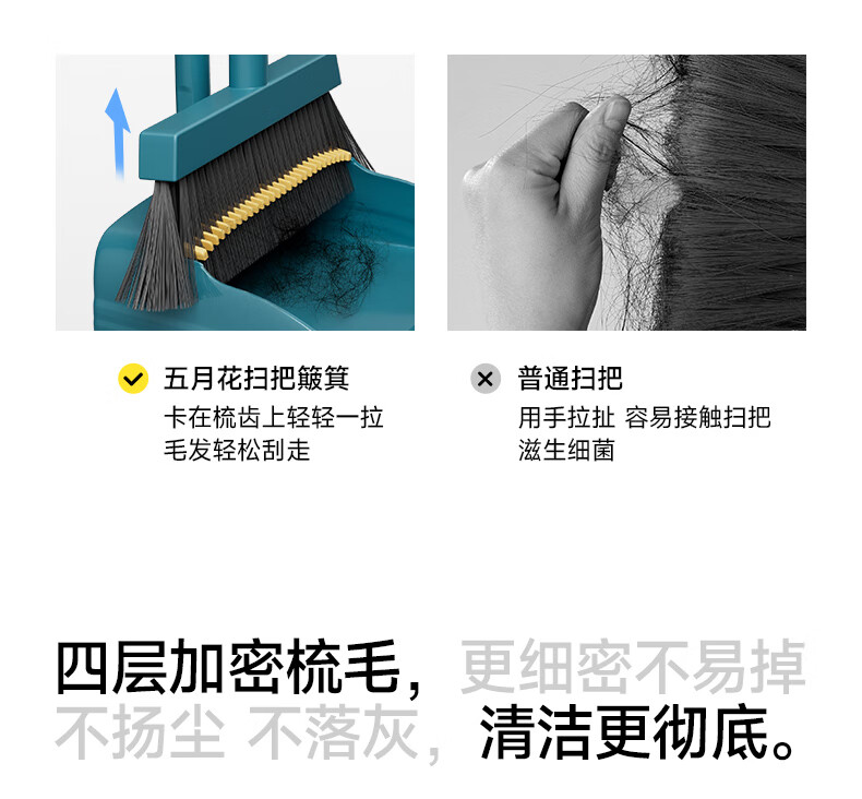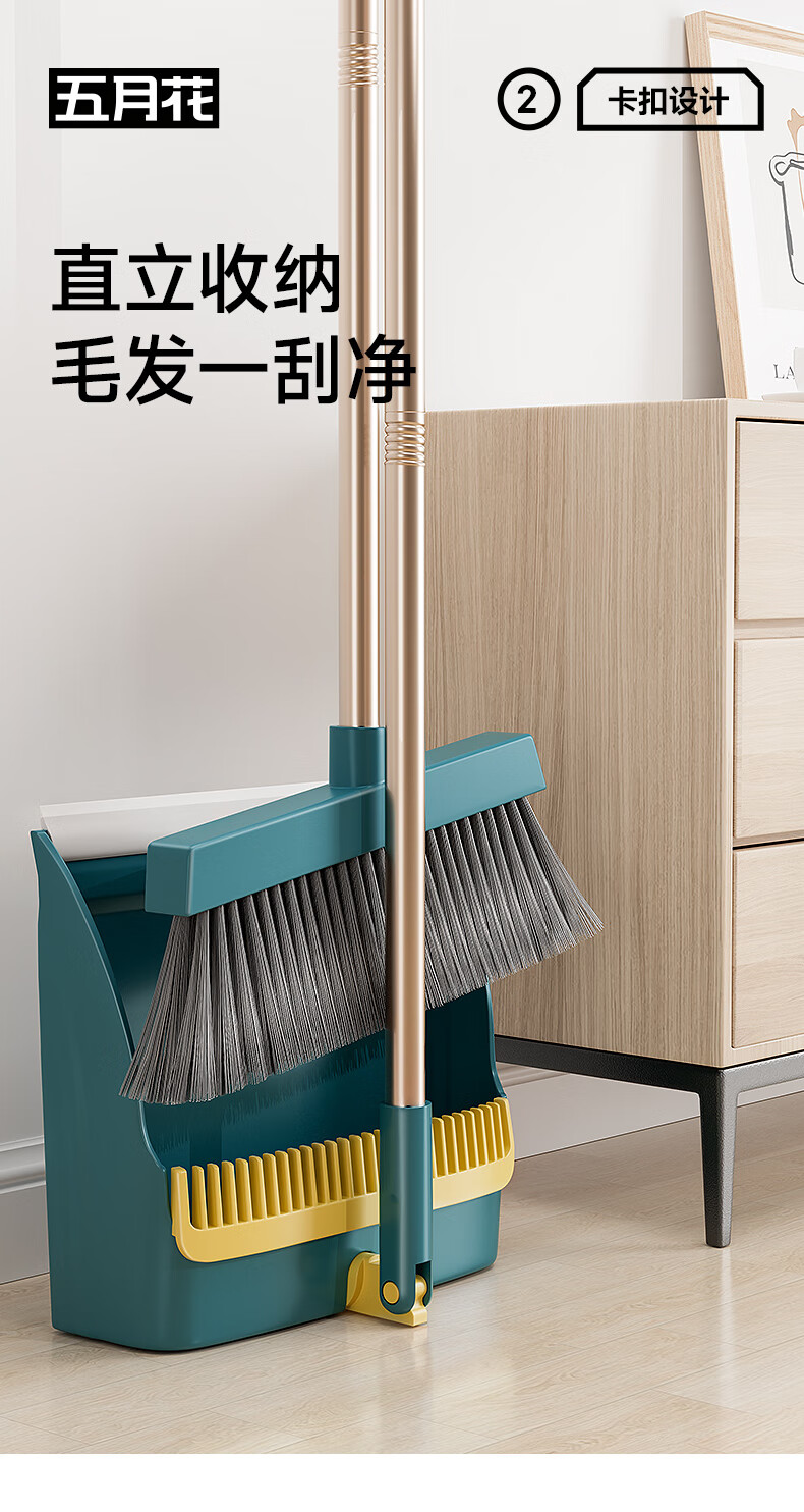 五月花扫把簸箕套装家用旋转扫地扫帚可直立收纳带梳齿可防风大扫除神器 可折叠卡位套扫