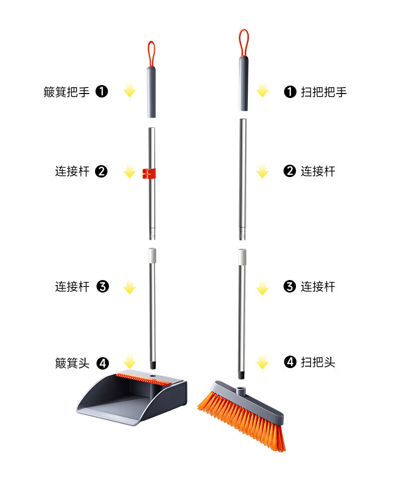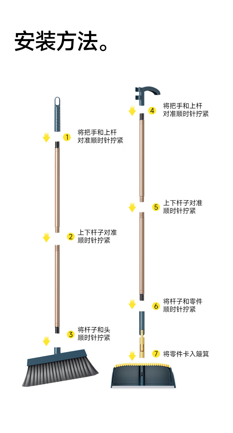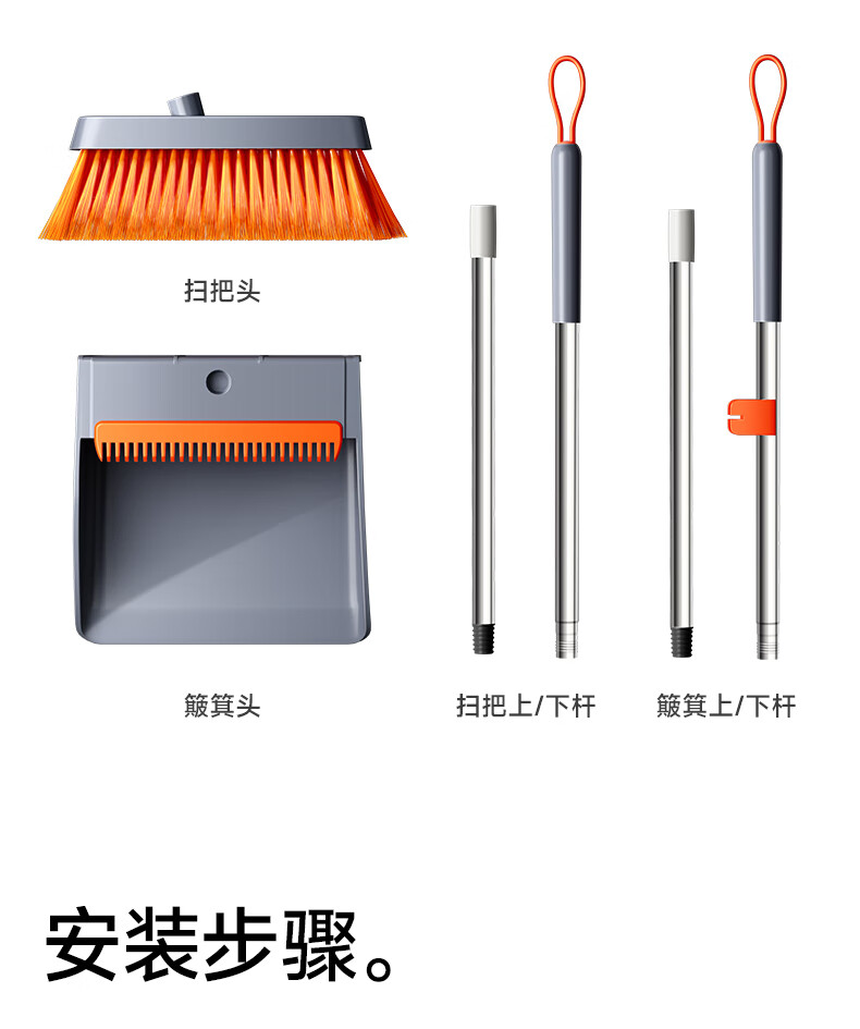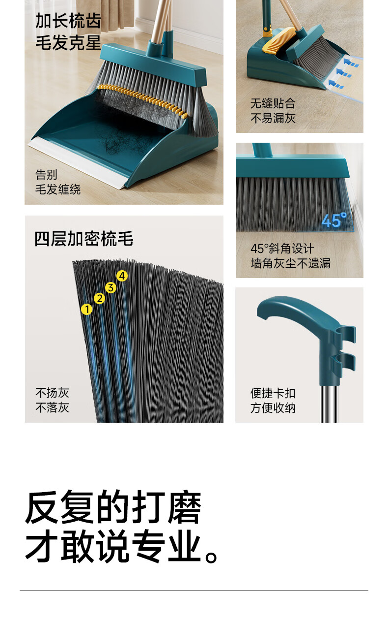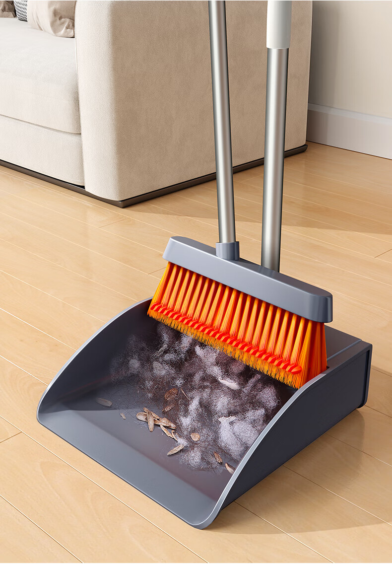 五月花扫把簸箕套装家用旋转扫地扫帚可直立收纳带梳齿可防风大扫除神器 可折叠卡位套扫