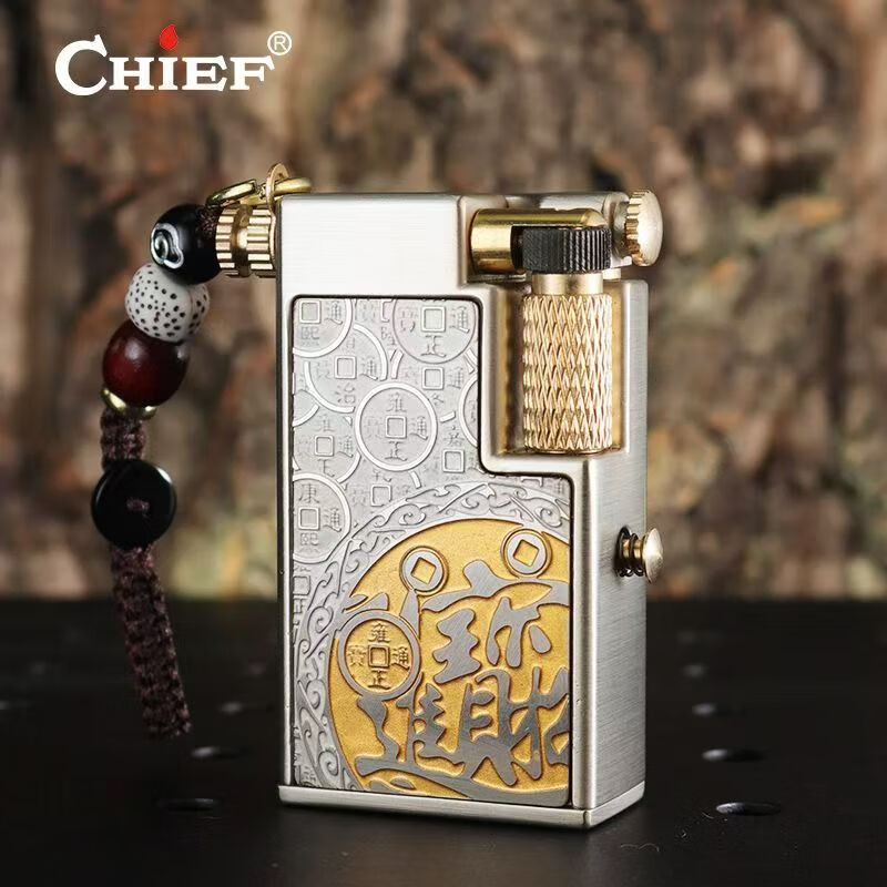 首领三代招财进宝煤油打火机双油仓待机王高档送父亲节男友礼物潮 八卦黑【礼盒装 三代升级款】 煤油打火机 豪华版【打火机+133毫升煤油+火石棉芯】