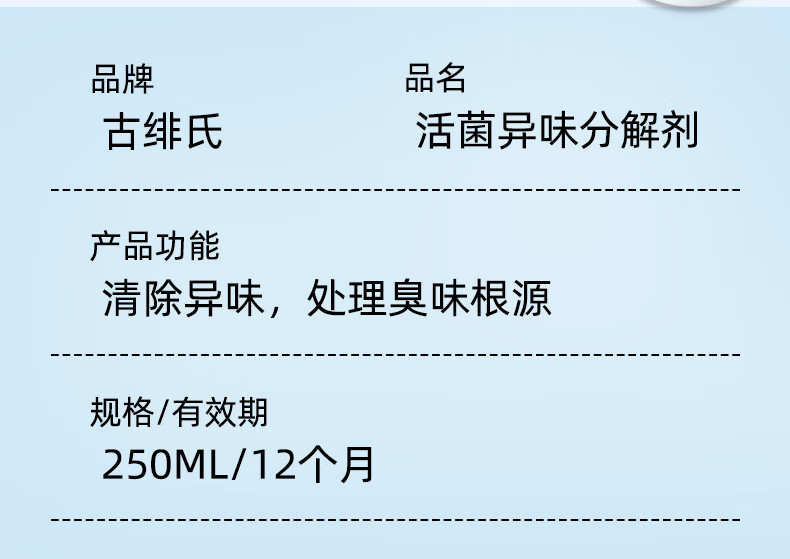 古绯氏异味除臭液洗手间厕所下水道生物活菌分解除臭剂去尿味喷雾 250ml*1瓶