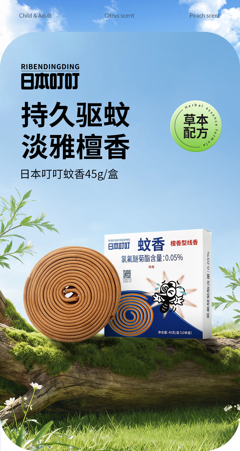 日本叮叮檀香型驱蚊蚊香盘防基孔肯雅热家用防蚊灭蚊传统蚊香盘10圈*3盒