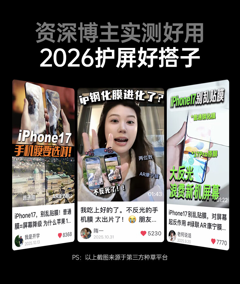绿联AR康宁膜【AR抗反射+美国康宁授权】适用iPhone17ProMax钢化膜苹果17proma手机膜防摔指纹无尘仓