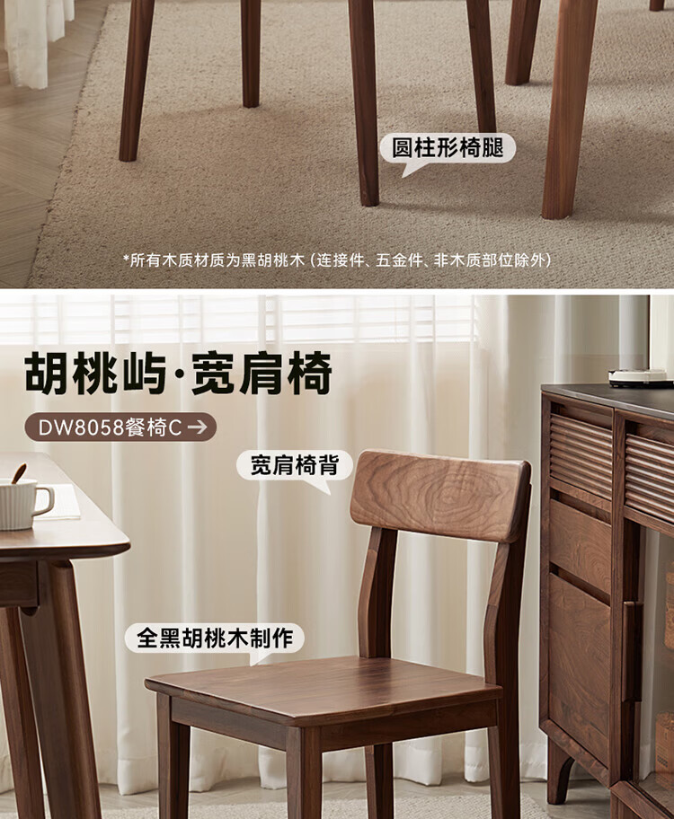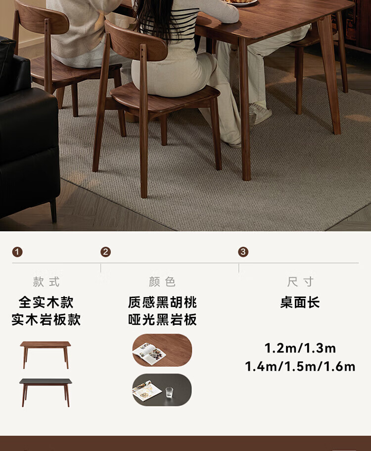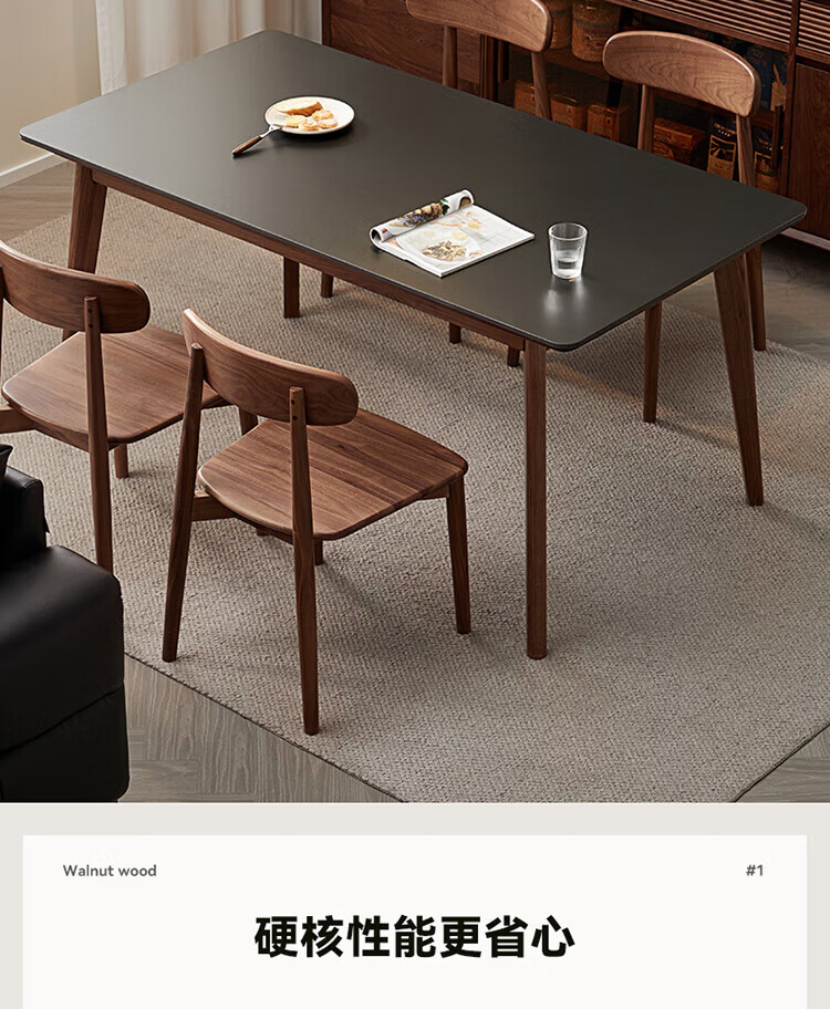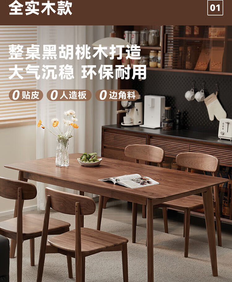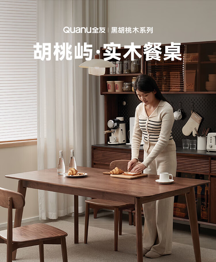 全友(QUANU)【迷瞪清仓货盘】全实木北美黑胡桃木餐桌家用吃饭桌子餐桌椅套装 黑胡桃台面|1.4米餐桌