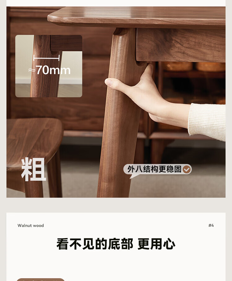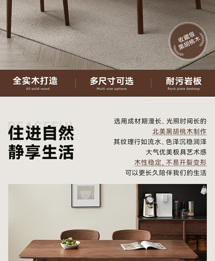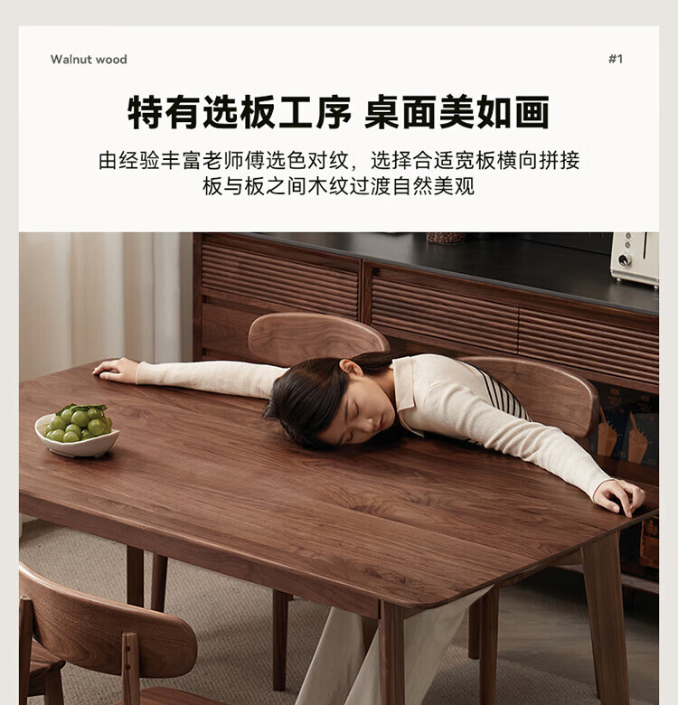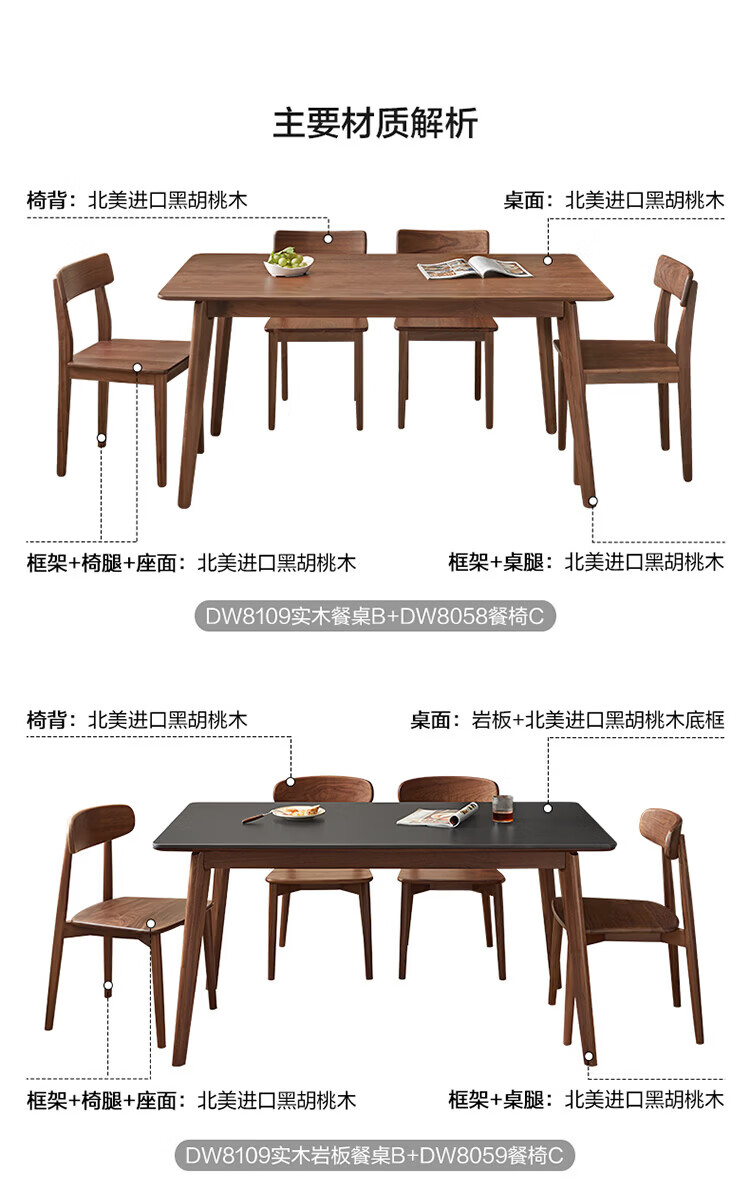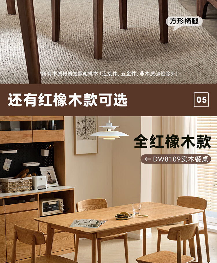 全友(QUANU)【迷瞪清仓货盘】全实木北美黑胡桃木餐桌家用吃饭桌子餐桌椅套装 黑胡桃台面|1.4米餐桌