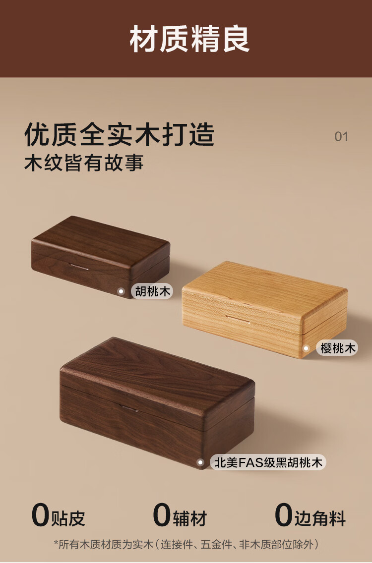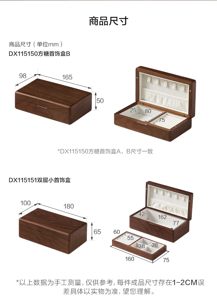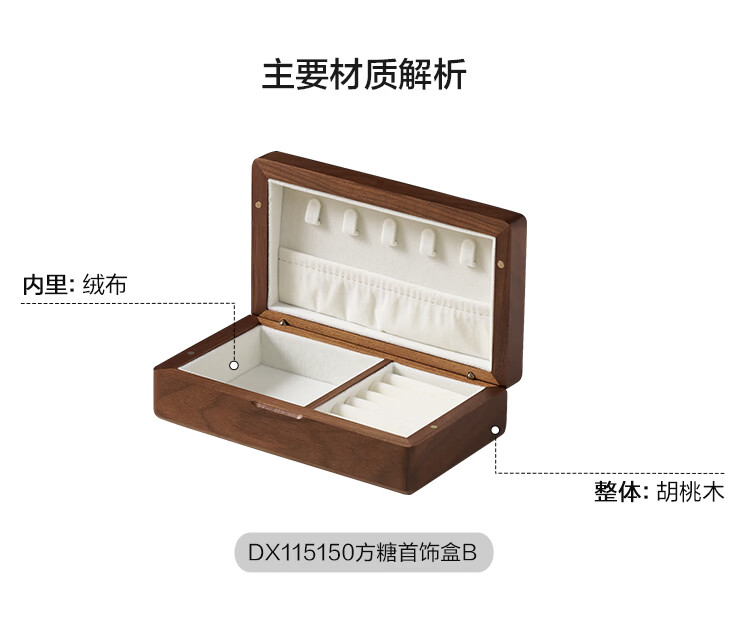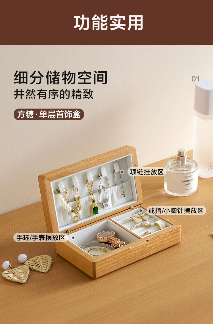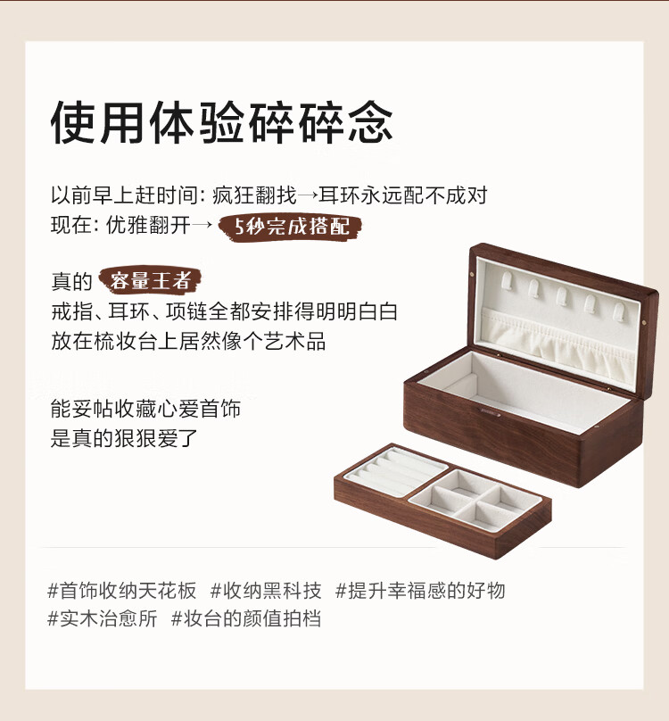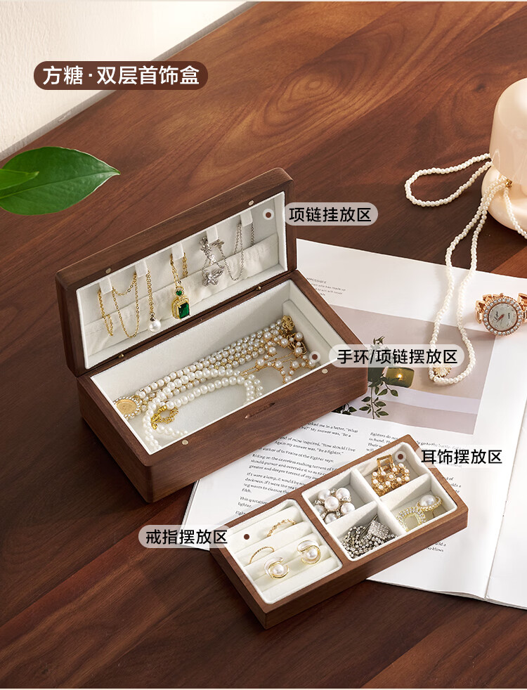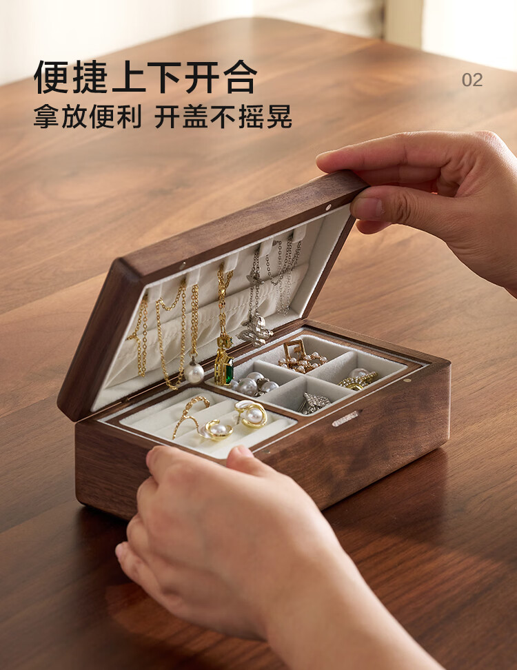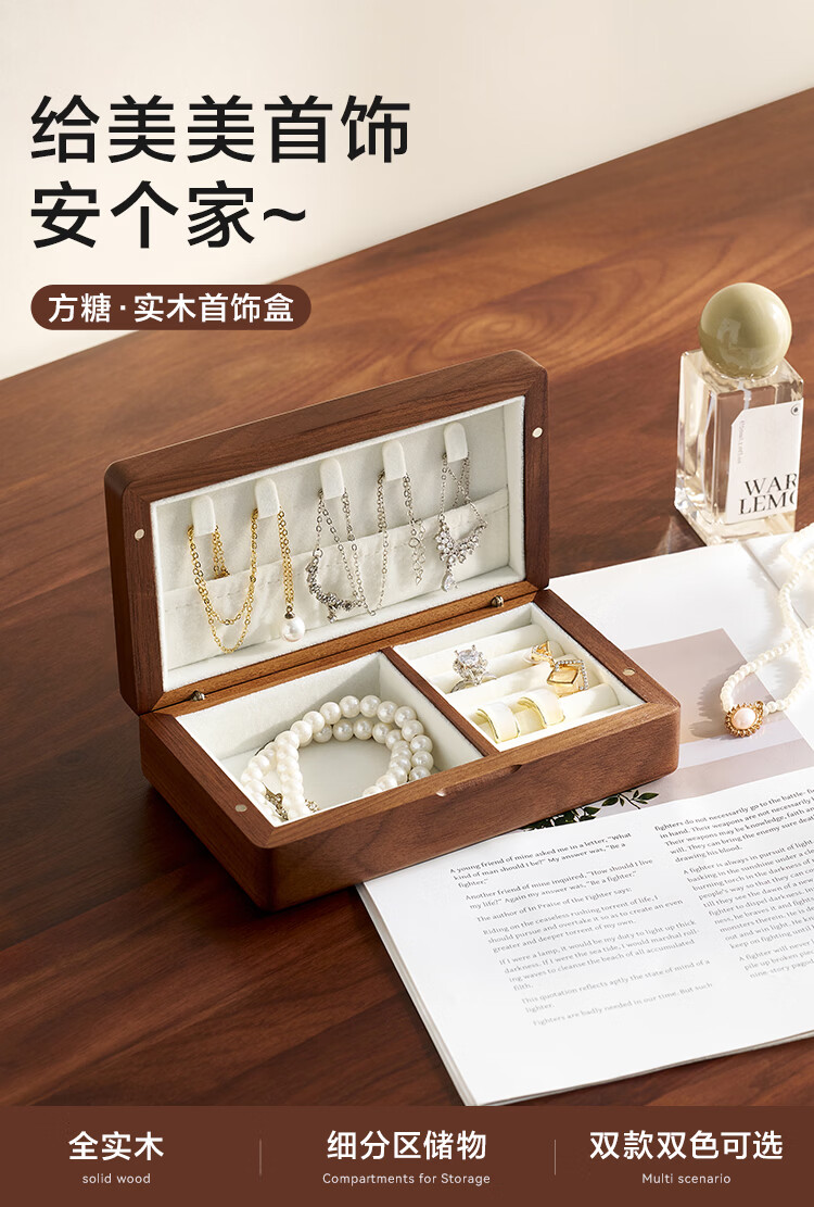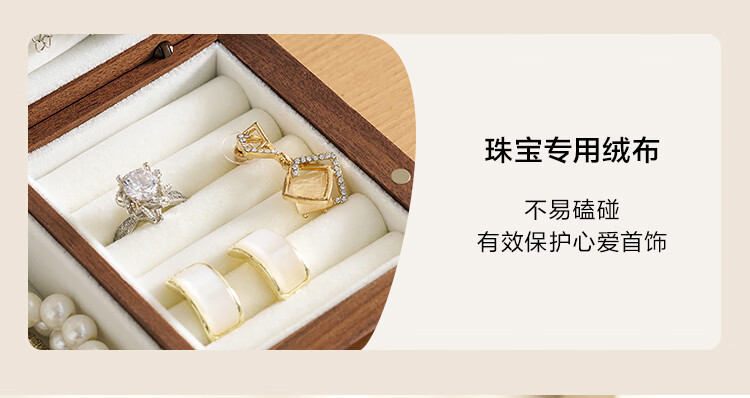 全友实木首饰盒收纳盒高档轻奢新年礼物饰品盒便携收纳盒情人节礼物KD 【胡桃木】单层首饰盒