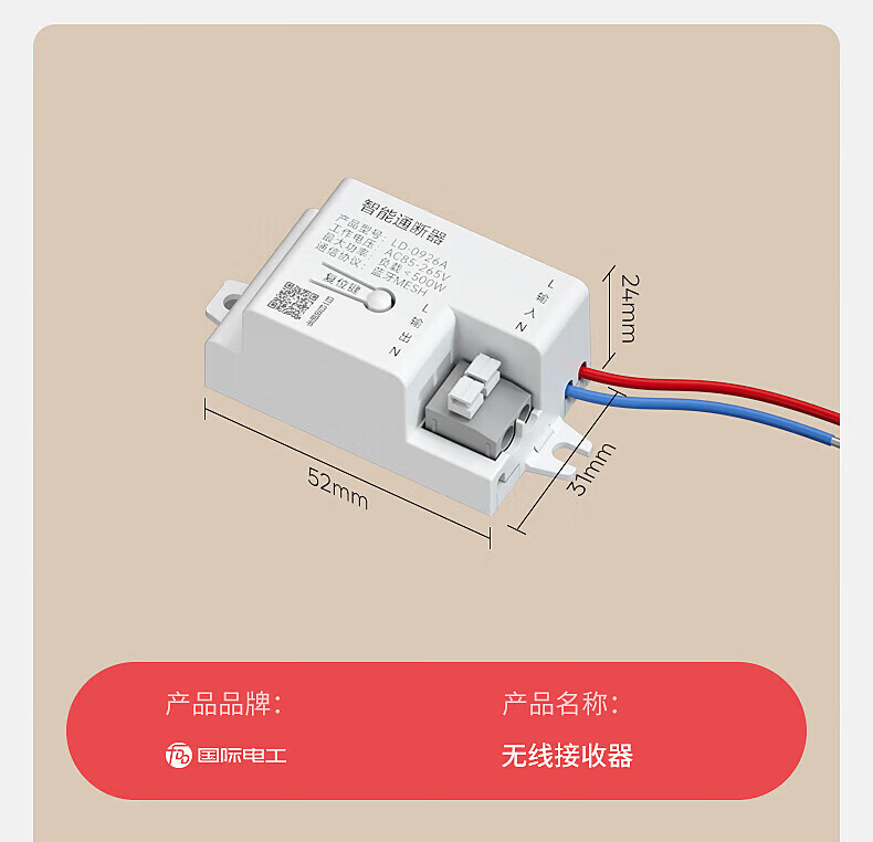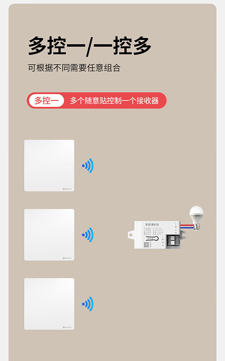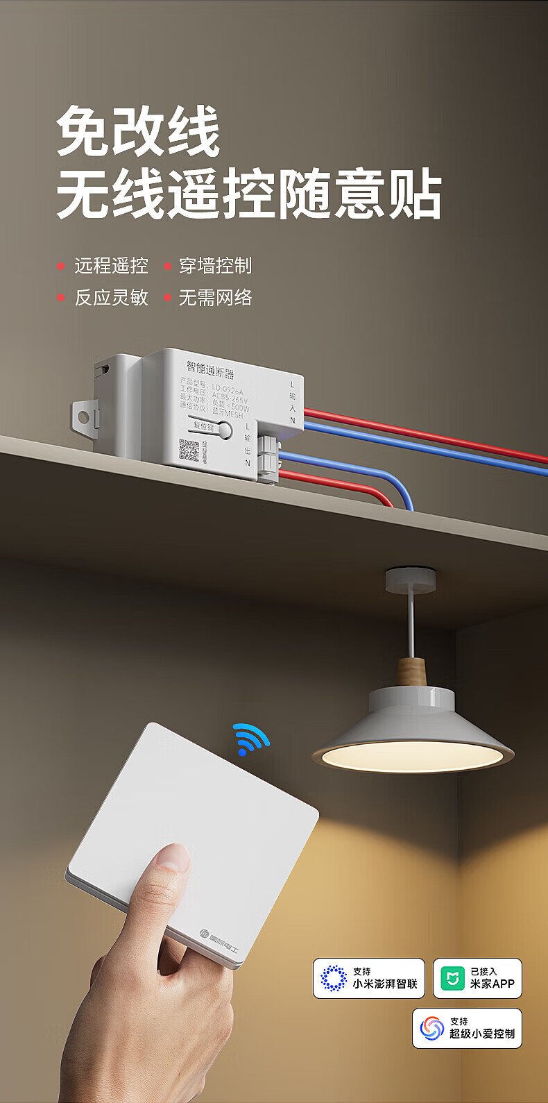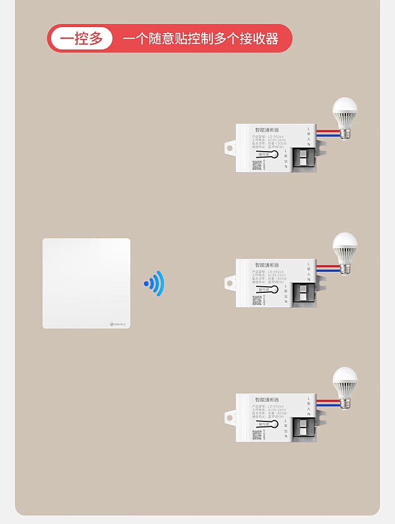 国际电工智能无线遥控开关通断器模块mesh已接入米家APP支持小爱同学控制 灰色一开(1个智能接收器+1个随意贴)