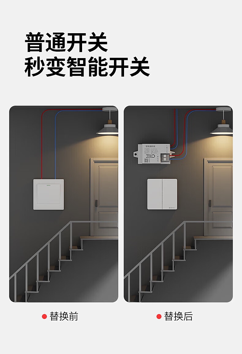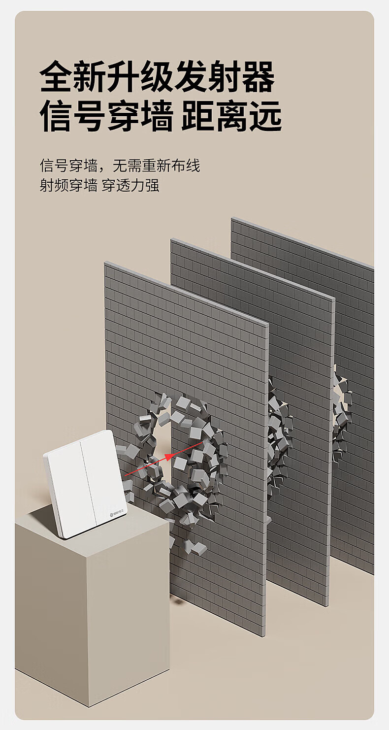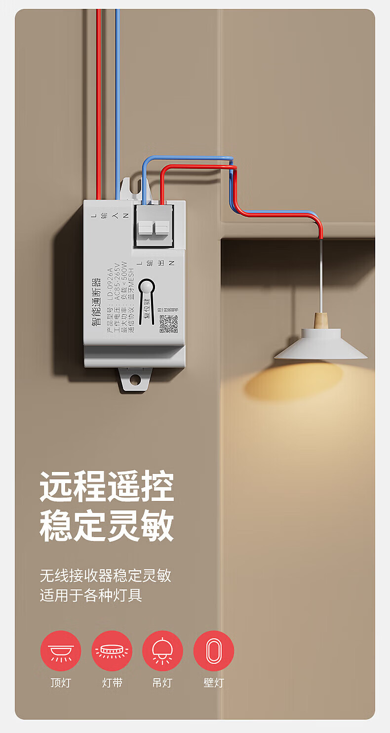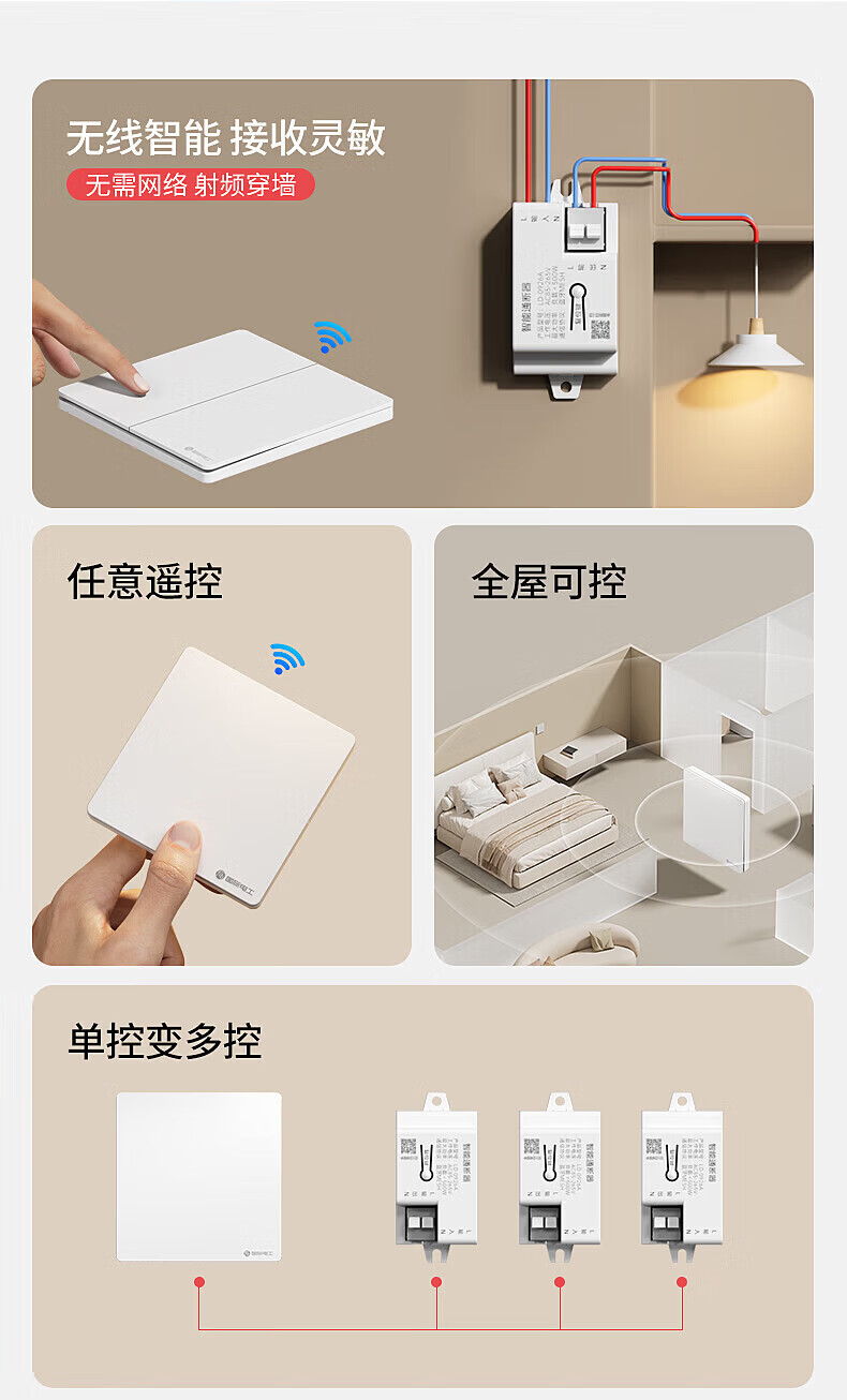国际电工智能无线遥控开关通断器模块mesh已接入米家APP支持小爱同学控制 灰色一开(1个智能接收器+1个随意贴)