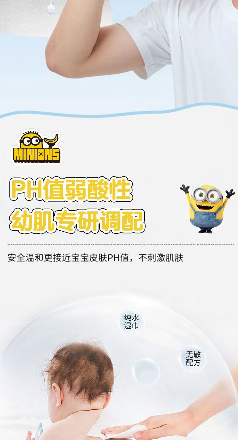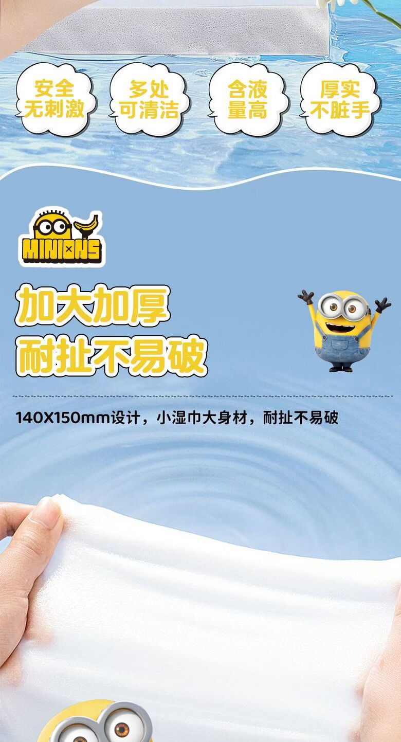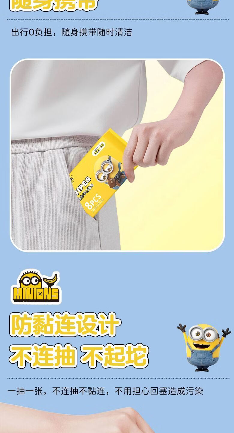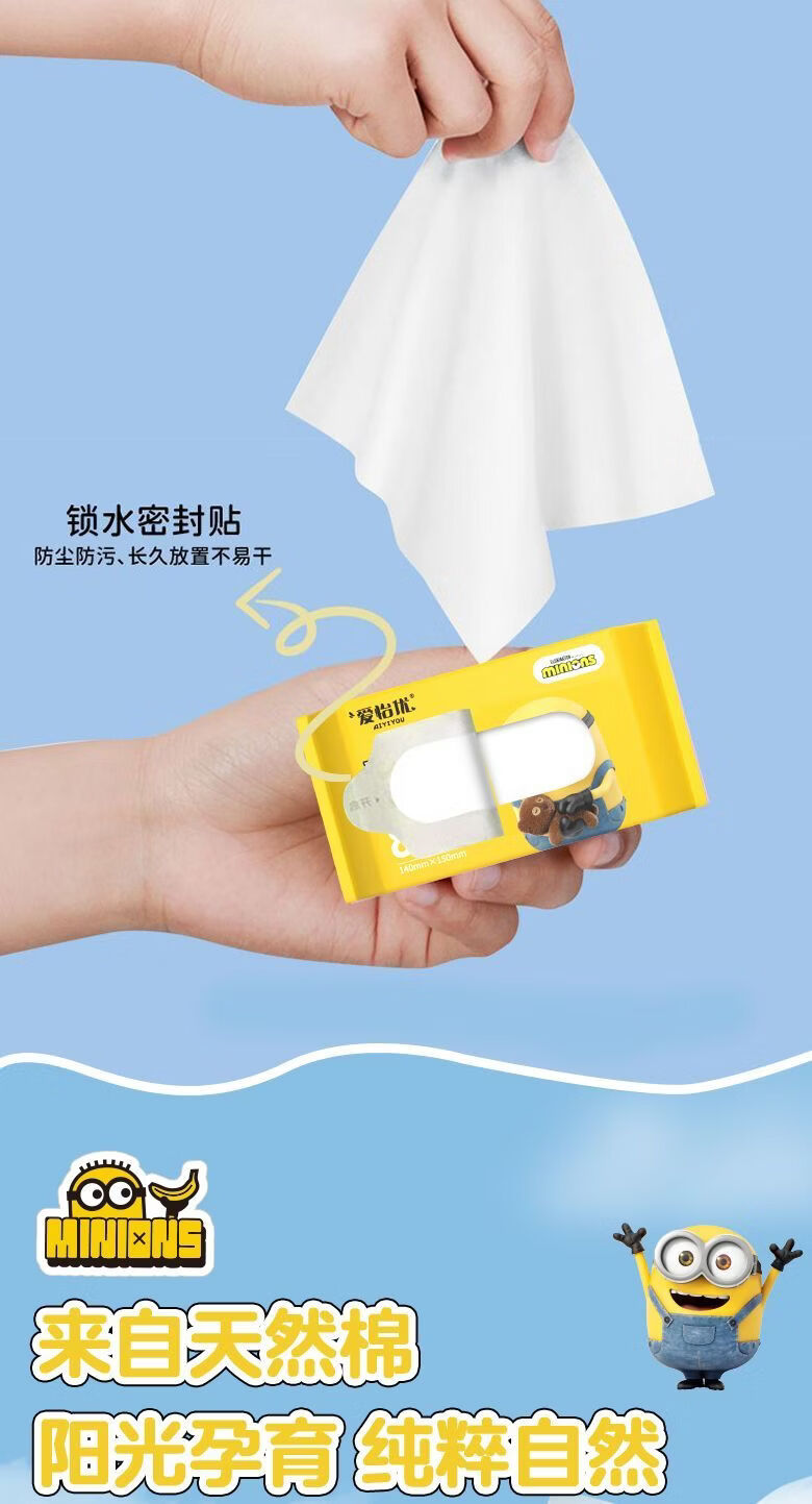 爱怡优×小黄人联名 便携迷你湿巾 EDI纯水 儿童手口湿纸巾婴幼儿湿巾纸 4提【8片*32包共256片】