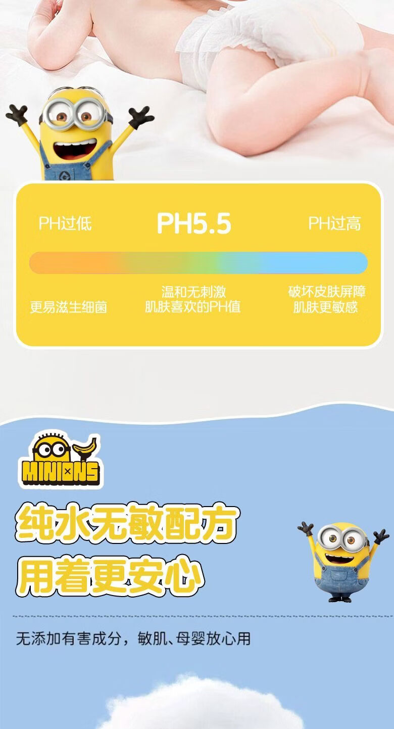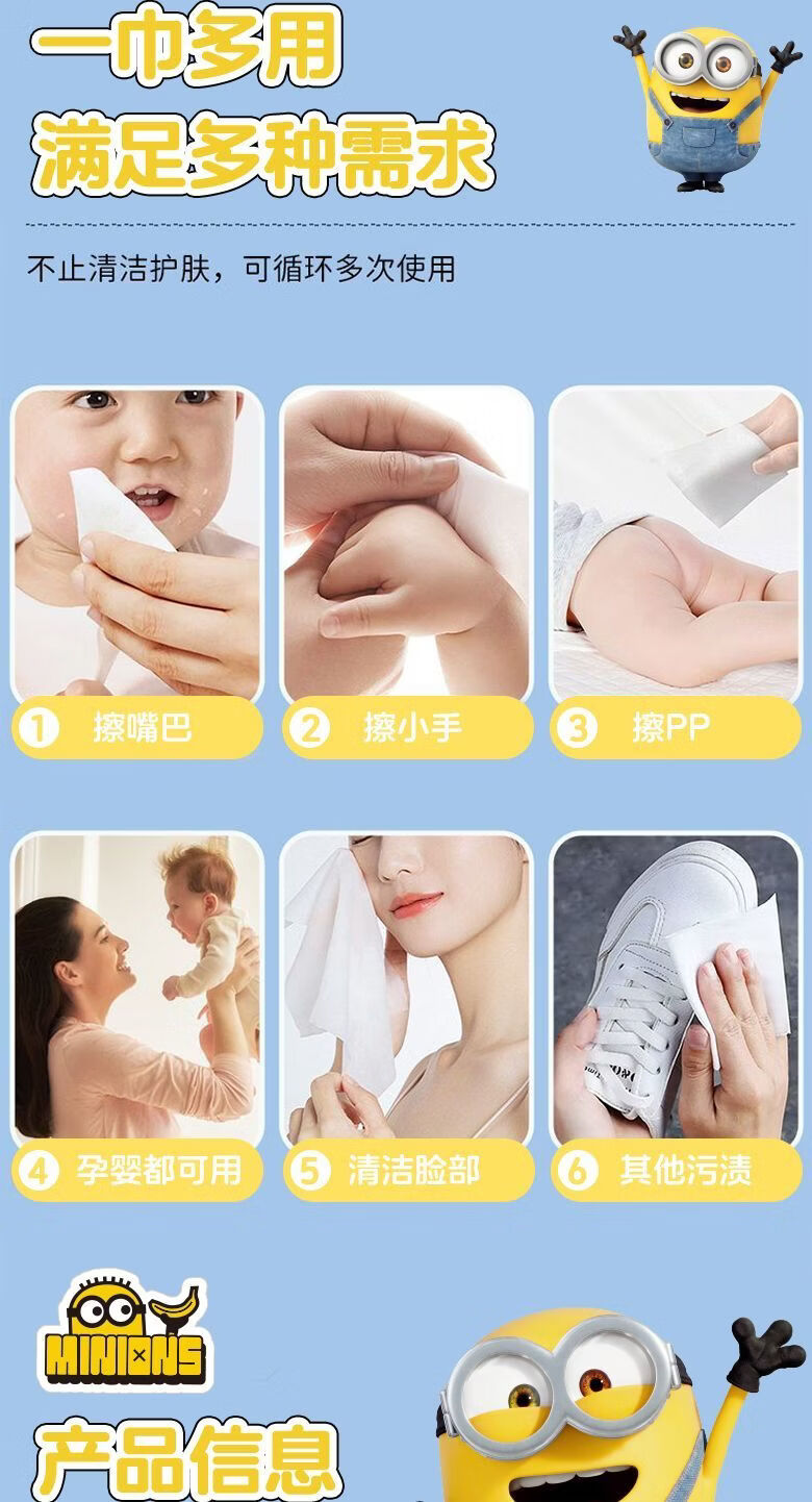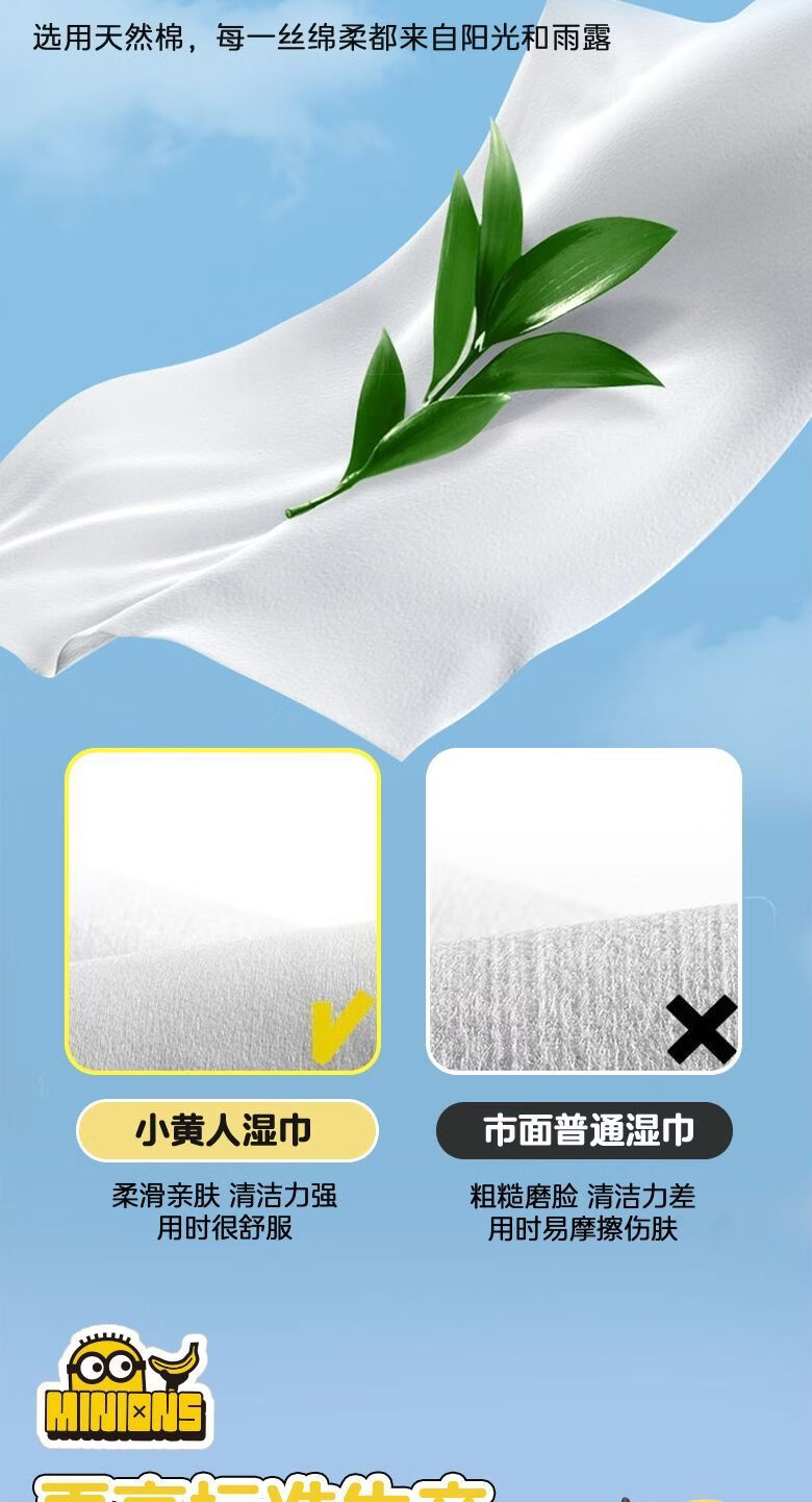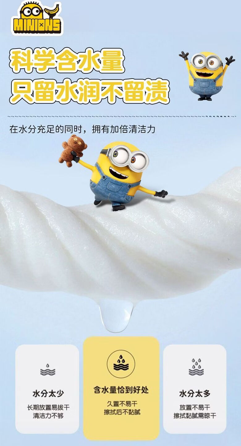 爱怡优×小黄人联名 便携迷你湿巾 EDI纯水 儿童手口湿纸巾婴幼儿湿巾纸 4提【8片*32包共256片】
