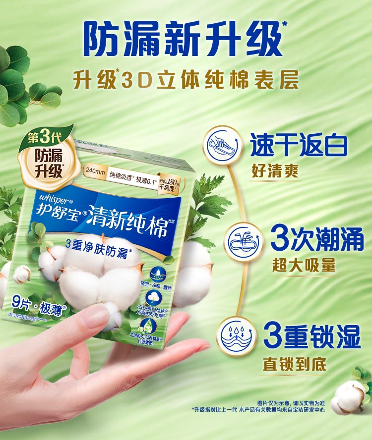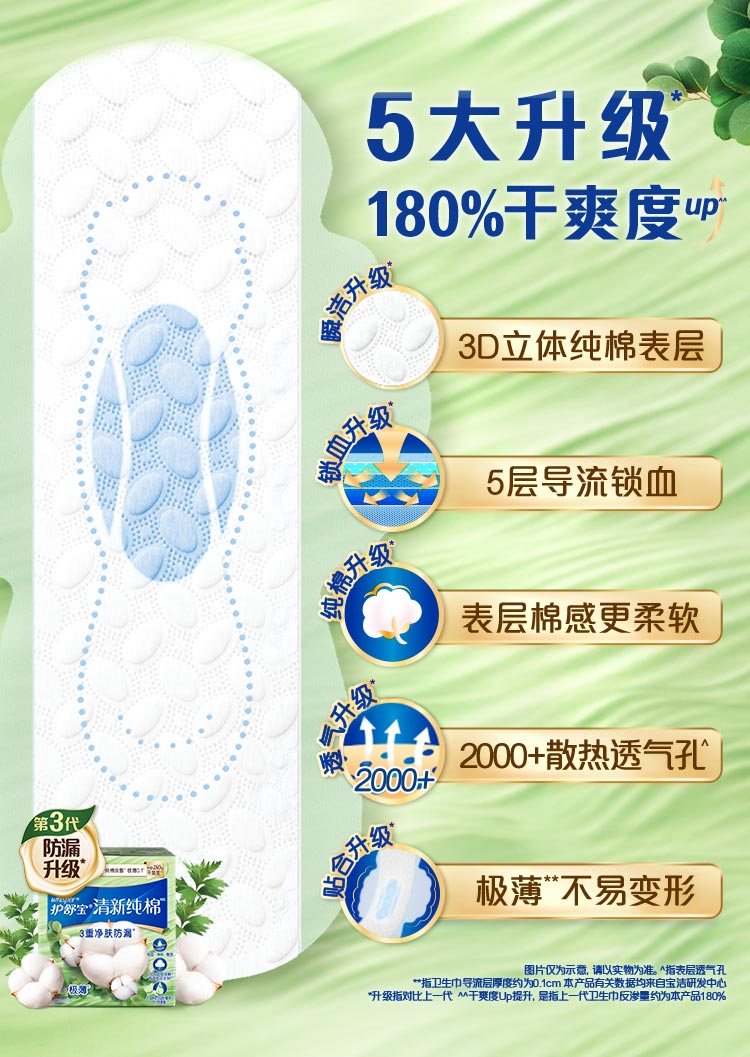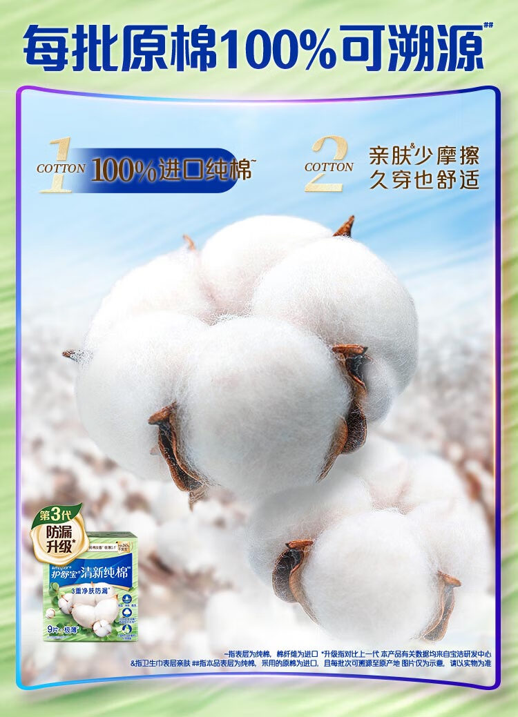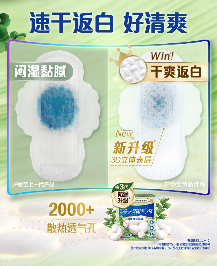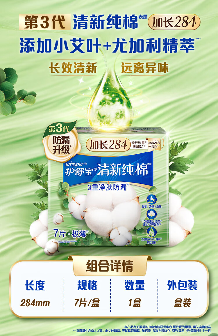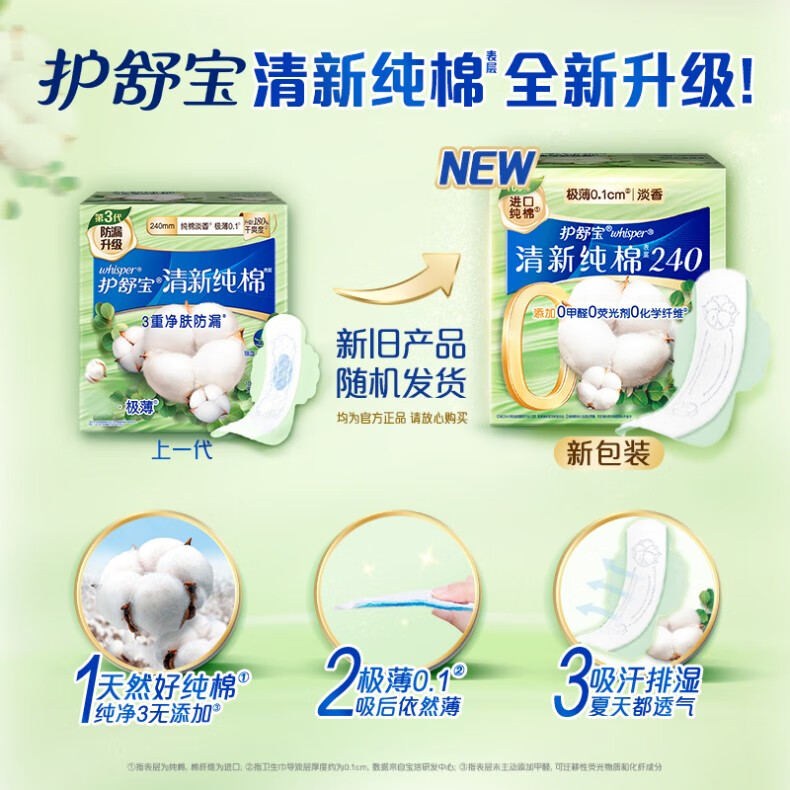 护舒宝清新纯棉卫生巾量多日用284mm7片姨妈巾超薄透气京东自营官方旗舰