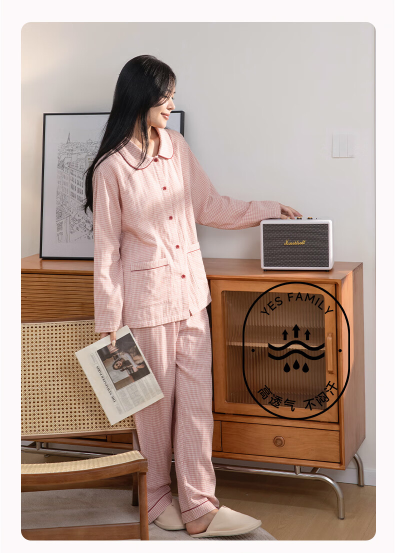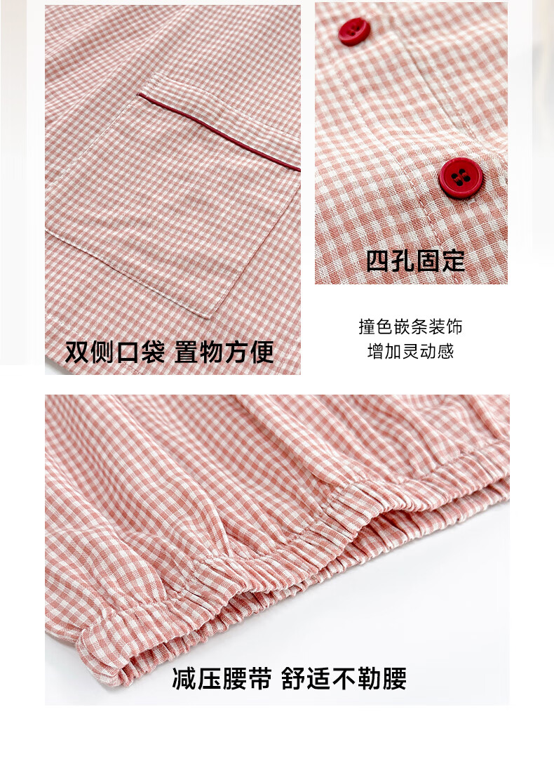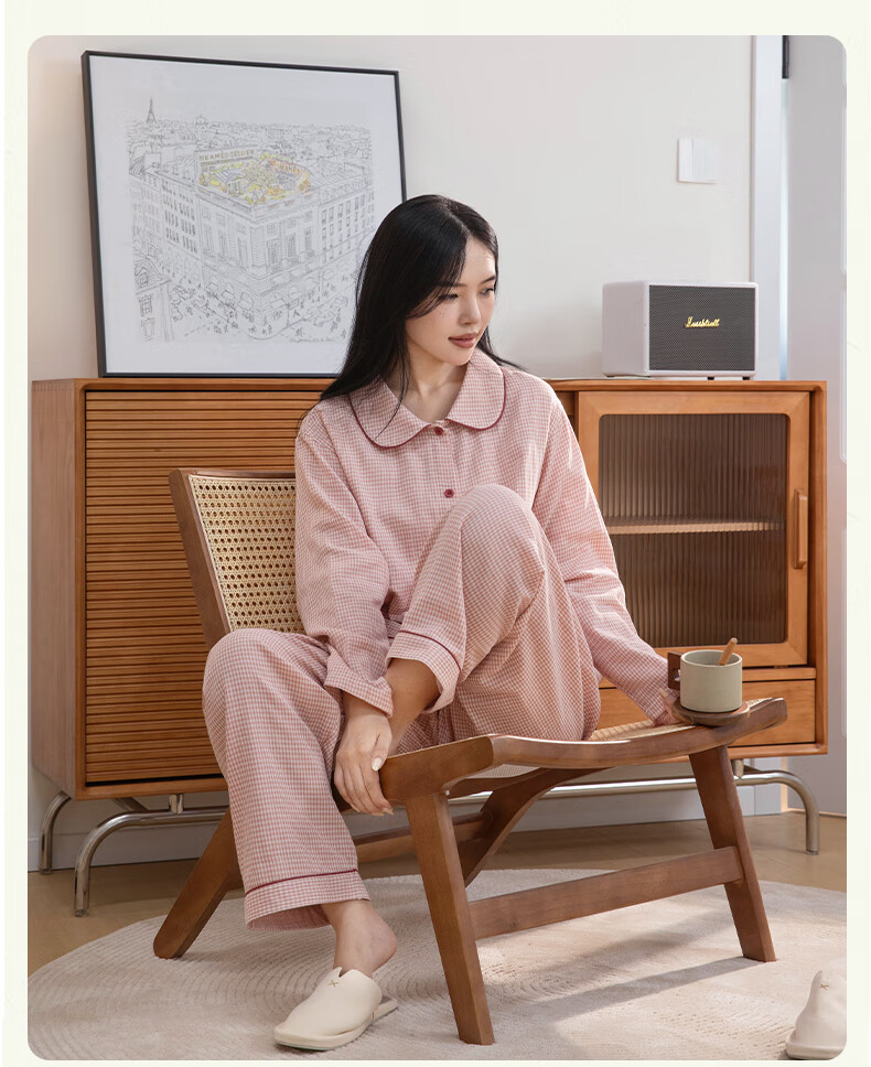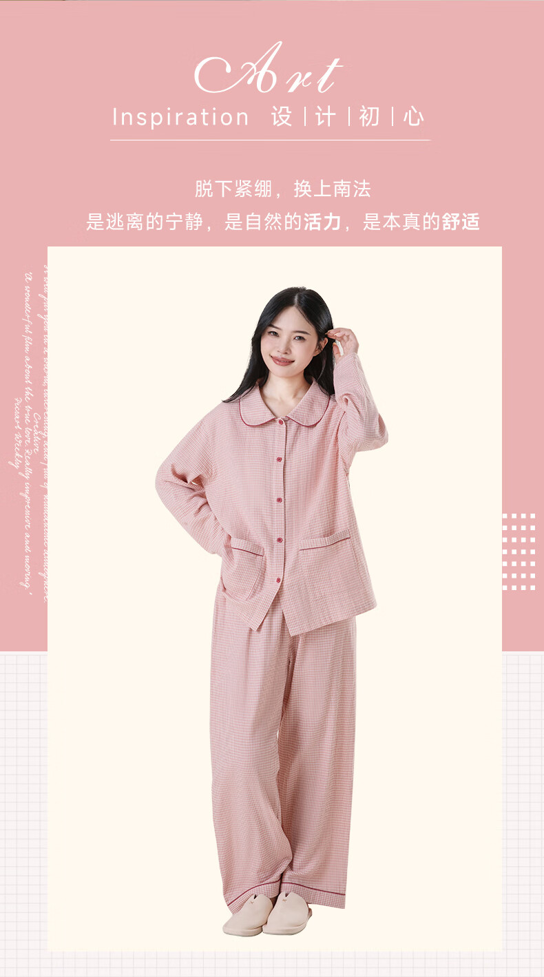 宜色家纯棉棉纱睡衣双层纱家居服 100%棉纱织男女士情侣睡衣套装可外穿 升级款娃娃领-甜玉米 女款 XL