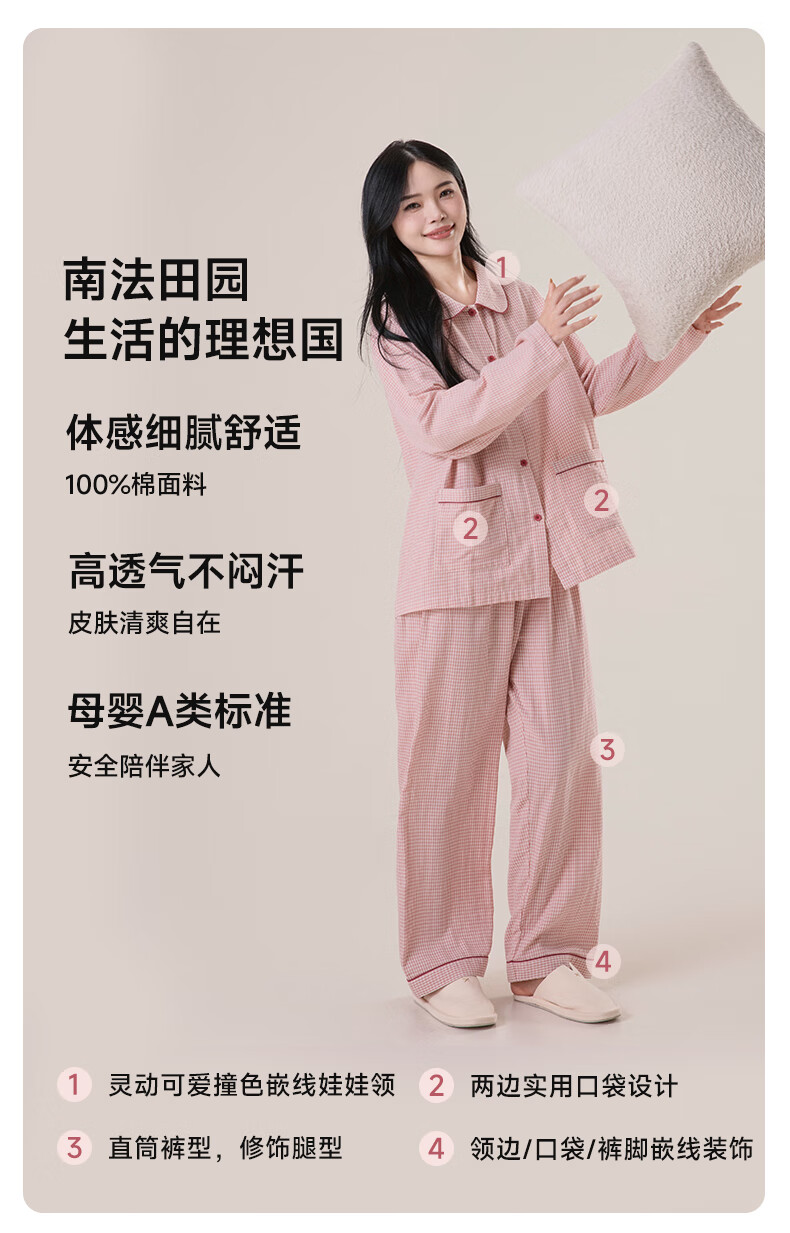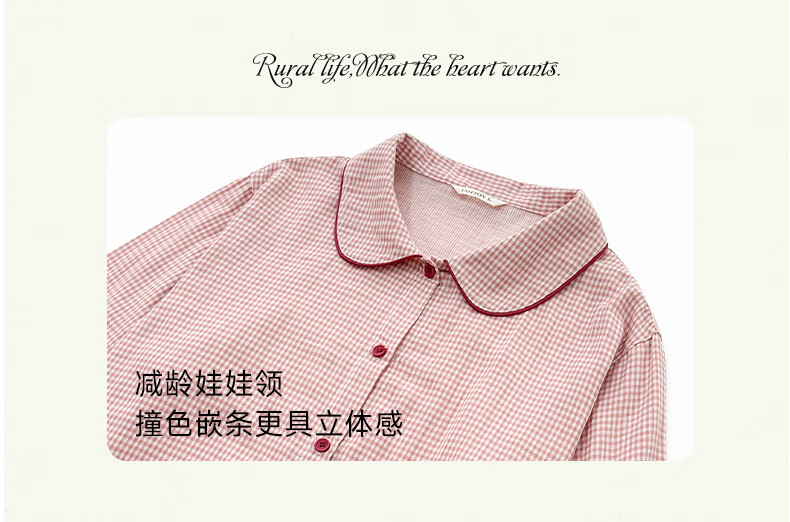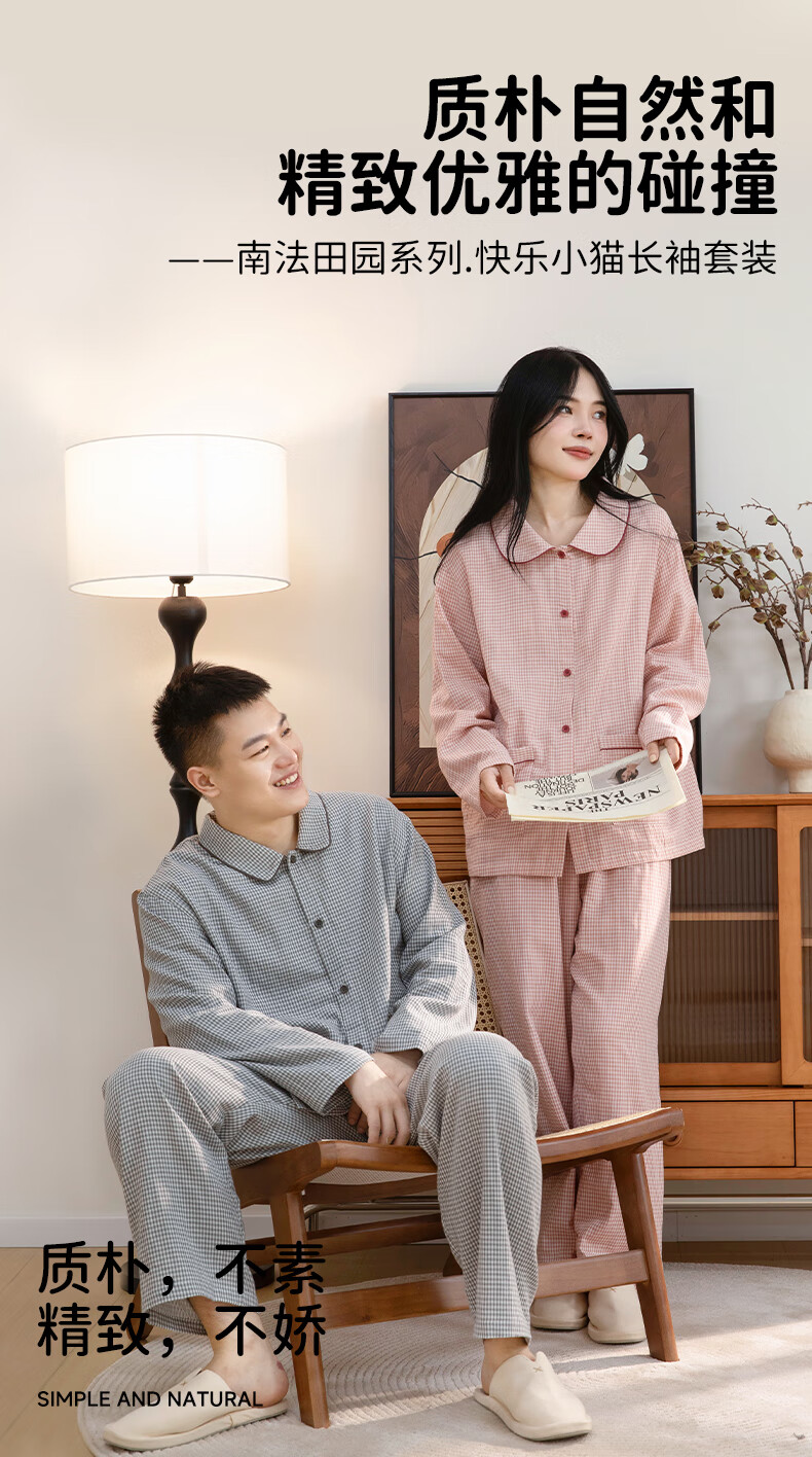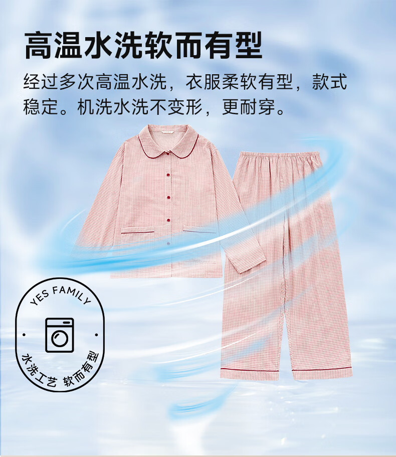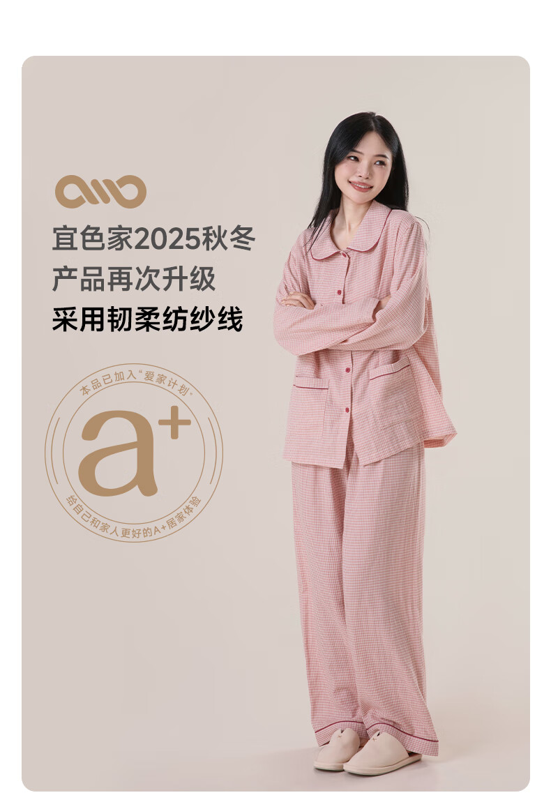 宜色家纯棉棉纱睡衣双层纱家居服 100%棉纱织男女士情侣睡衣套装可外穿 升级款娃娃领-甜玉米 女款 XL