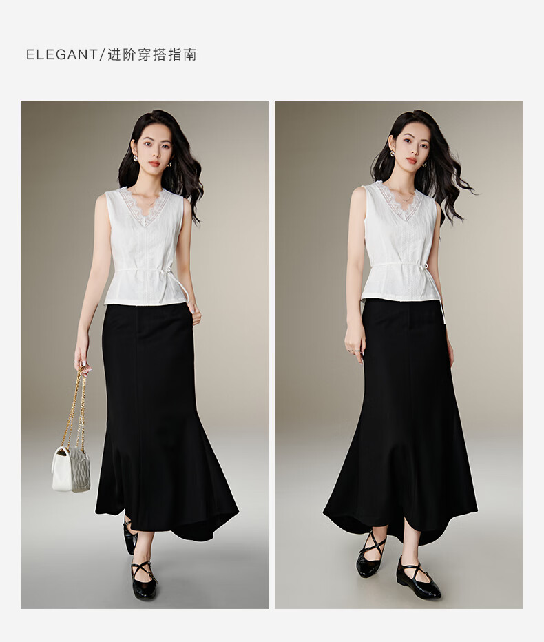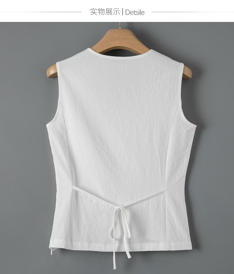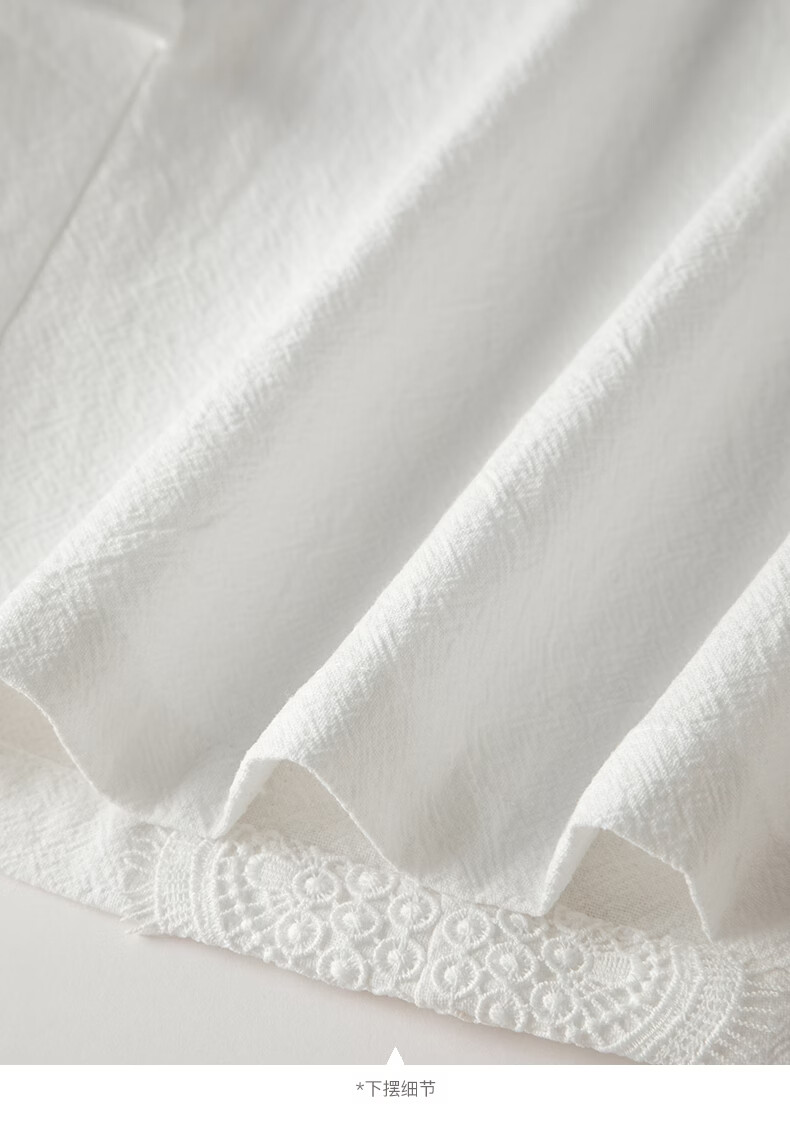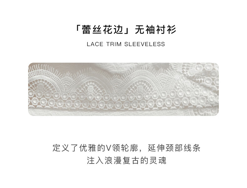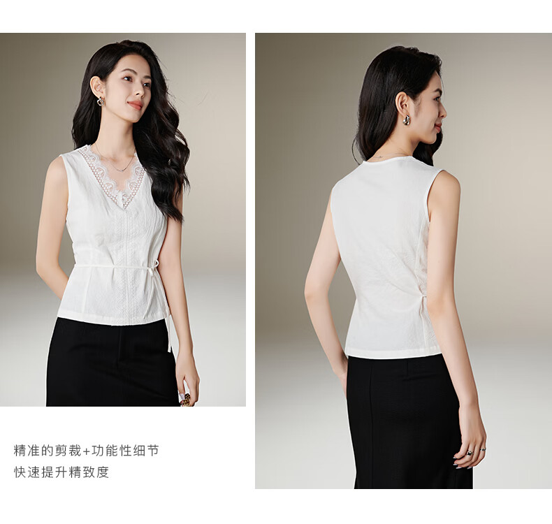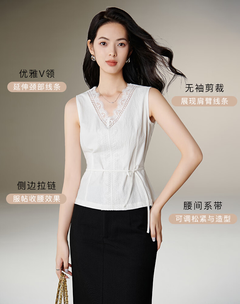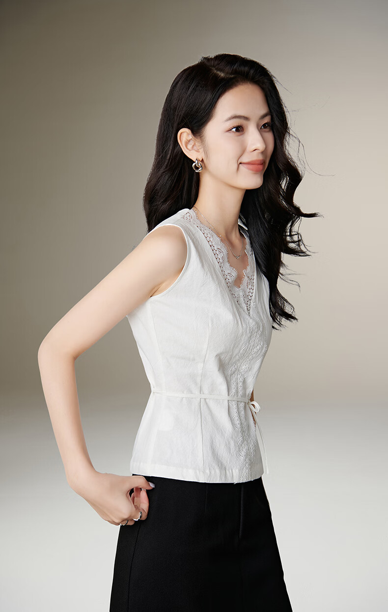晚白【新品】2026年春款时尚蕾丝花边V领上衣全棉亲肤柔软无袖衬衫女 白色 L