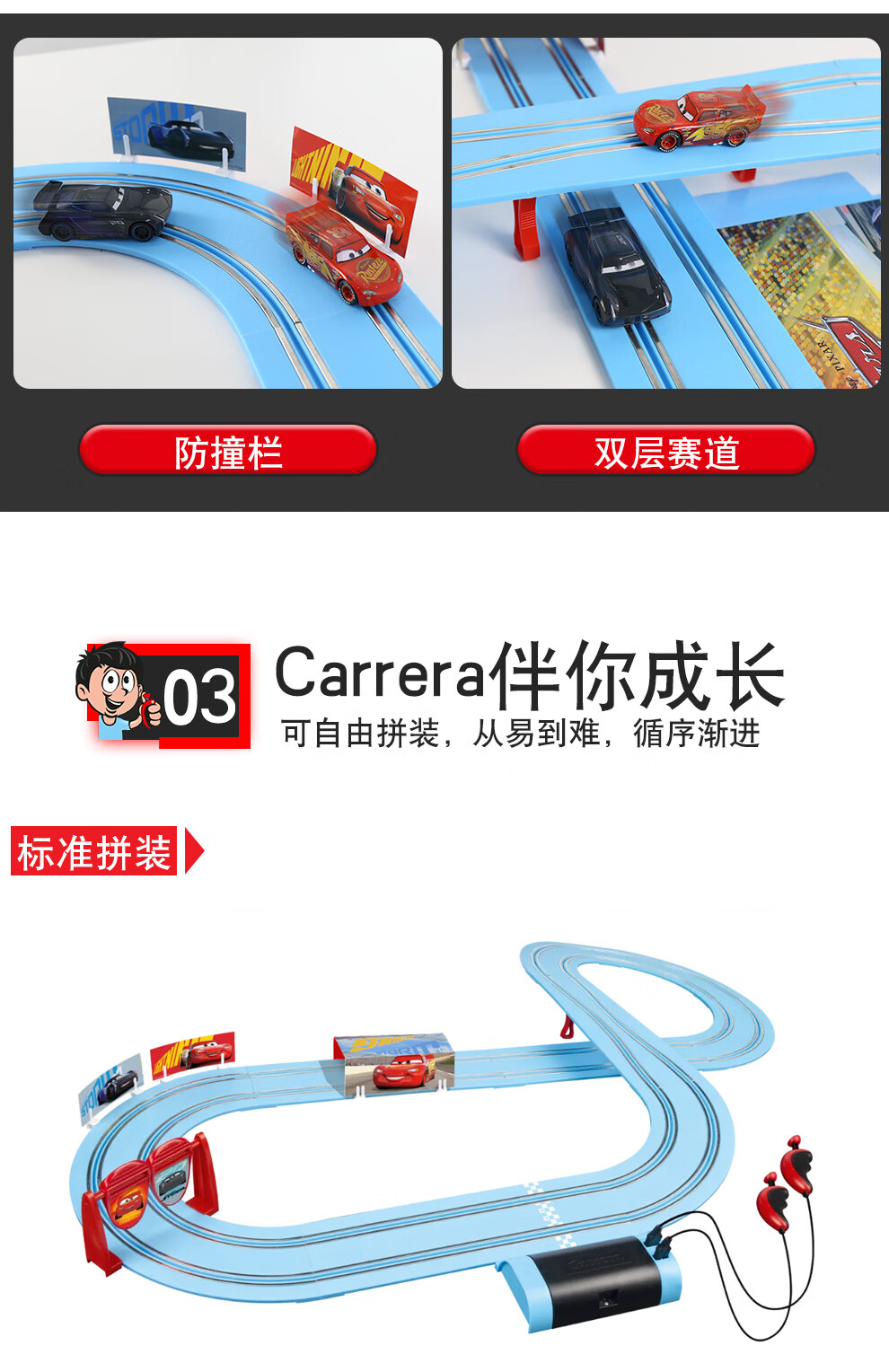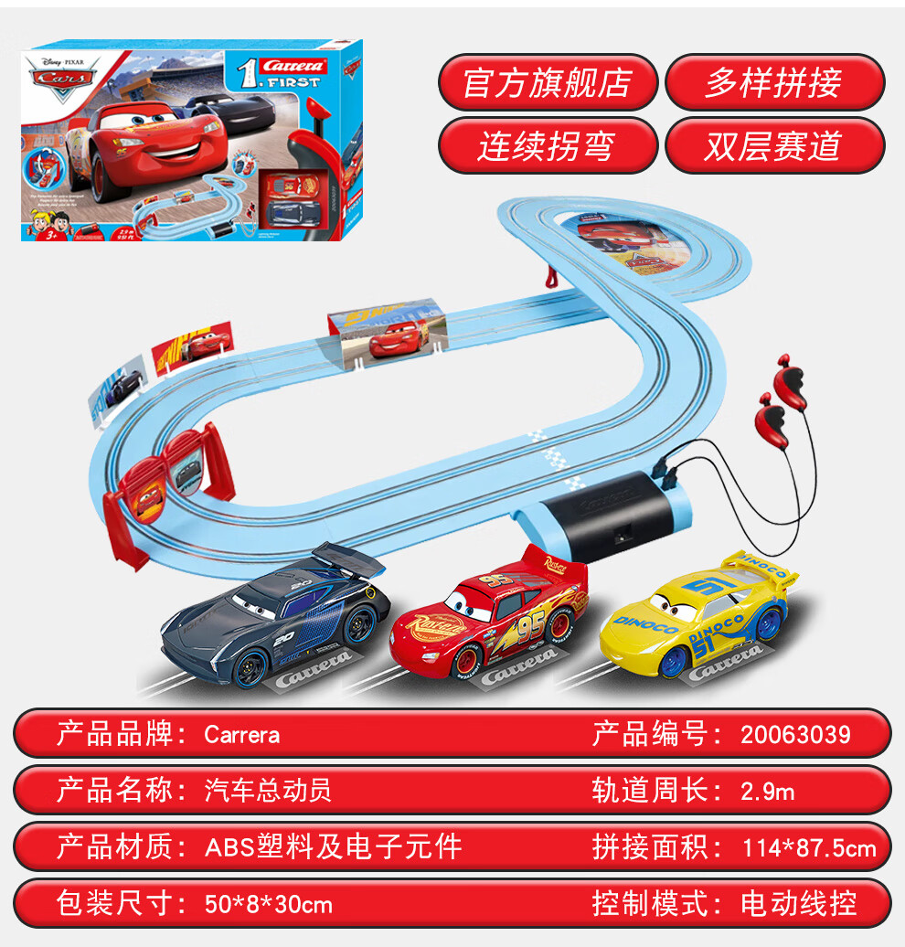 Carrera卡雷拉轨道赛车闪电麦昆汽车总动员礼物玩具男孩双人竞技遥控车
