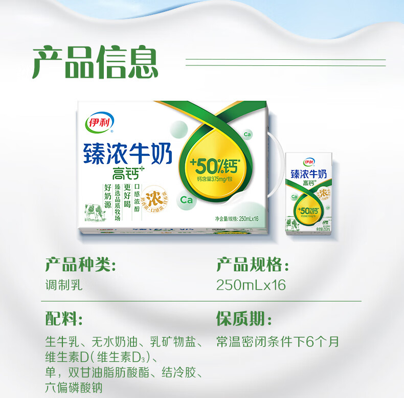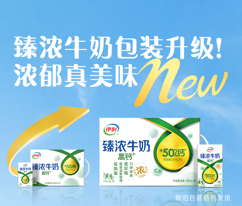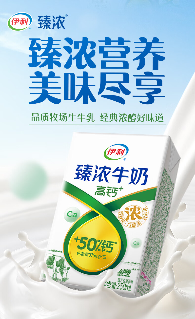 伊利臻浓牛奶高钙16盒早餐搭档 伊利牛奶礼盒营养丰富 1月 250ml*16盒/箱