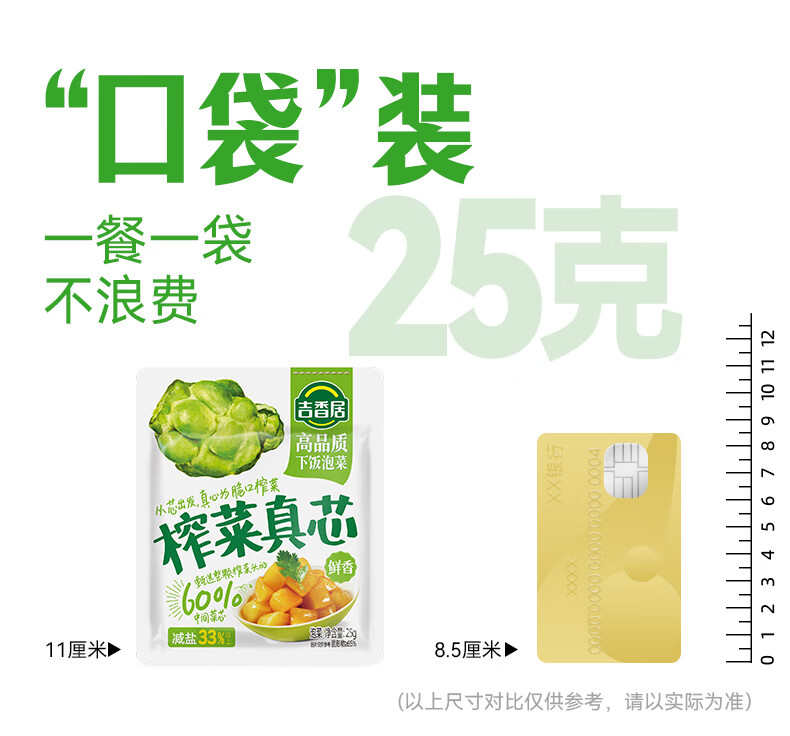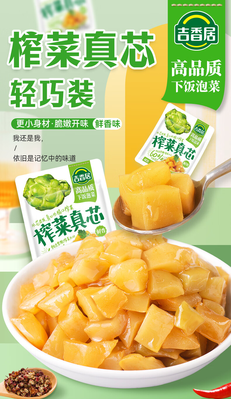 吉香居 榨菜萝卜真芯脆笋减盐榨菜 下饭菜早餐咸菜学生榨菜腌菜清淡爽口 榨菜真芯25g*20袋
