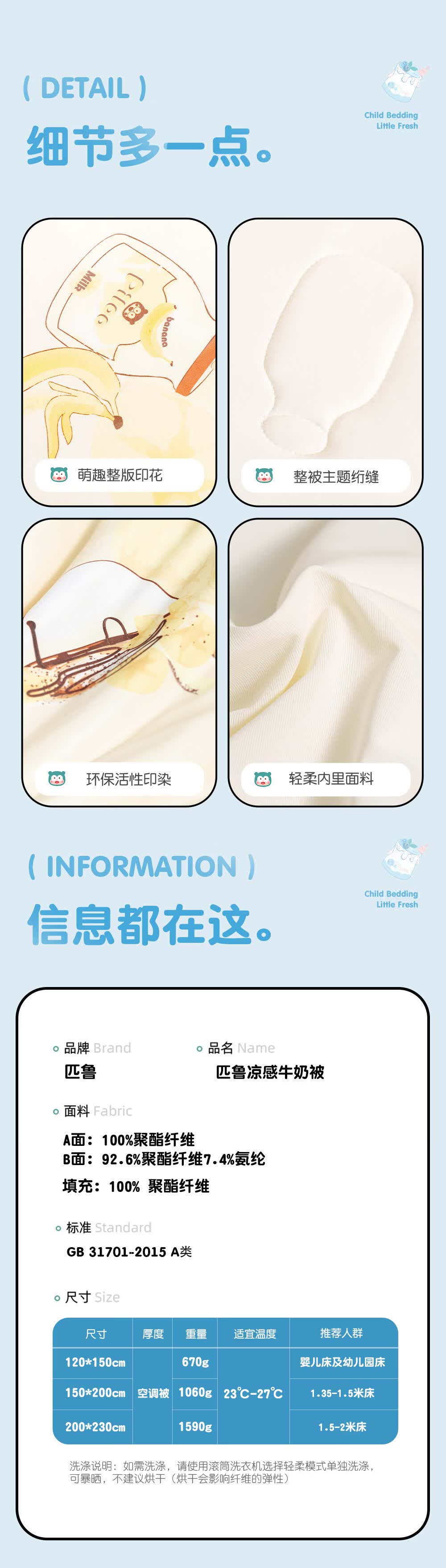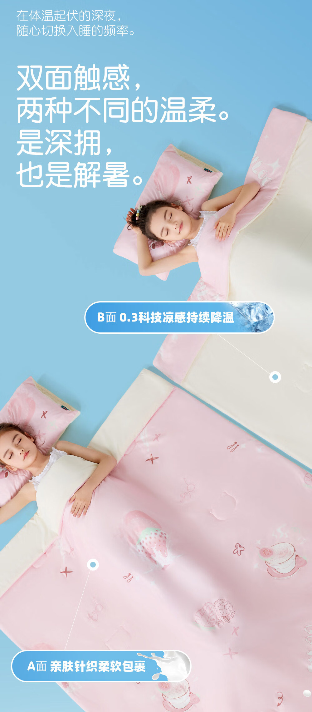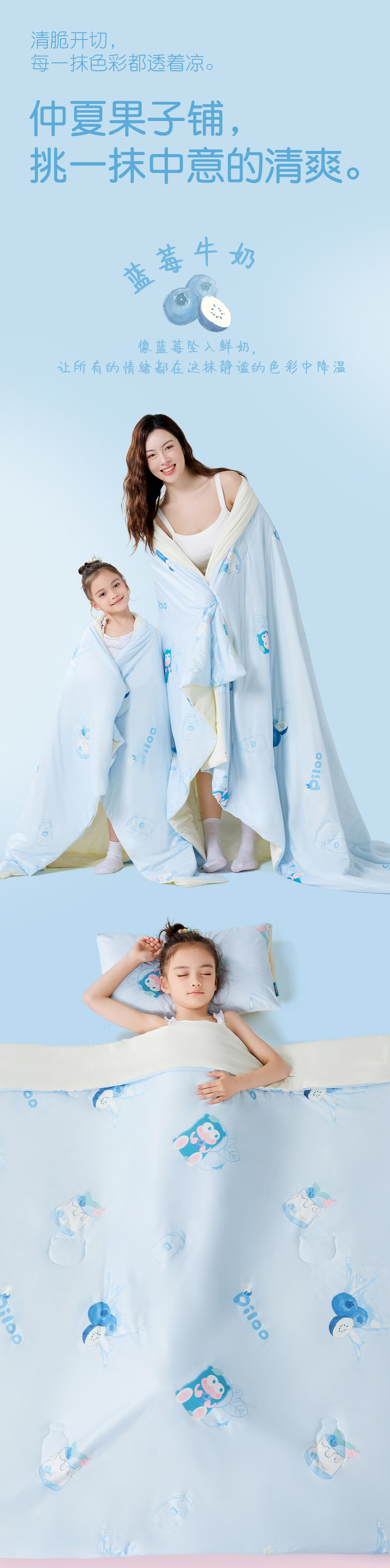 匹鲁儿童被子被芯A类可机洗抗菌夏凉被午睡四季被婴儿幼儿园空调被子 空调被(蓝莓牛奶) 120*150cm(单夏被)