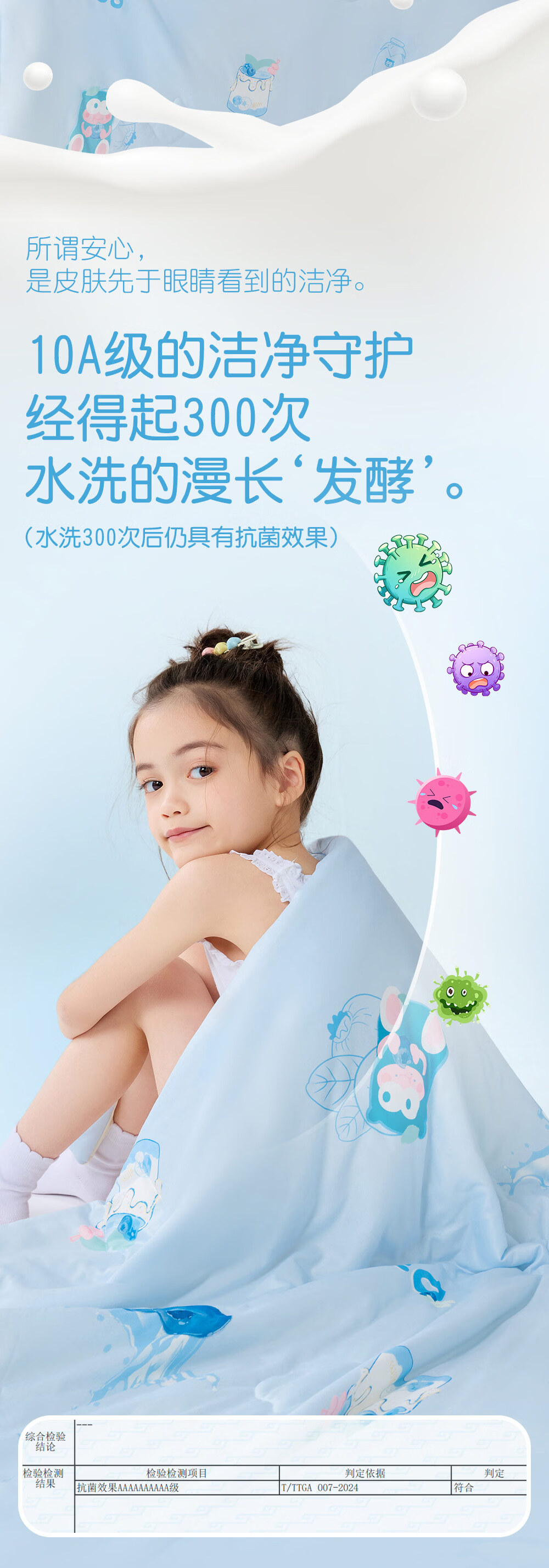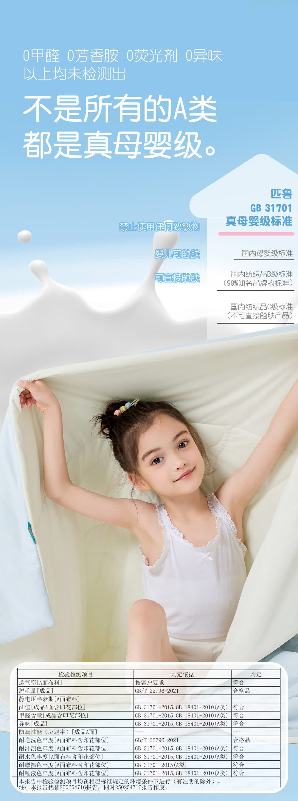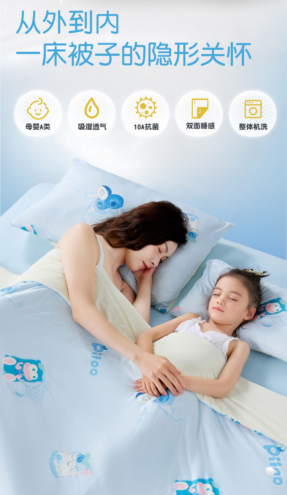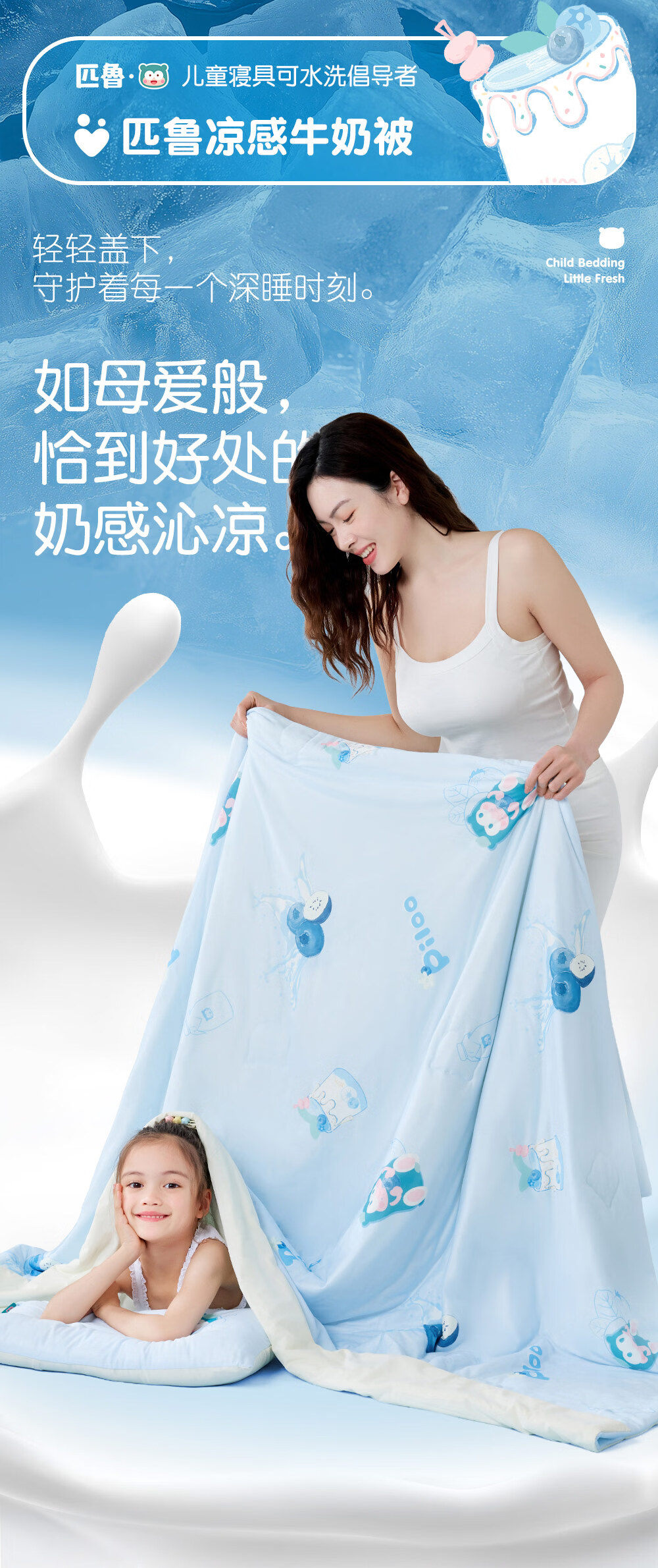 匹鲁儿童被子被芯A类可机洗抗菌夏凉被午睡四季被婴儿幼儿园空调被子 空调被(蓝莓牛奶) 120*150cm(单夏被)