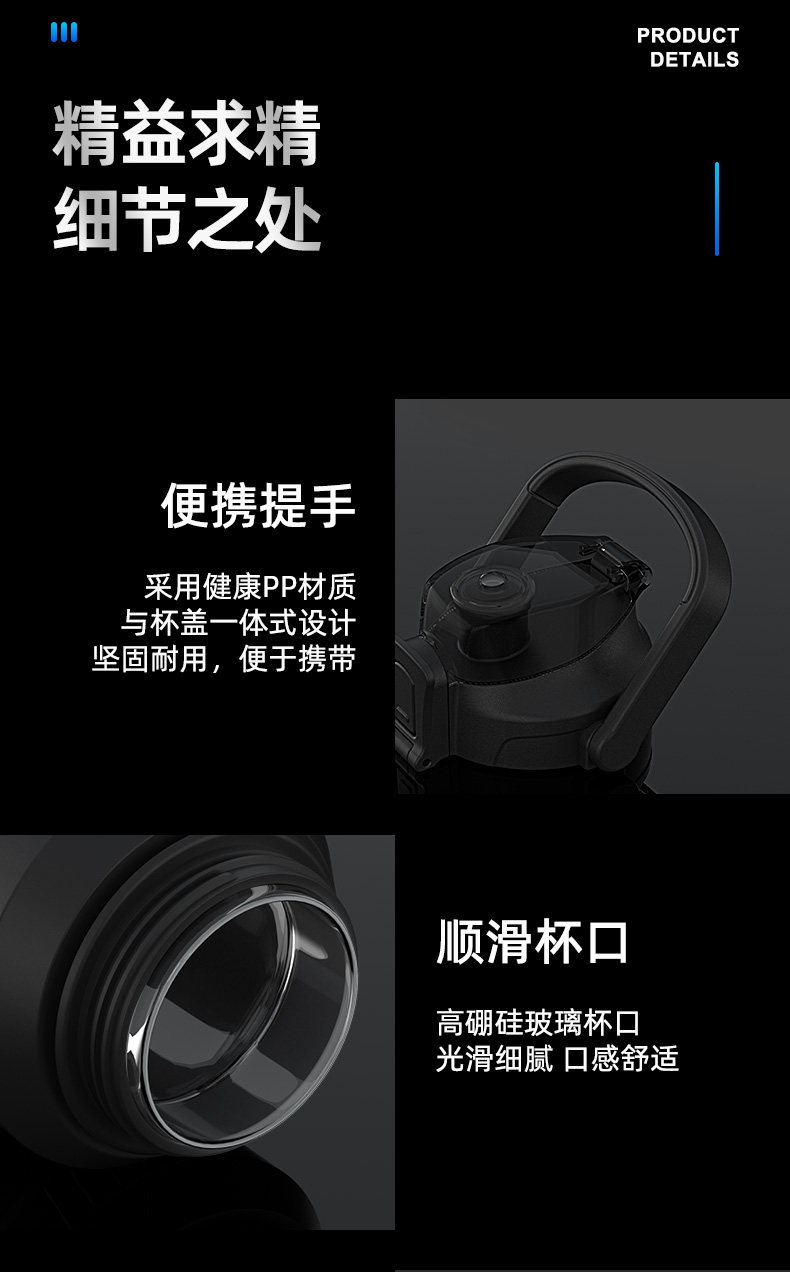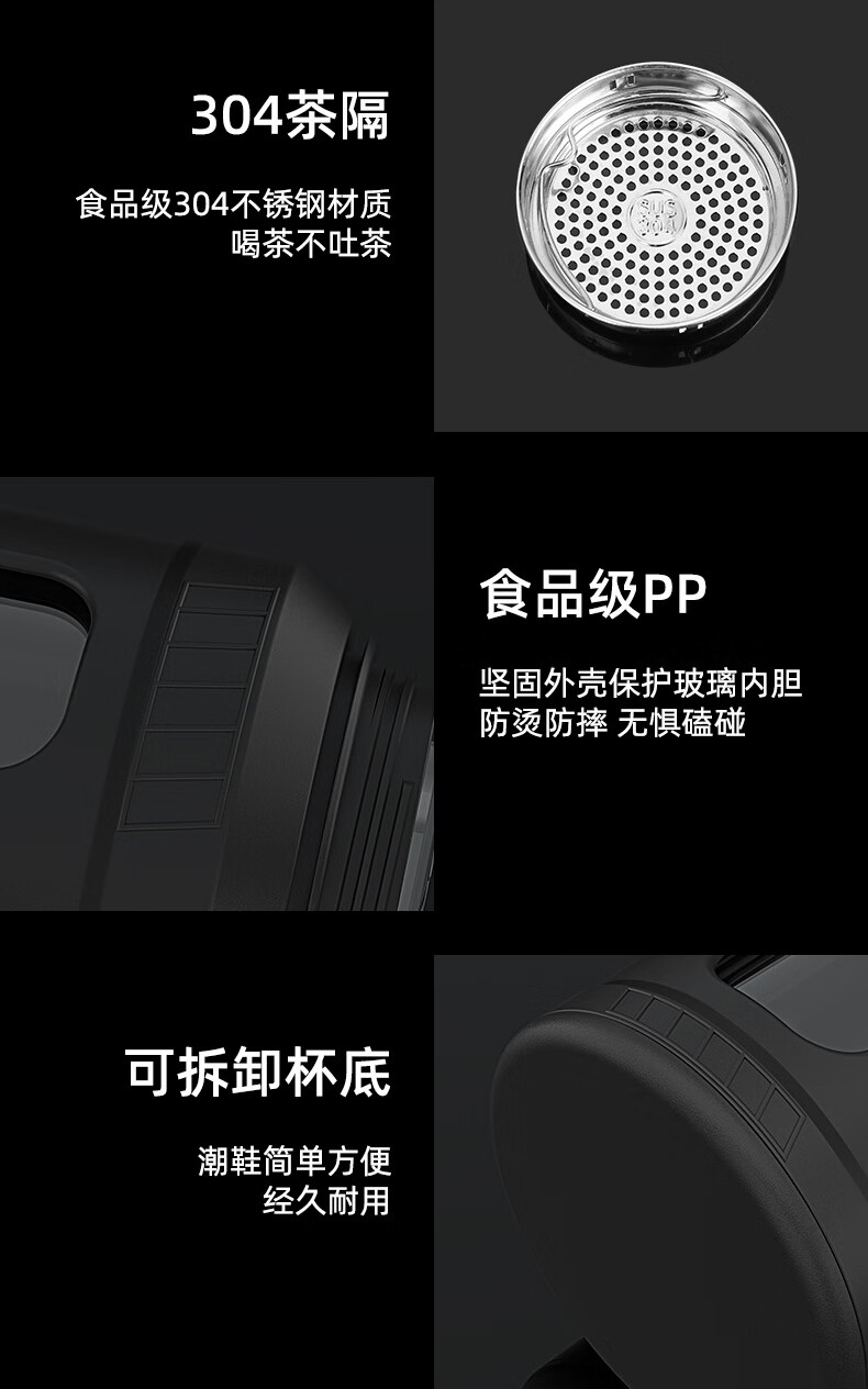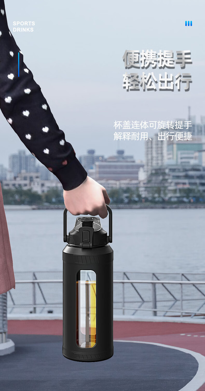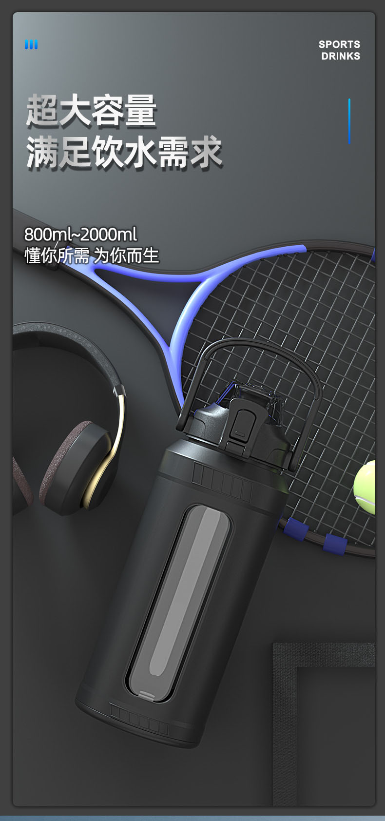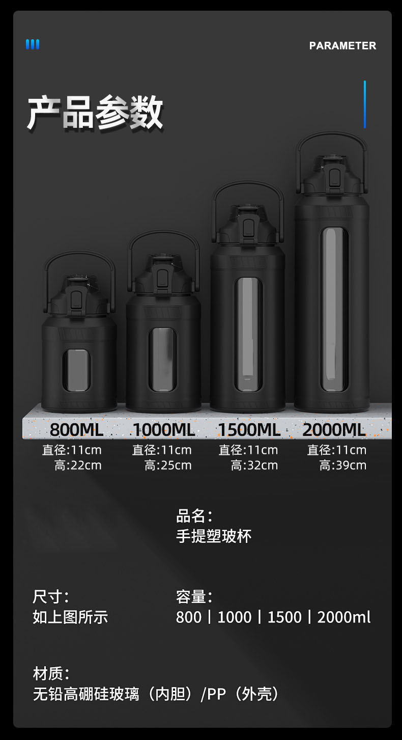 GROOT大容量玻璃杯耐高温防摔防爆运动吸管水杯子便携泡茶杯超大号水壶 【加厚防摔+茶隔】2000ml