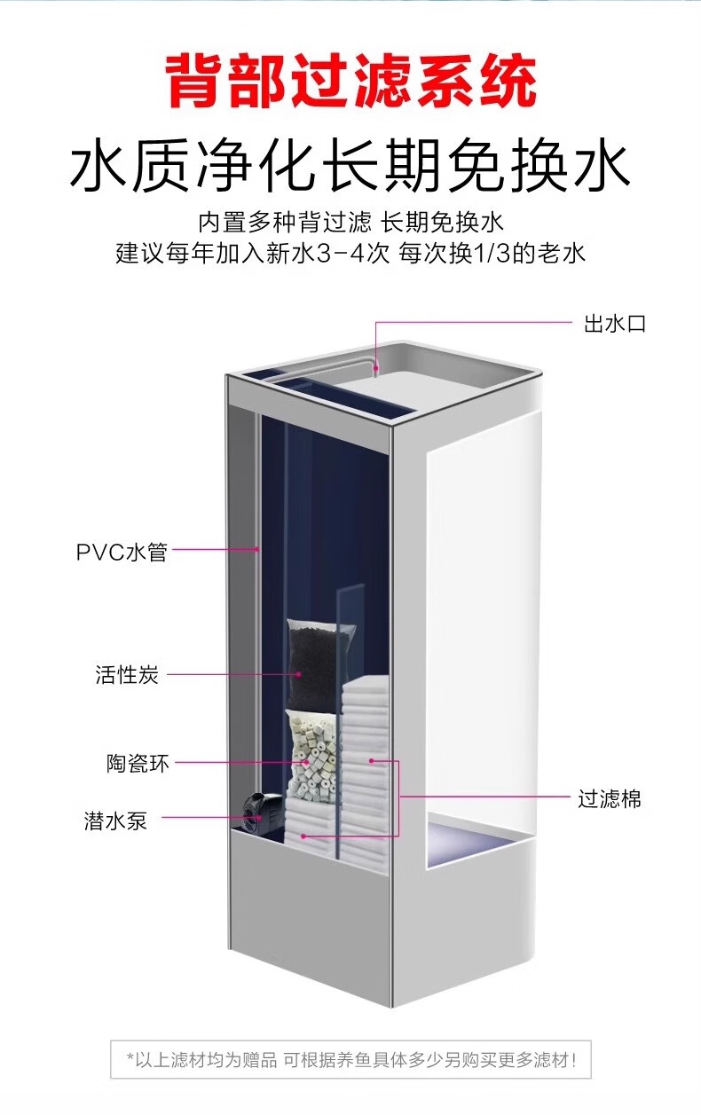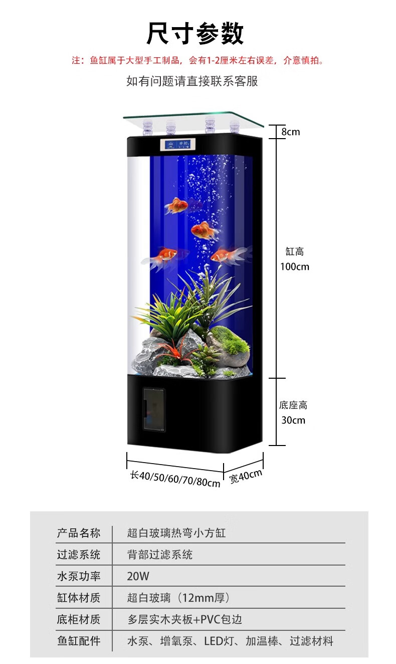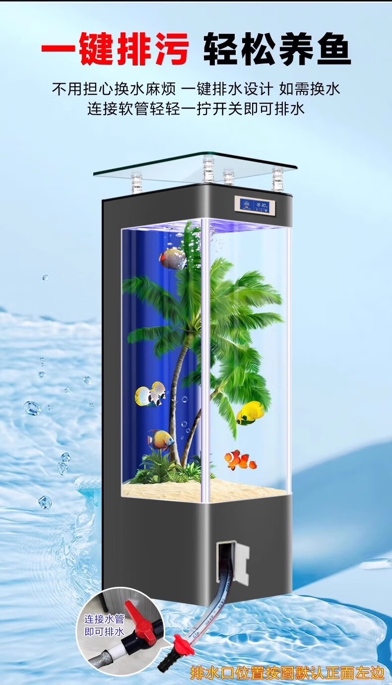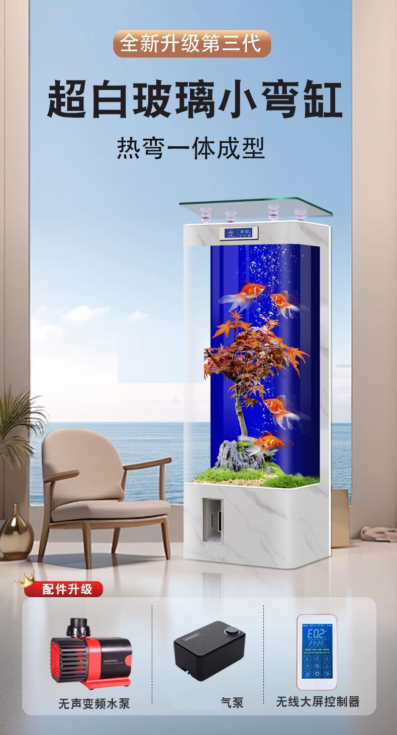 宝贝故事(BABY STORY)智能鱼缸客厅 鱼缸一体缸自循环免换水生态缸背过滤超白玻璃鱼缸 白色ultra版(变频水泵+气泵+移动显示屏) 60x40x138cm 长*宽*高