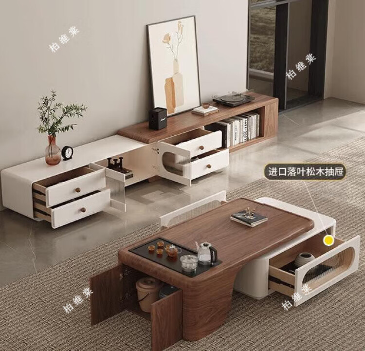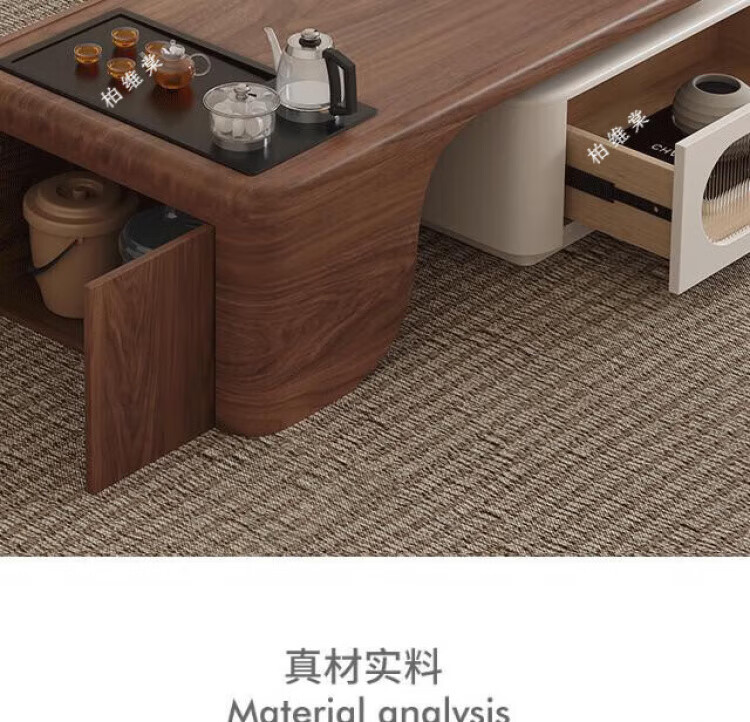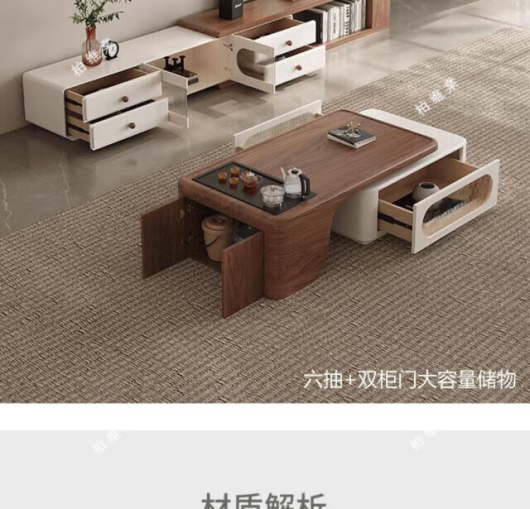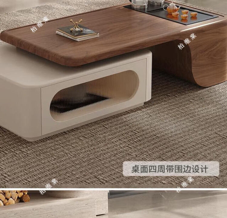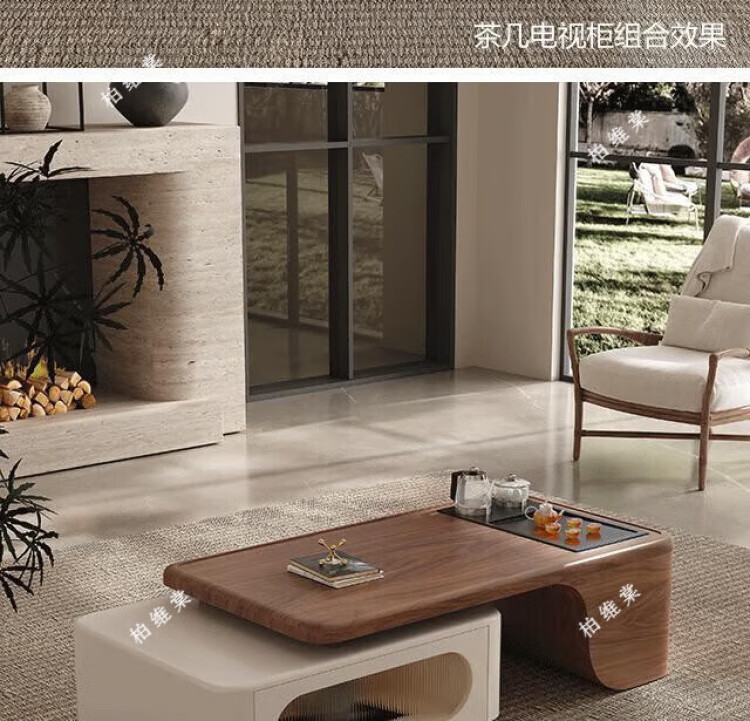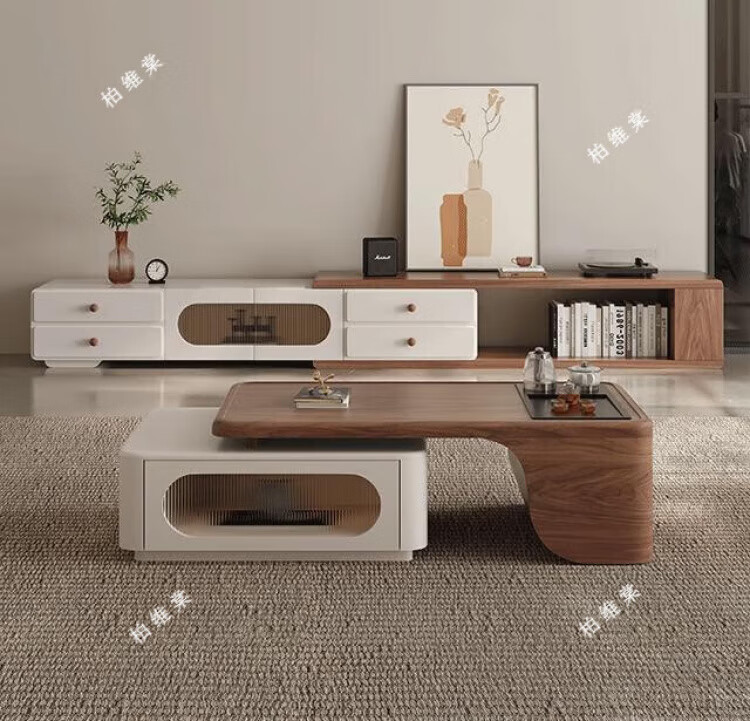 柏维棠茶几客厅轻奢高级感2026新款高端胡桃木色创意现代简约功夫茶台 功夫茶几_+伸缩电视柜组合