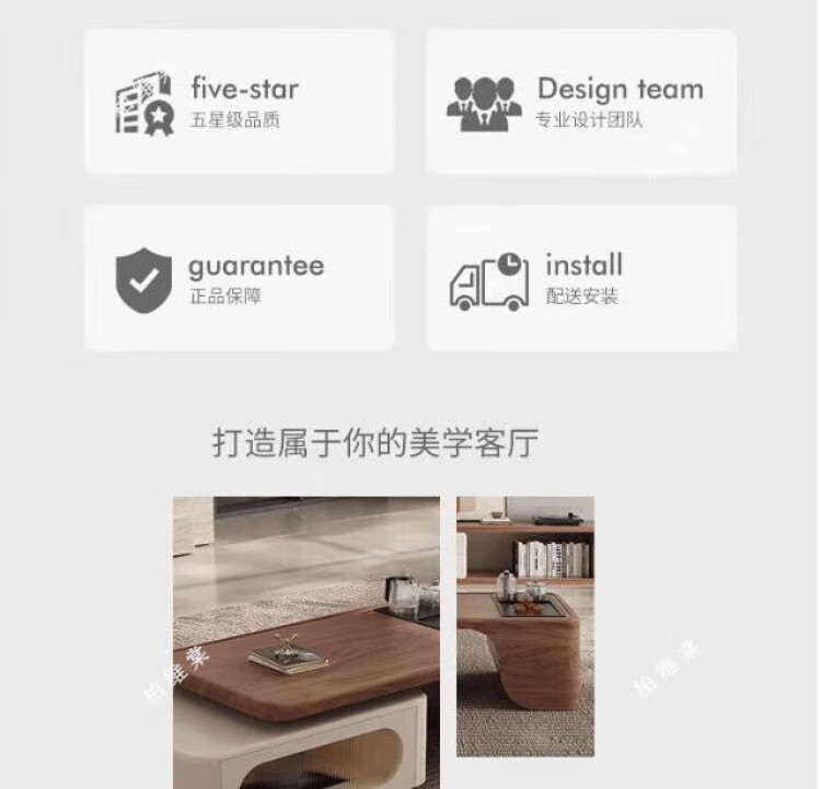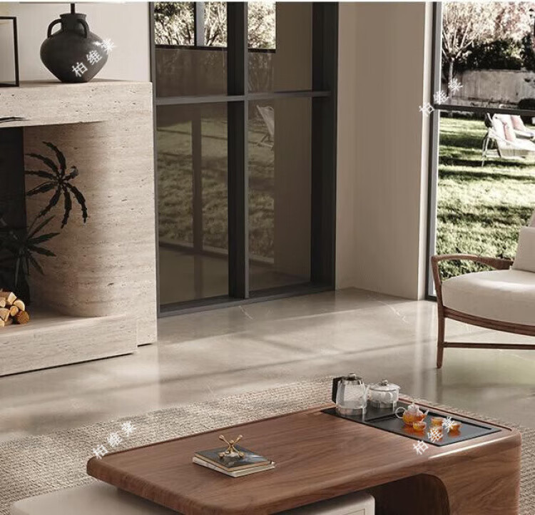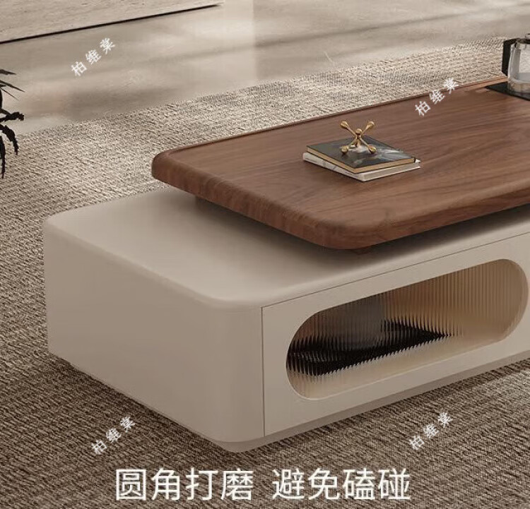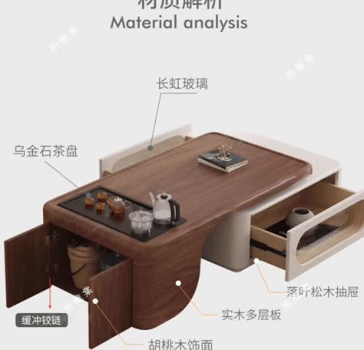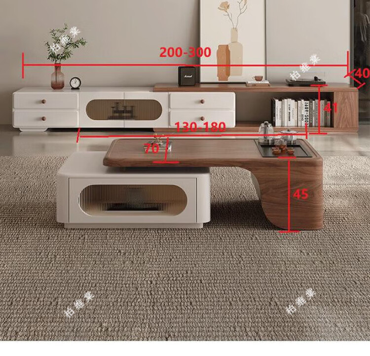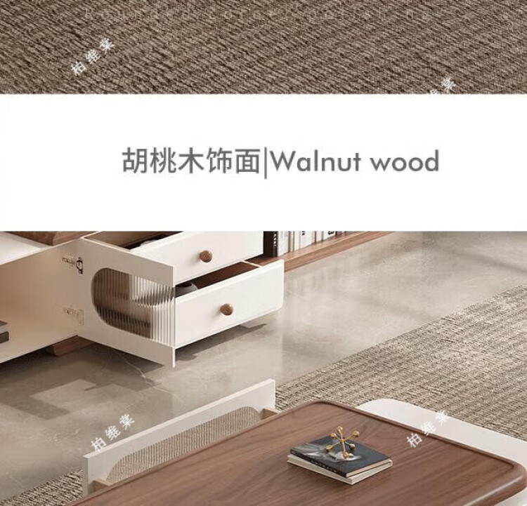 柏维棠茶几客厅轻奢高级感2026新款高端胡桃木色创意现代简约功夫茶台 功夫茶几_+伸缩电视柜组合