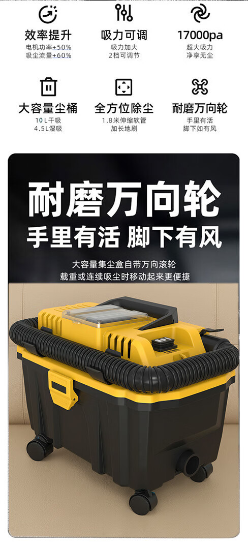MOTOFEEL无线吸尘器便携式家用车载美缝工业商用大吸力功率干湿两用吸尘机 工业级无刷吸尘器(2电池)