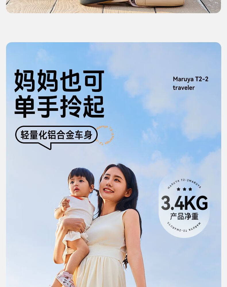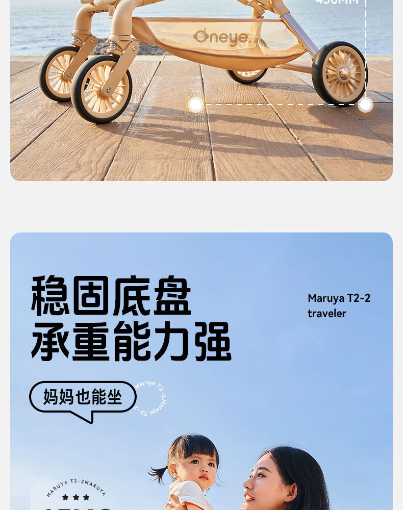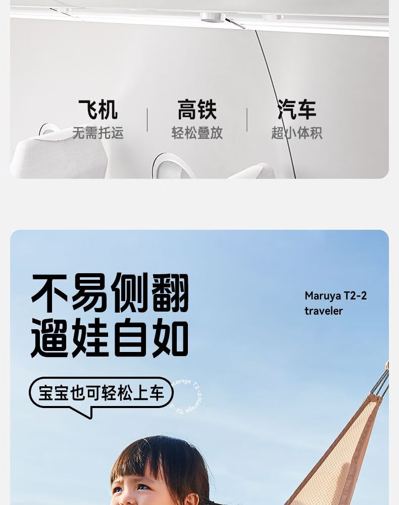丸丫t2-2口袋车1-6岁遛娃神器轻便折叠旅行推车可登机上火车儿童伞车 T2-2冰川蓝【送顶棚】