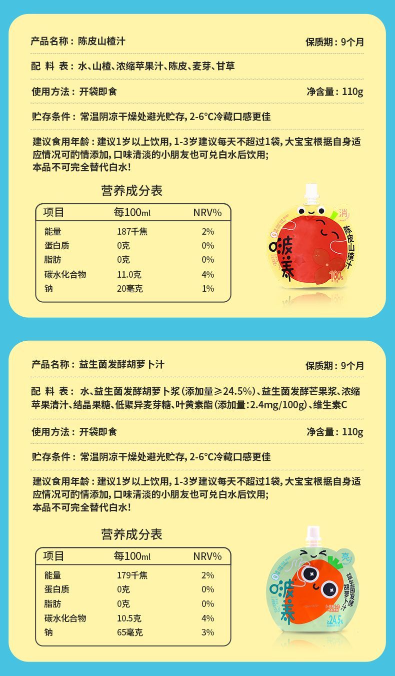 美意颂啵养【宝宝放心喝】解腻清润果蔬汁酸甜新鲜开胃早餐搭配健康营养 陈皮山楂汁*10袋