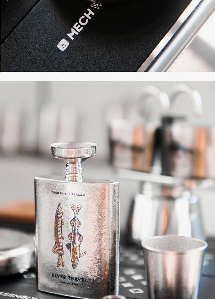 便携户外露营酒壶超轻随身纯钛小酒壶三两四两高端白酒洋酒小酒瓶 圆形酒壶+纯钛酒漏+挂绳
