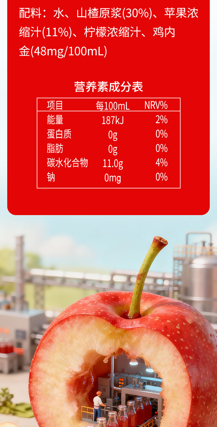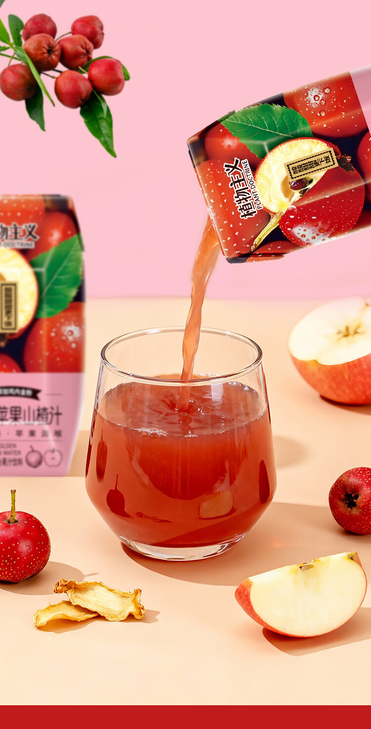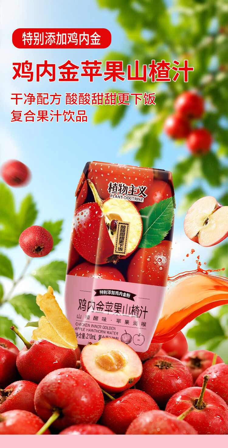 植物主义鸡内金山楂汁210ml*12瓶装100%果汁儿童开胃苹果山楂复合果汁饮料 鸡内金苹果山楂汁12瓶整箱(100%果汁)
